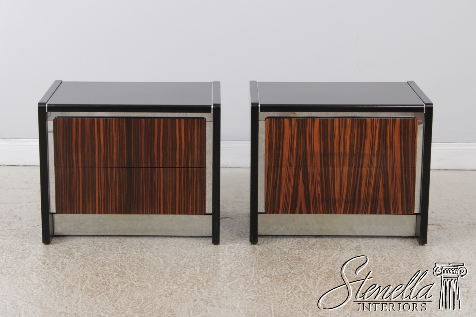 F72545: Pair JOHN STUART Mid Century Modern Ebony & Chrome Nightstands