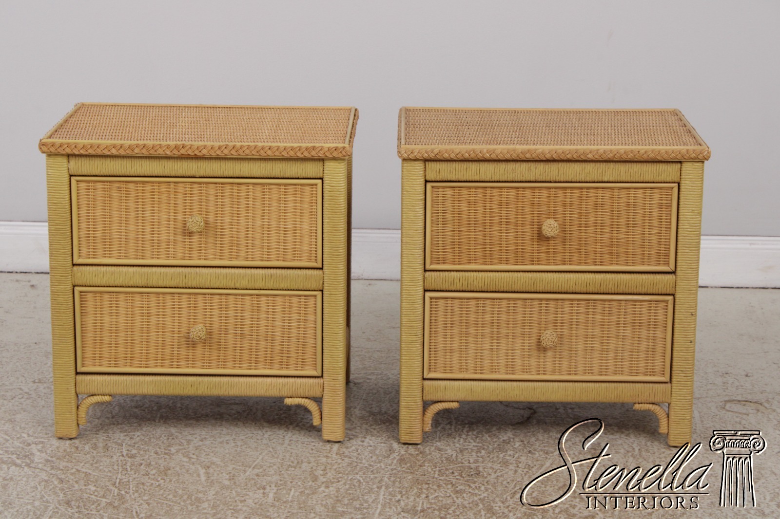 72728: Pair LEXINGTON Henry Link Wicker Nightstands
