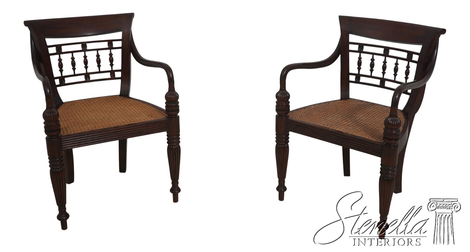 • 71552: Pair Of Caribbean Mahogany Armchairs With Cane Seats