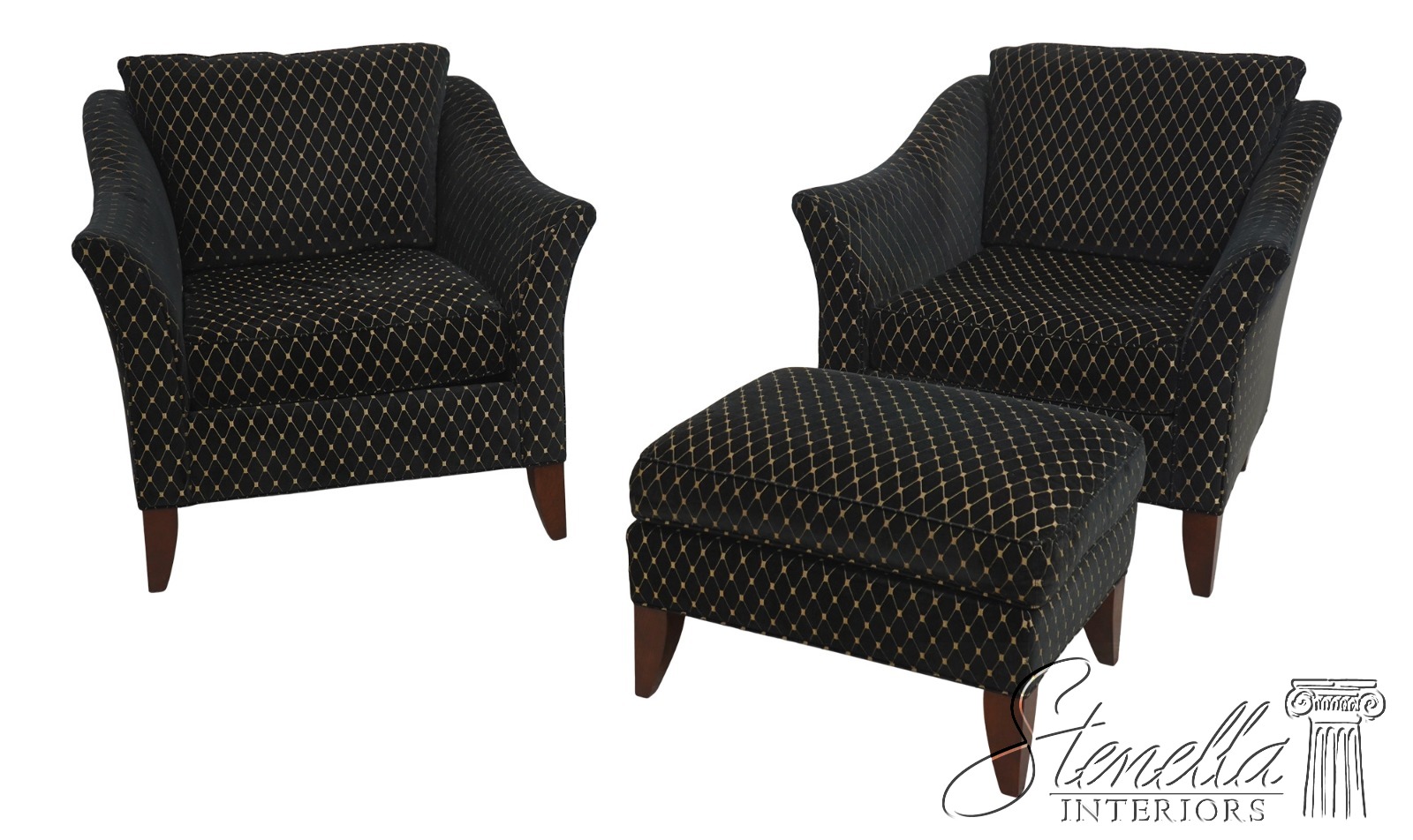 67944: Pair Of STICKLEY Upholstered Large Chairs & Ottoman