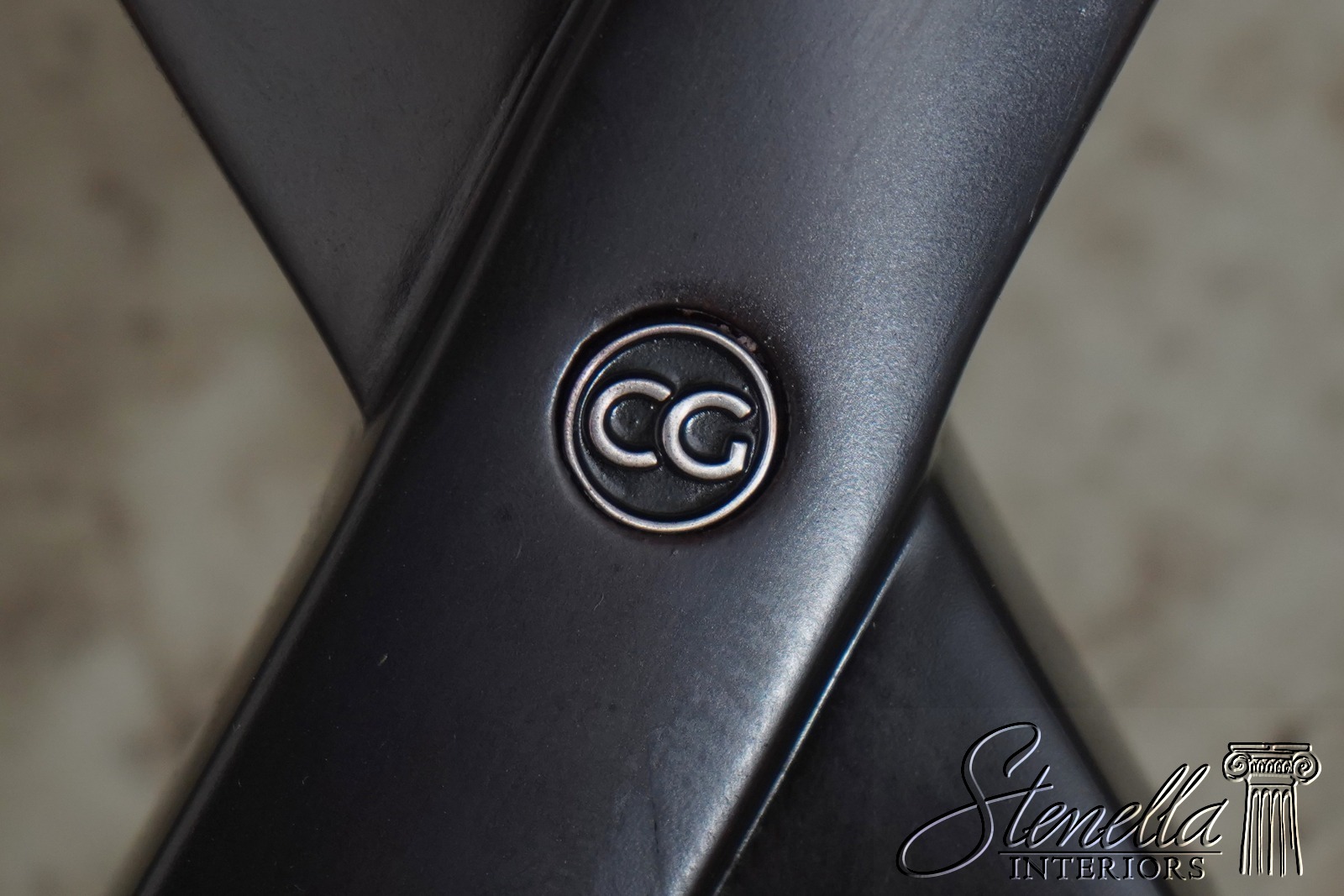Details: Brass Capped Feet High Quality Construction Ebonized Frame Stunning Modern Designer Chair Sweeping Low Backrest Criss Cross Legs Offered @ Fraction Original Retail Cost