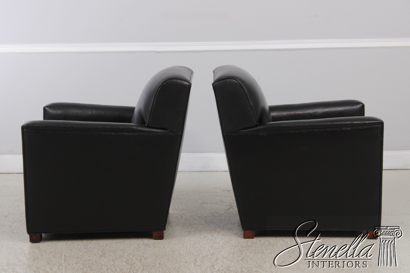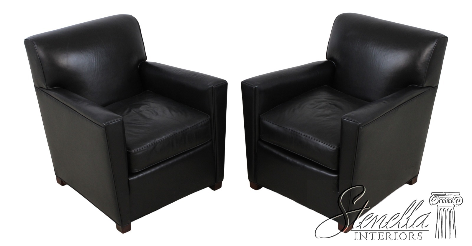 72238: Pair Of STICKLEY Black Leather Club Chairs