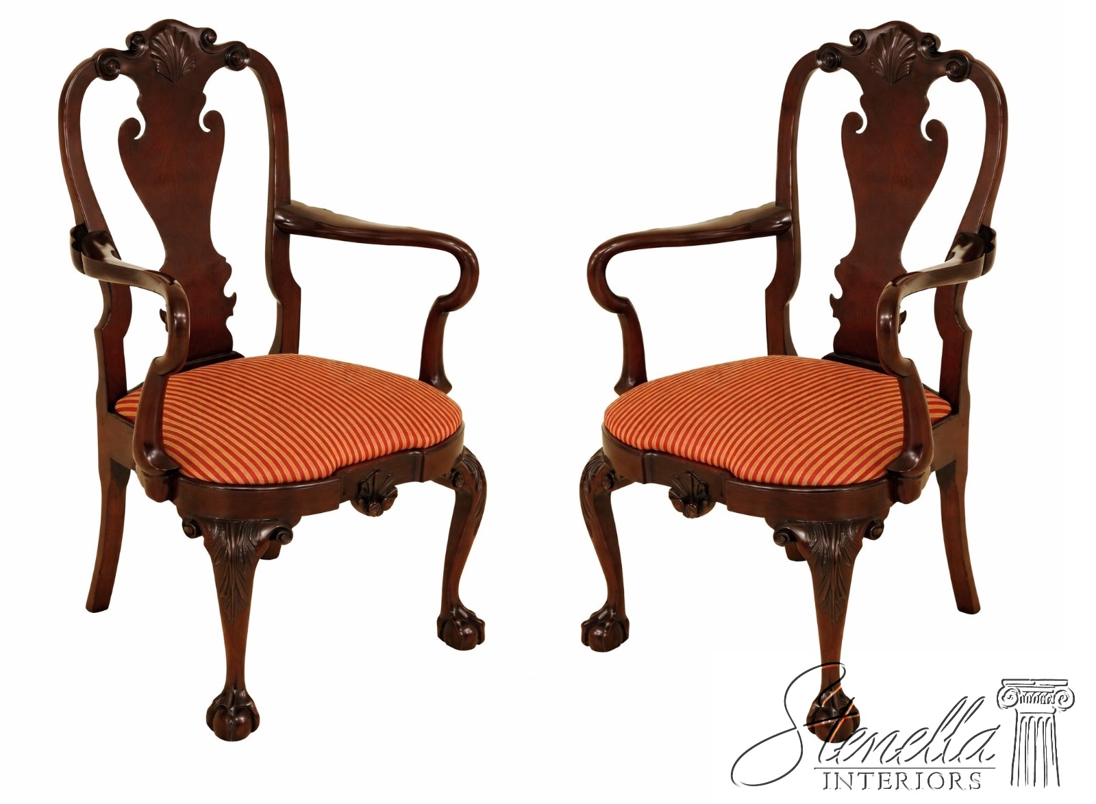 L59880: Pair KINDEL Winterthur Collection Mahogany Dining Room Arm Chairs