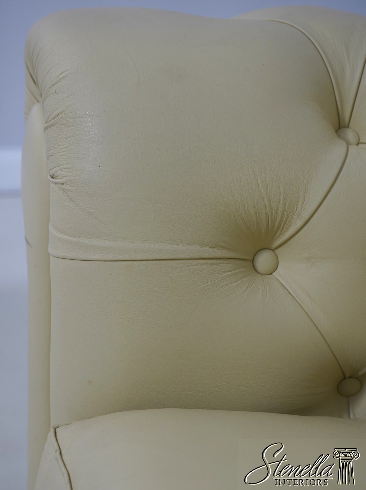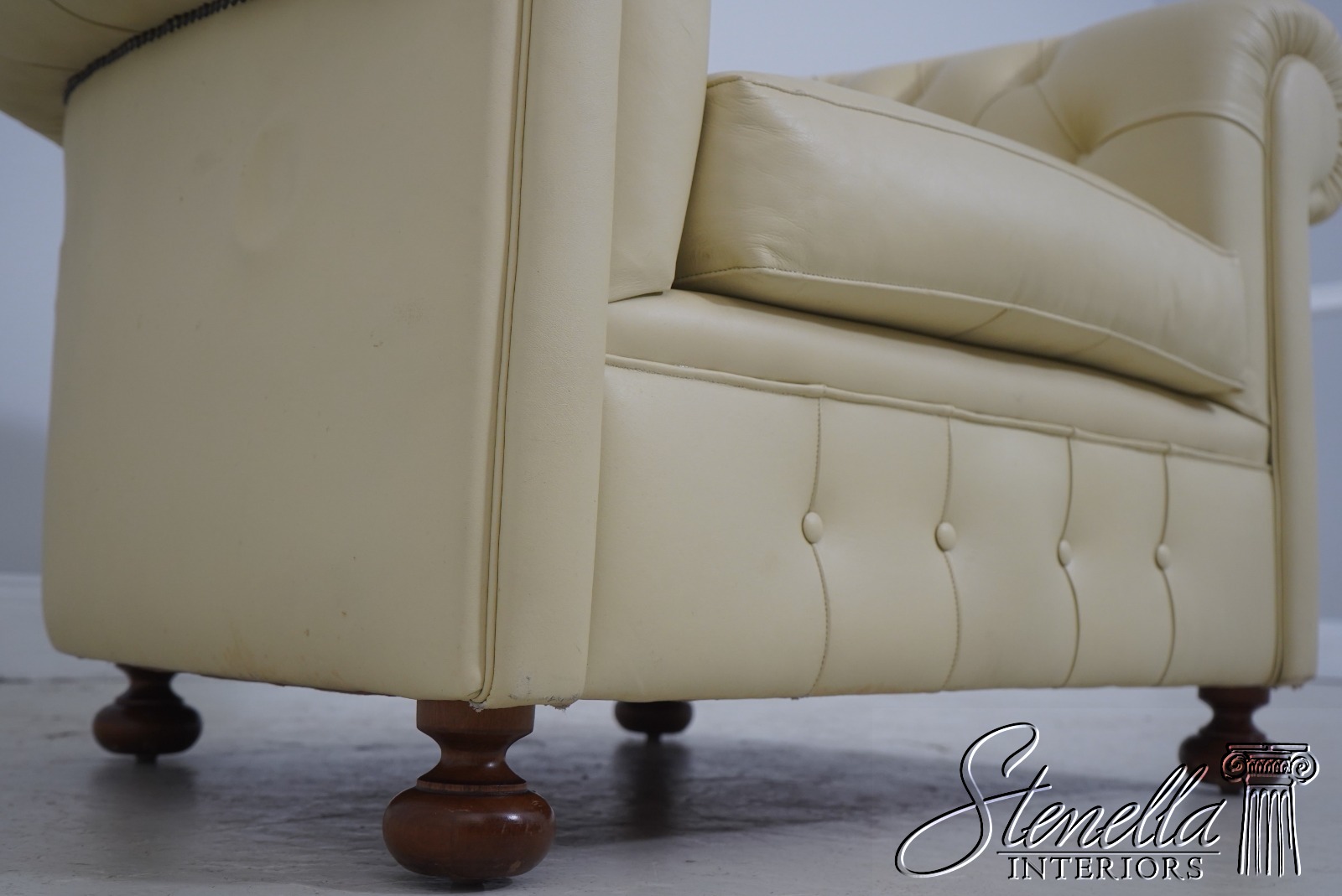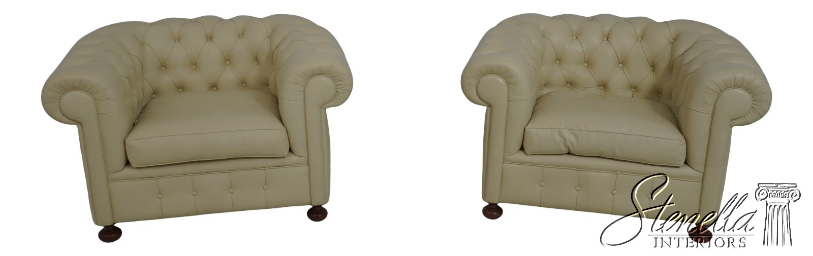 L71181: Pair Creme Color Leather Chesterfield Chairs