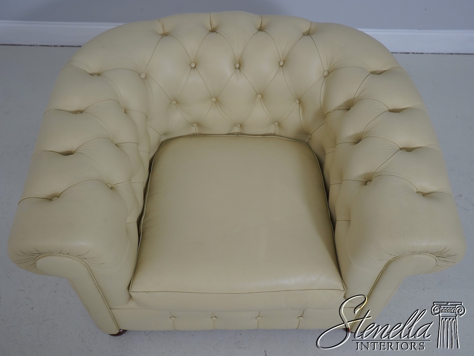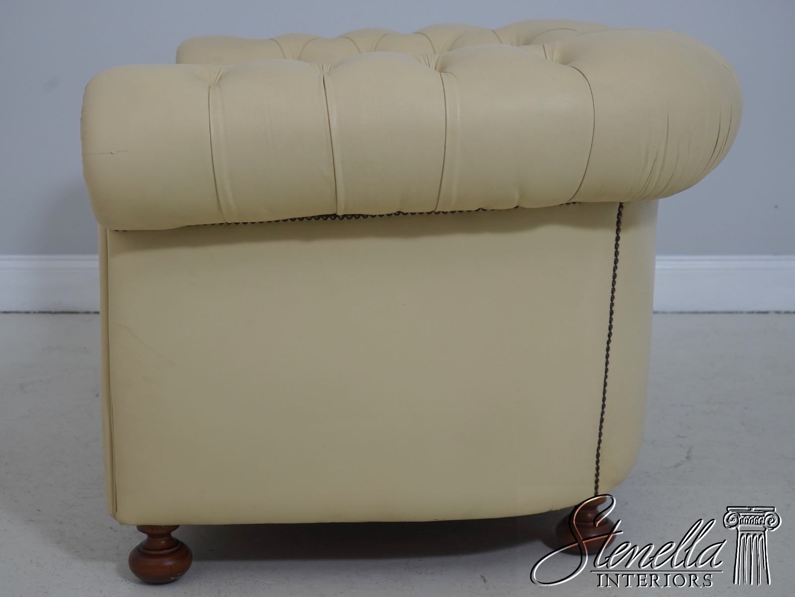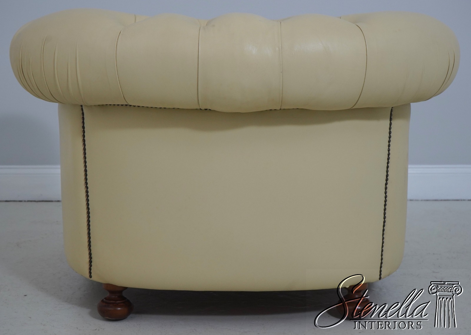 L71181: Pair Creme Color Leather Chesterfield Chairs