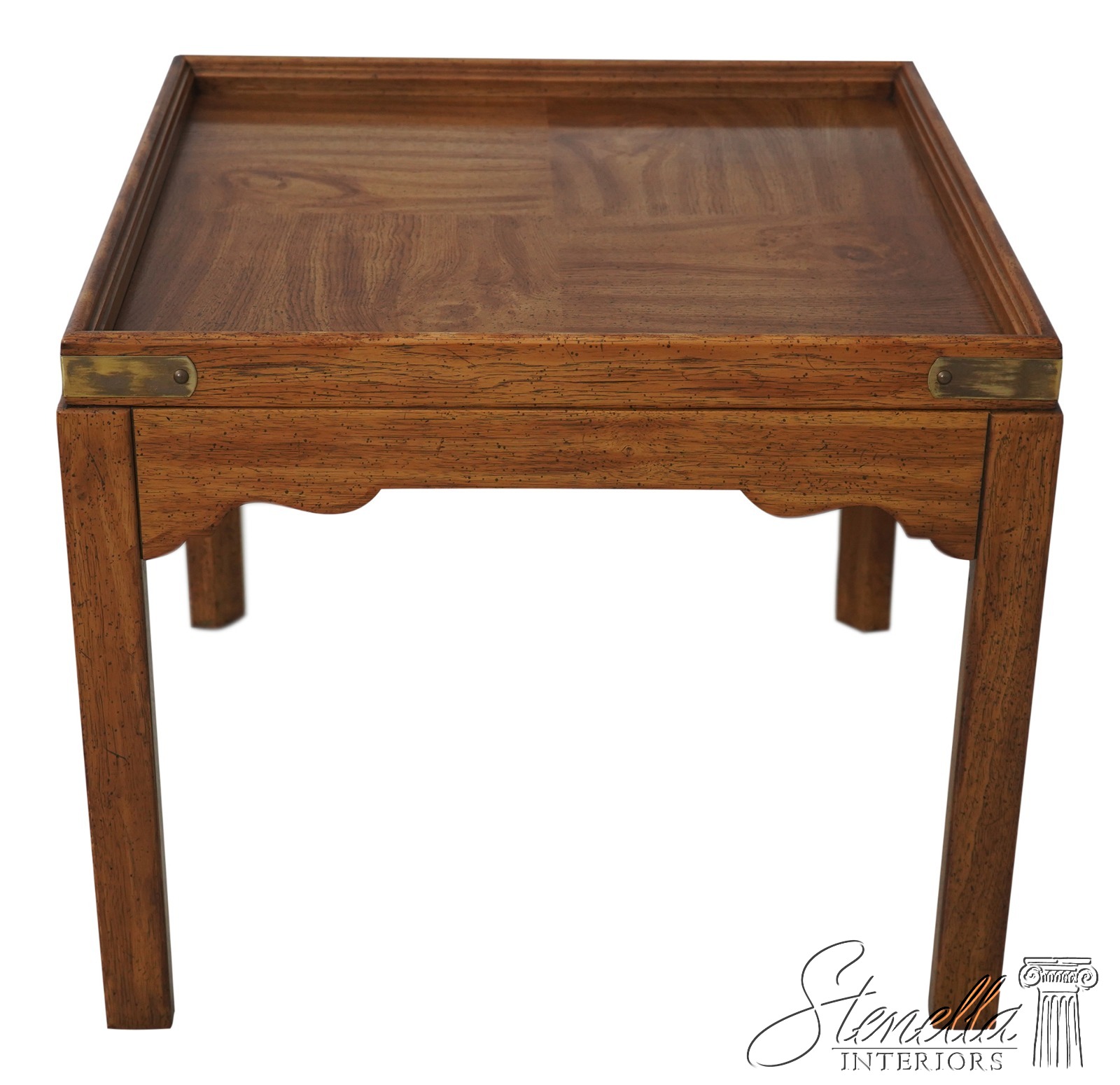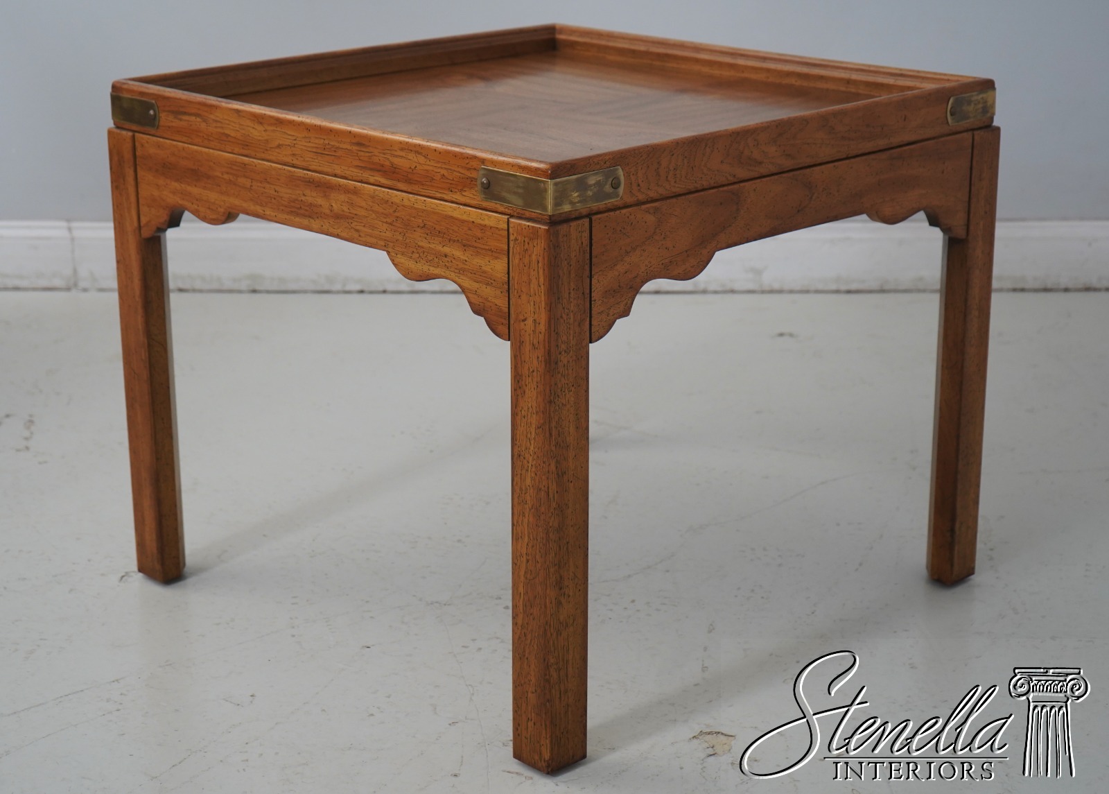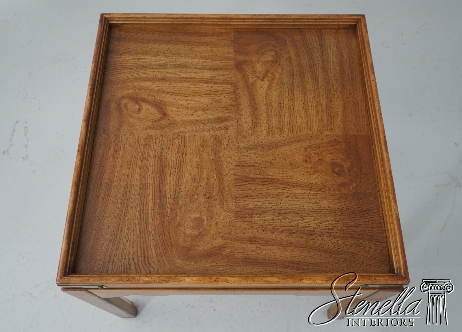 68801: DREXEL Oak Rustic Square Brass Band Lamp Table