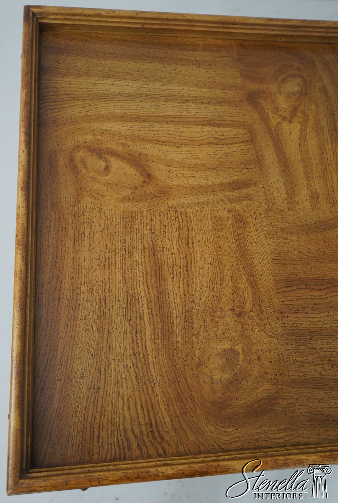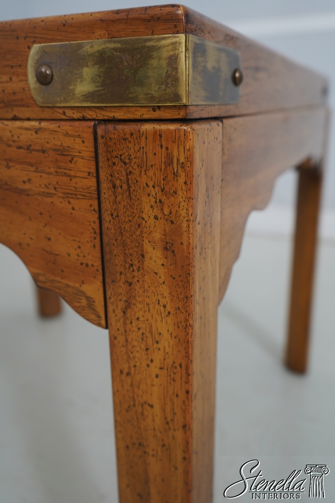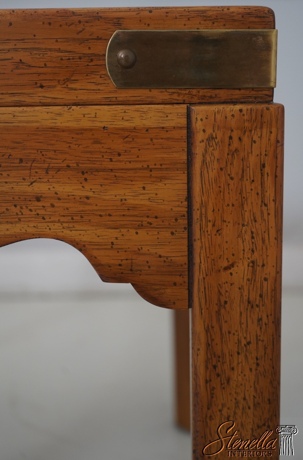 68801: DREXEL Oak Rustic Square Brass Band Lamp Table