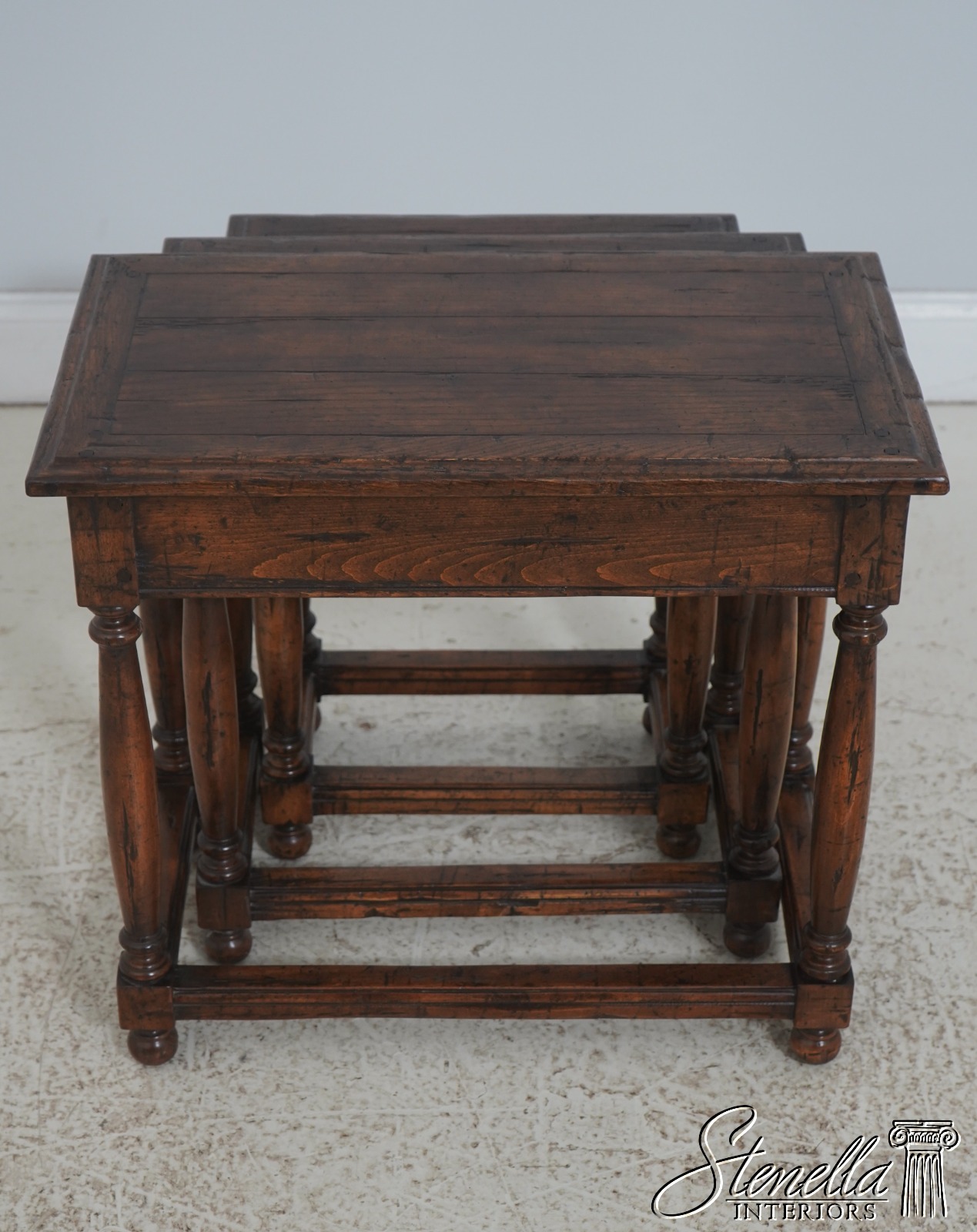72043: GUY CHADDOCK Jacobean Distressed Oak Nesting Tables