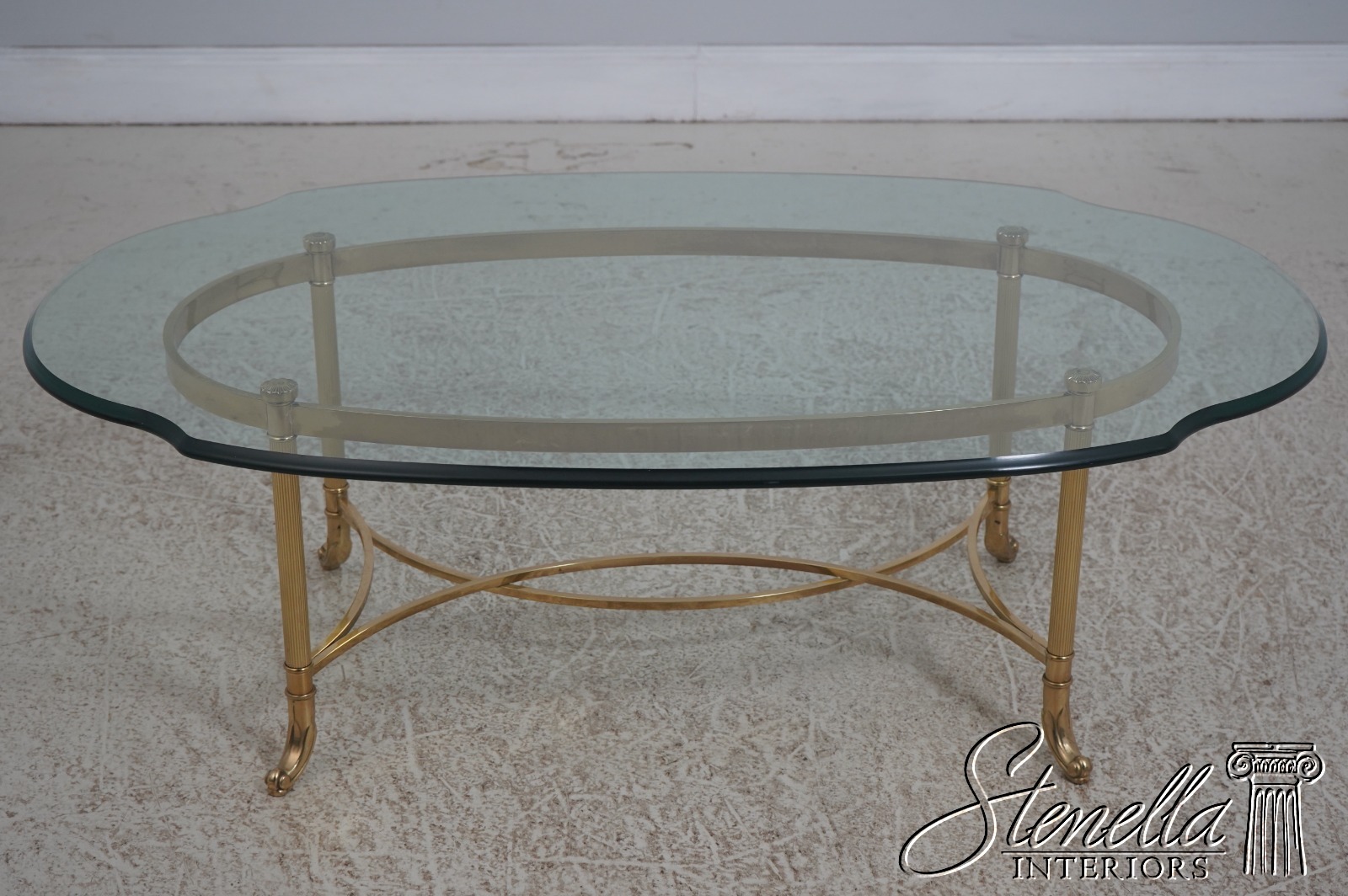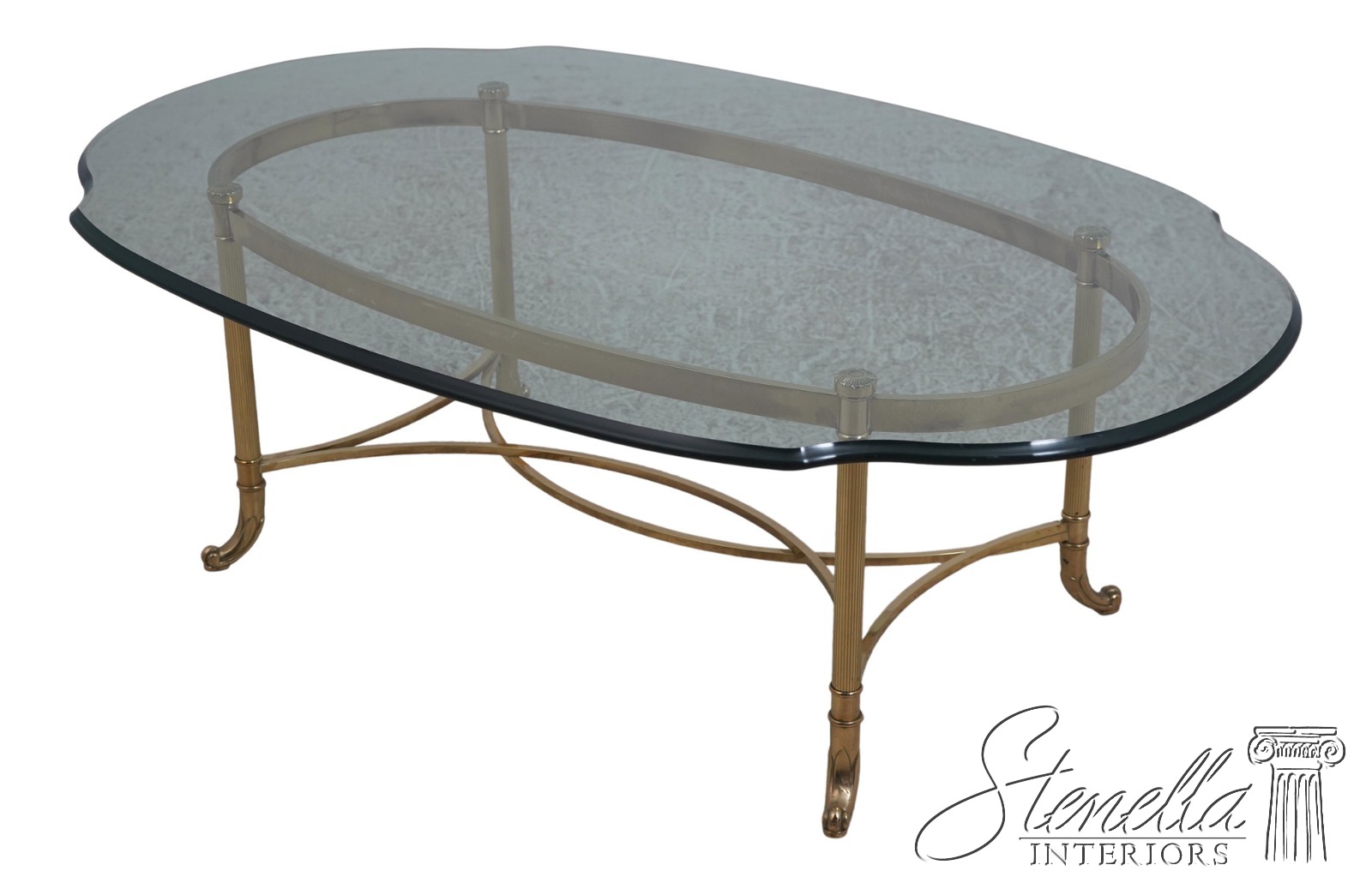 Details: Beveled Glass High Quality Construction Scalloped Glass Removable Glass Oval Brass Base Un-Marked As To Manufacture Offered @ Fraction Original Retail Cost