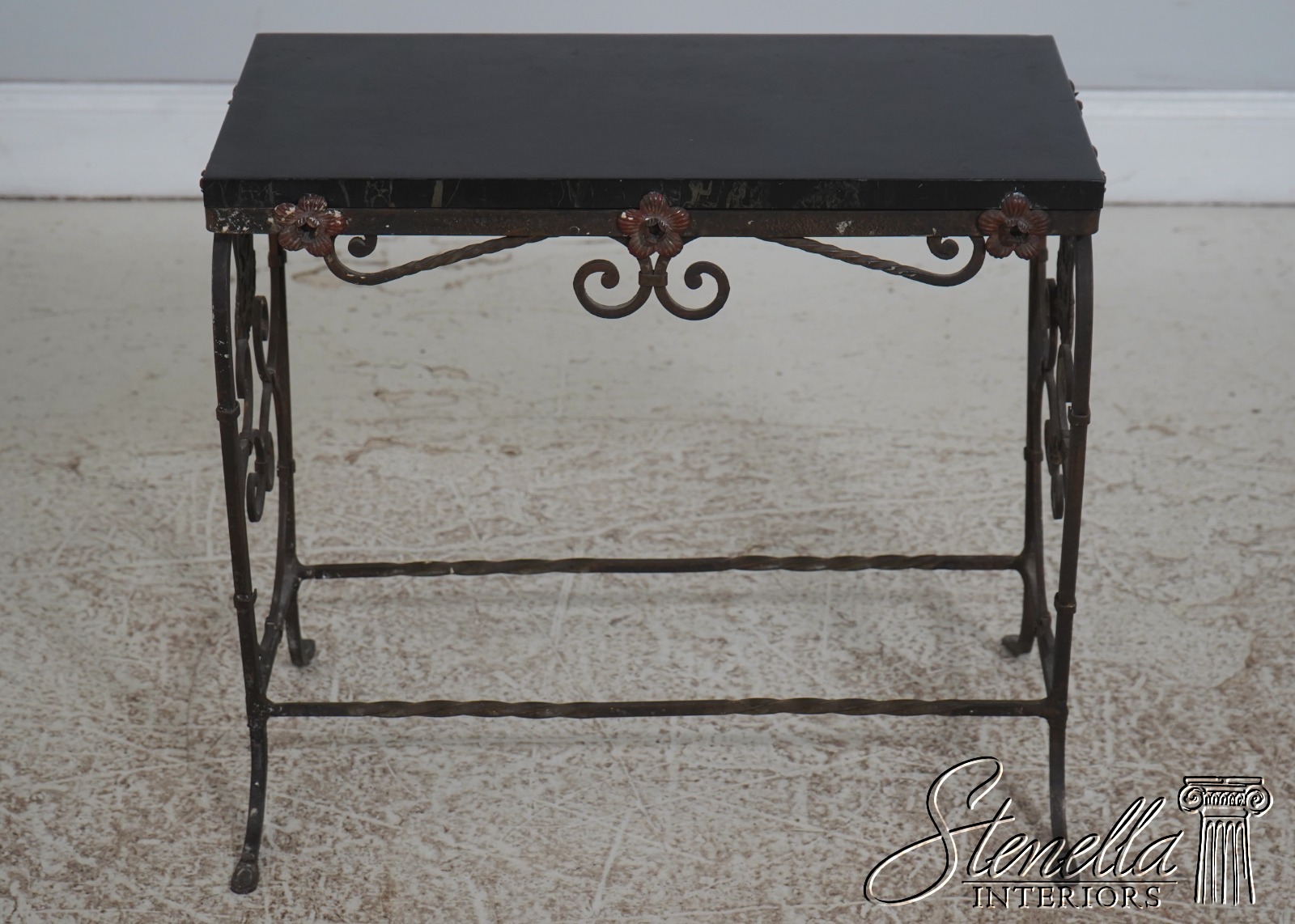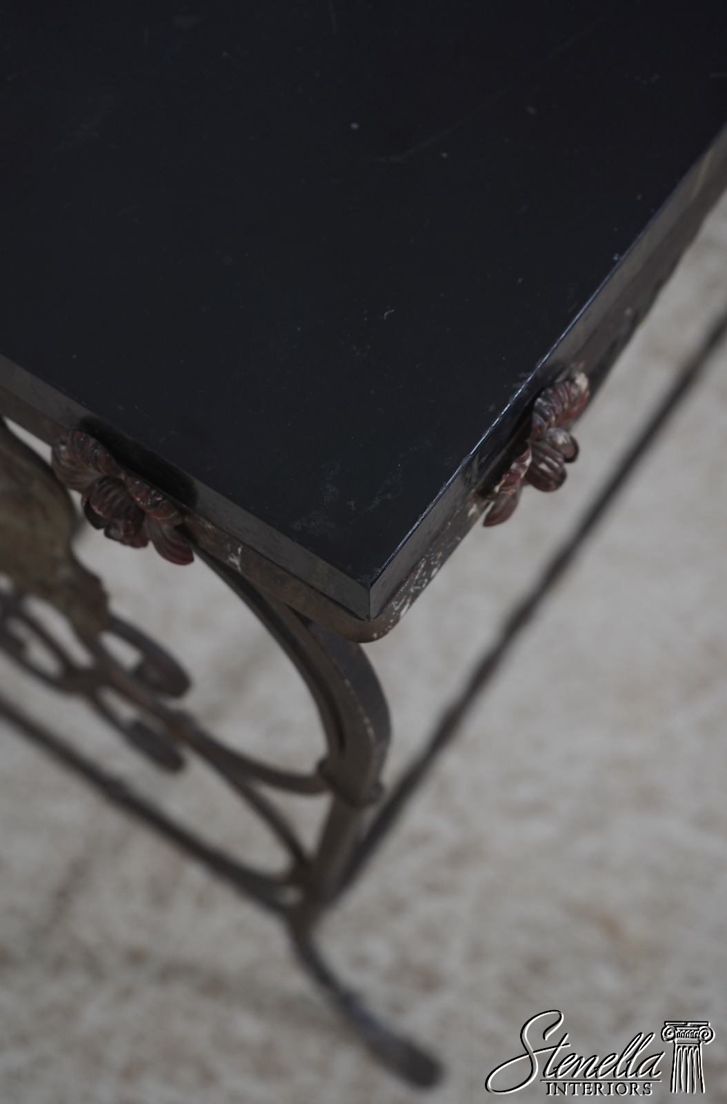 72387: Vintage Wrought Iron Base Marble Top Side Table