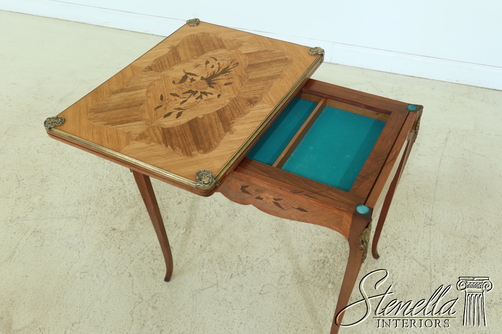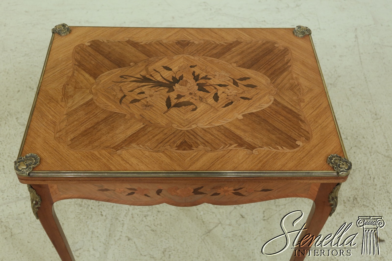 F32535: French Louis XV Style Highly Inlaid Flip Top Games Table