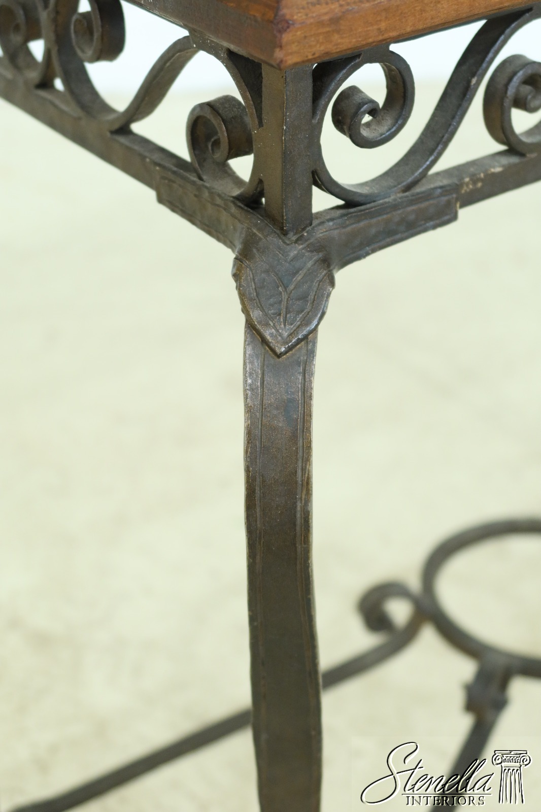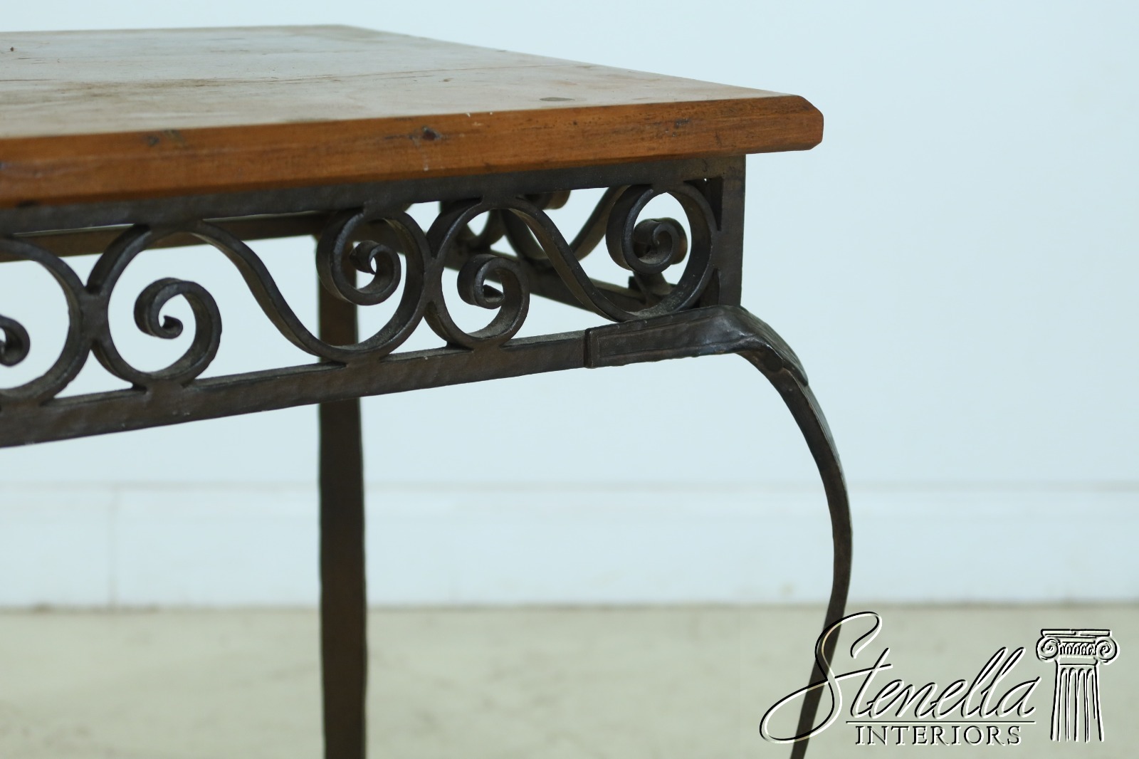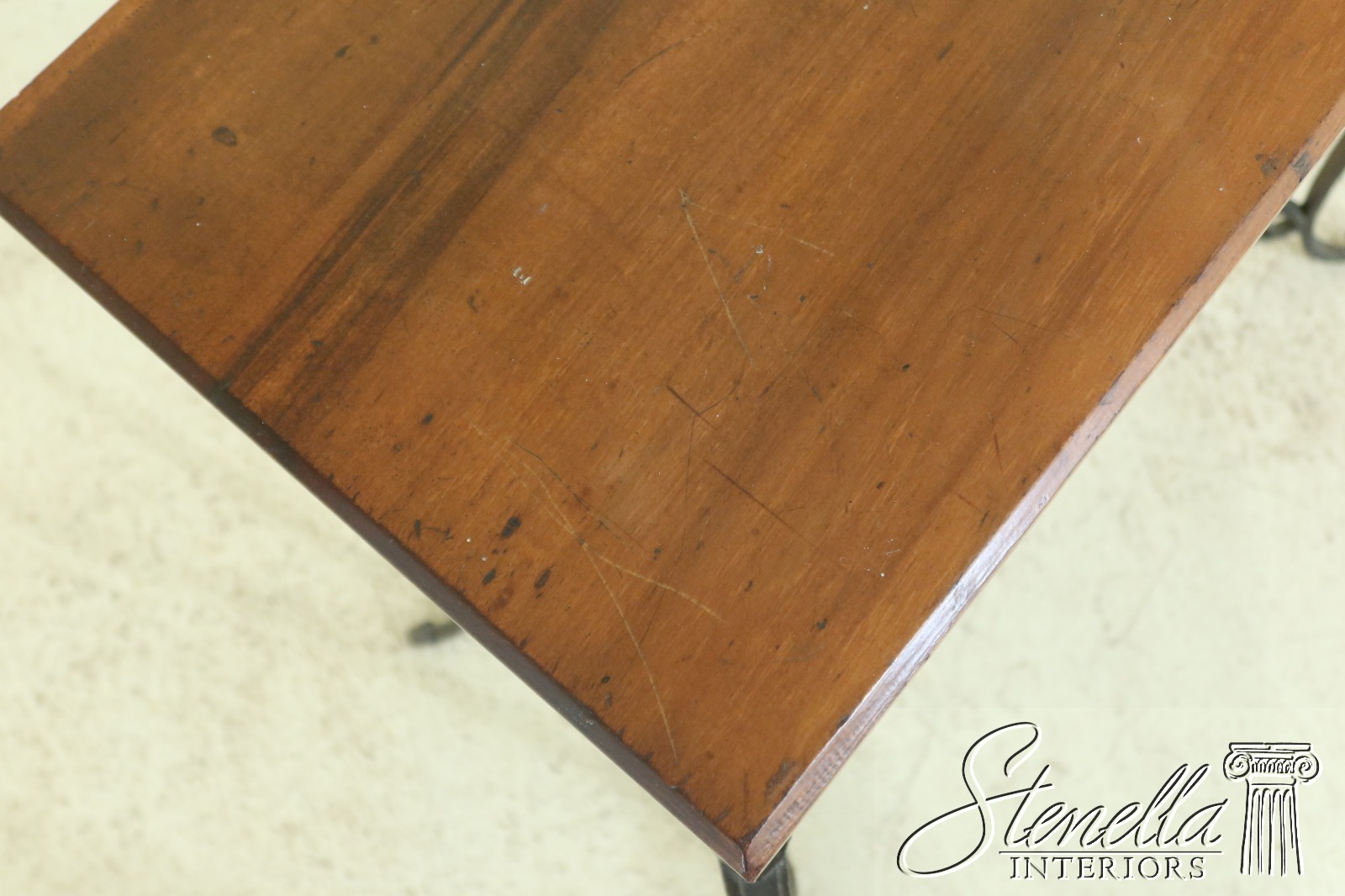 Details: Arts & Crafts Style High Quality Construction Wood Top w. Wear As Shown Top Probably Replaced At One Time Heavy High Quality Custom Iron Work Base