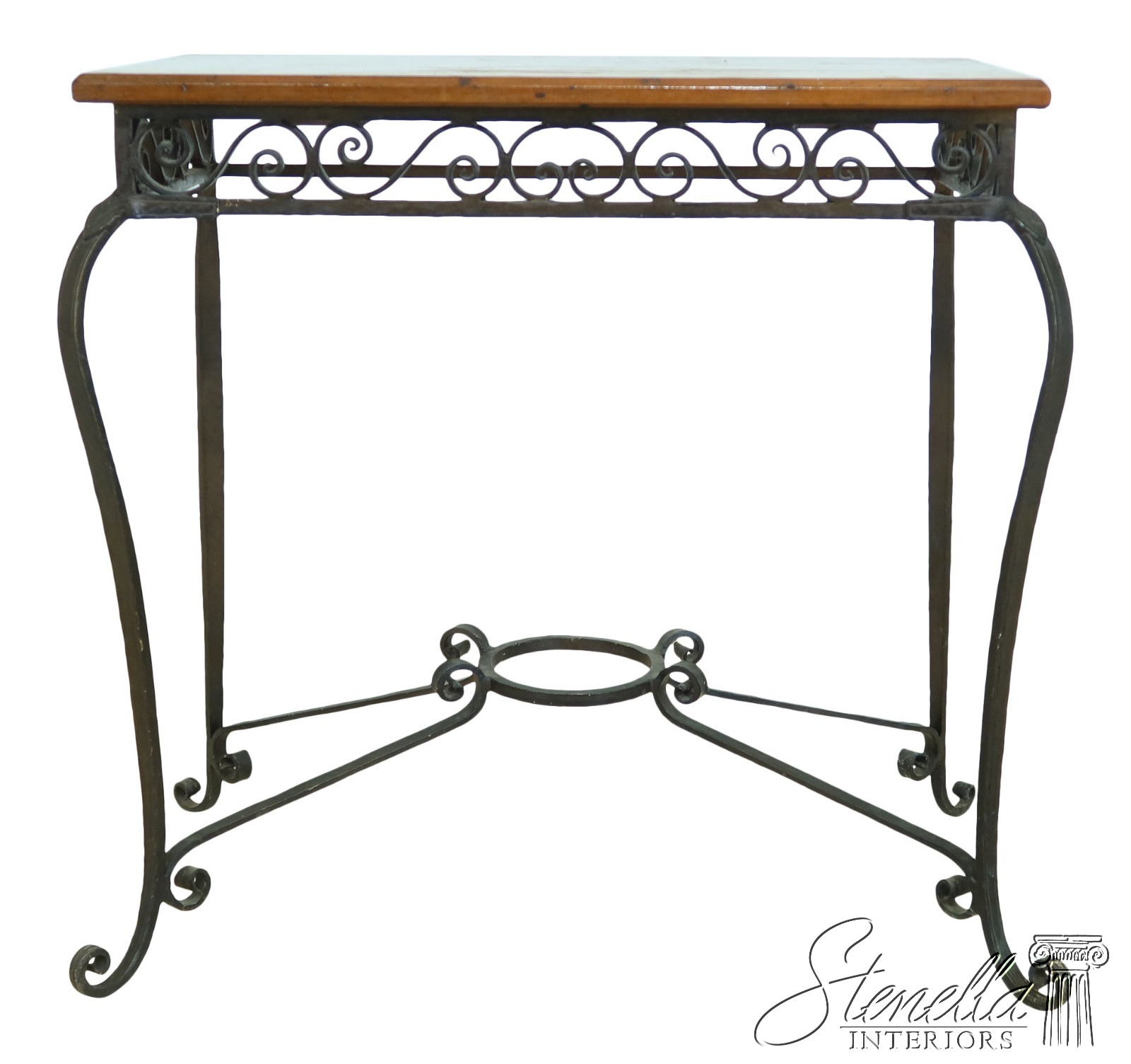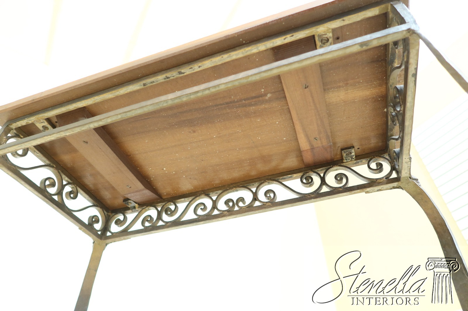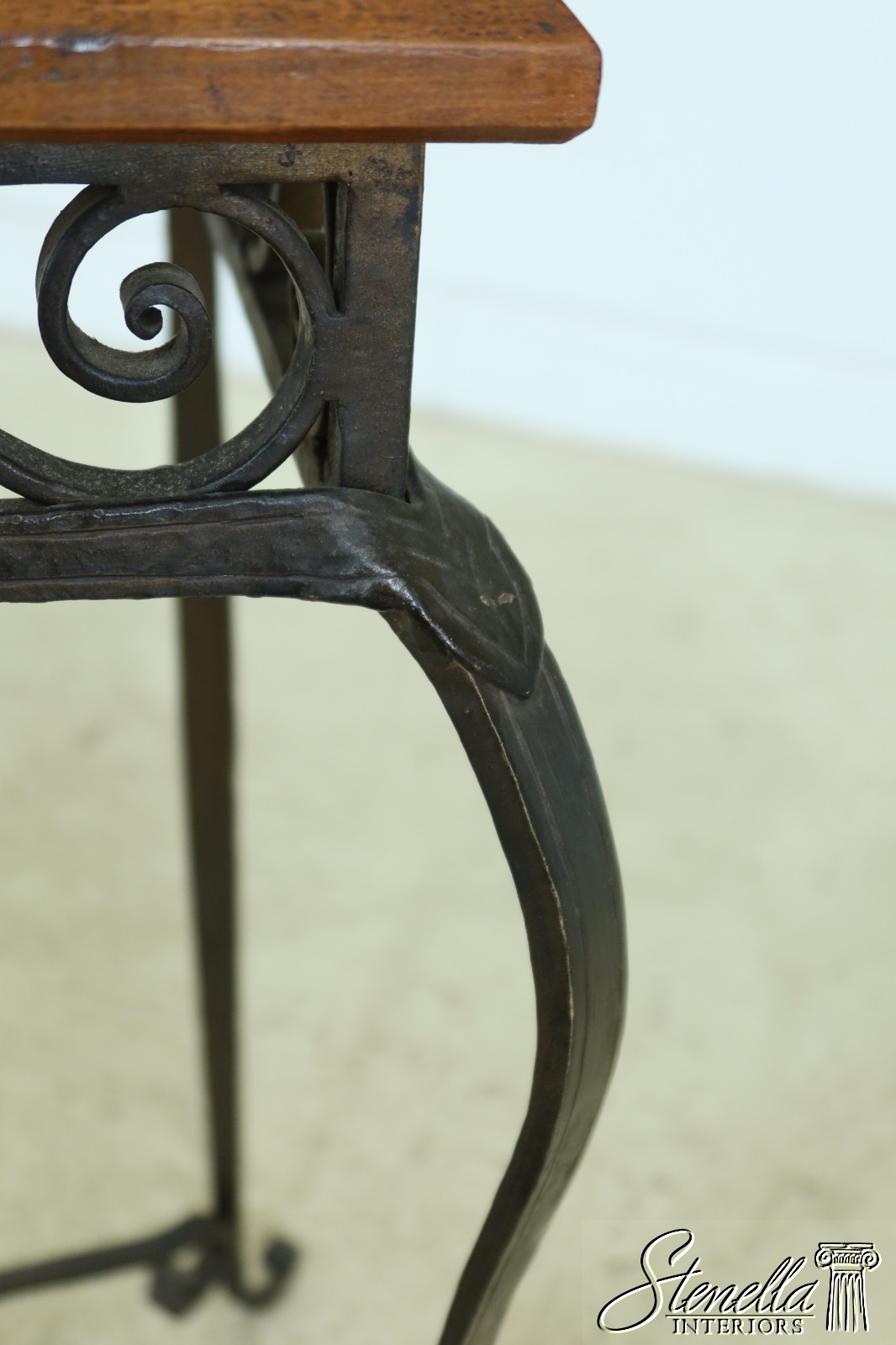 Details: Arts & Crafts Style High Quality Construction Wood Top w. Wear As Shown Top Probably Replaced At One Time Heavy High Quality Custom Iron Work Base