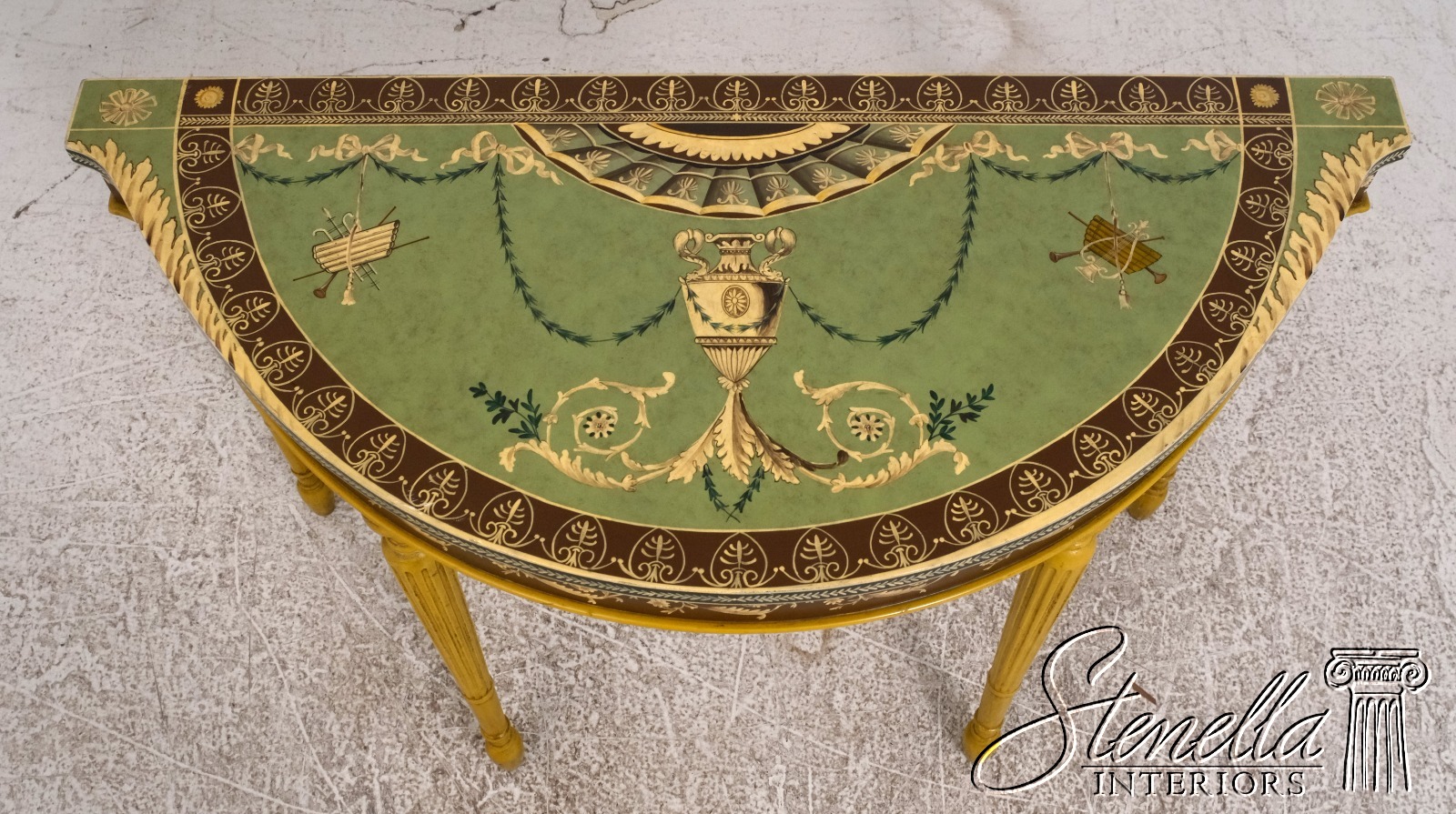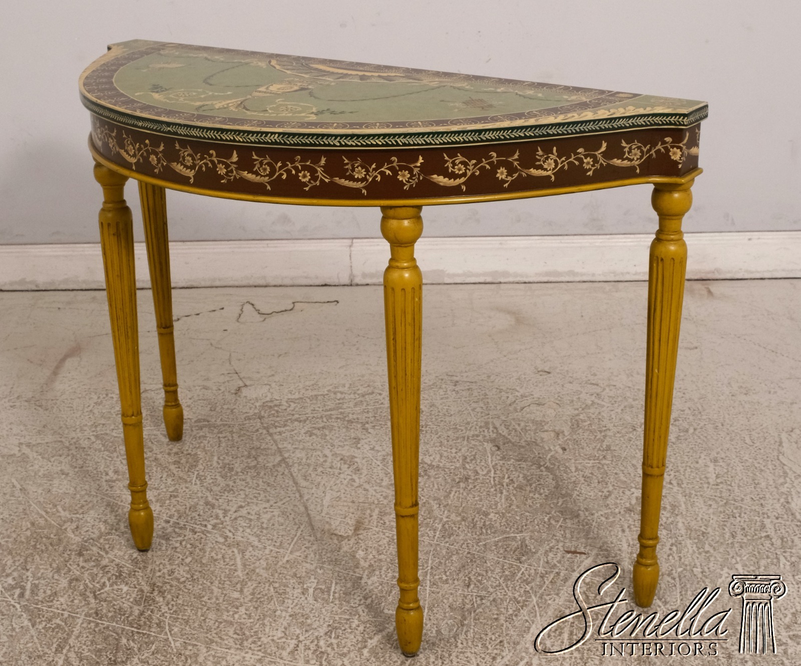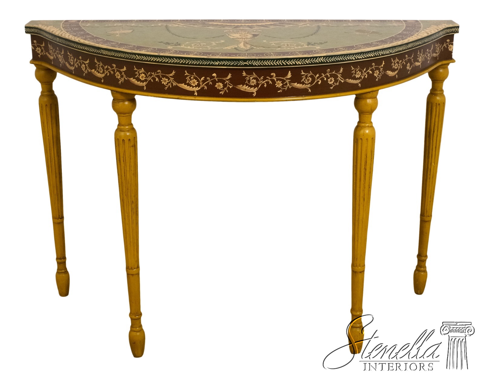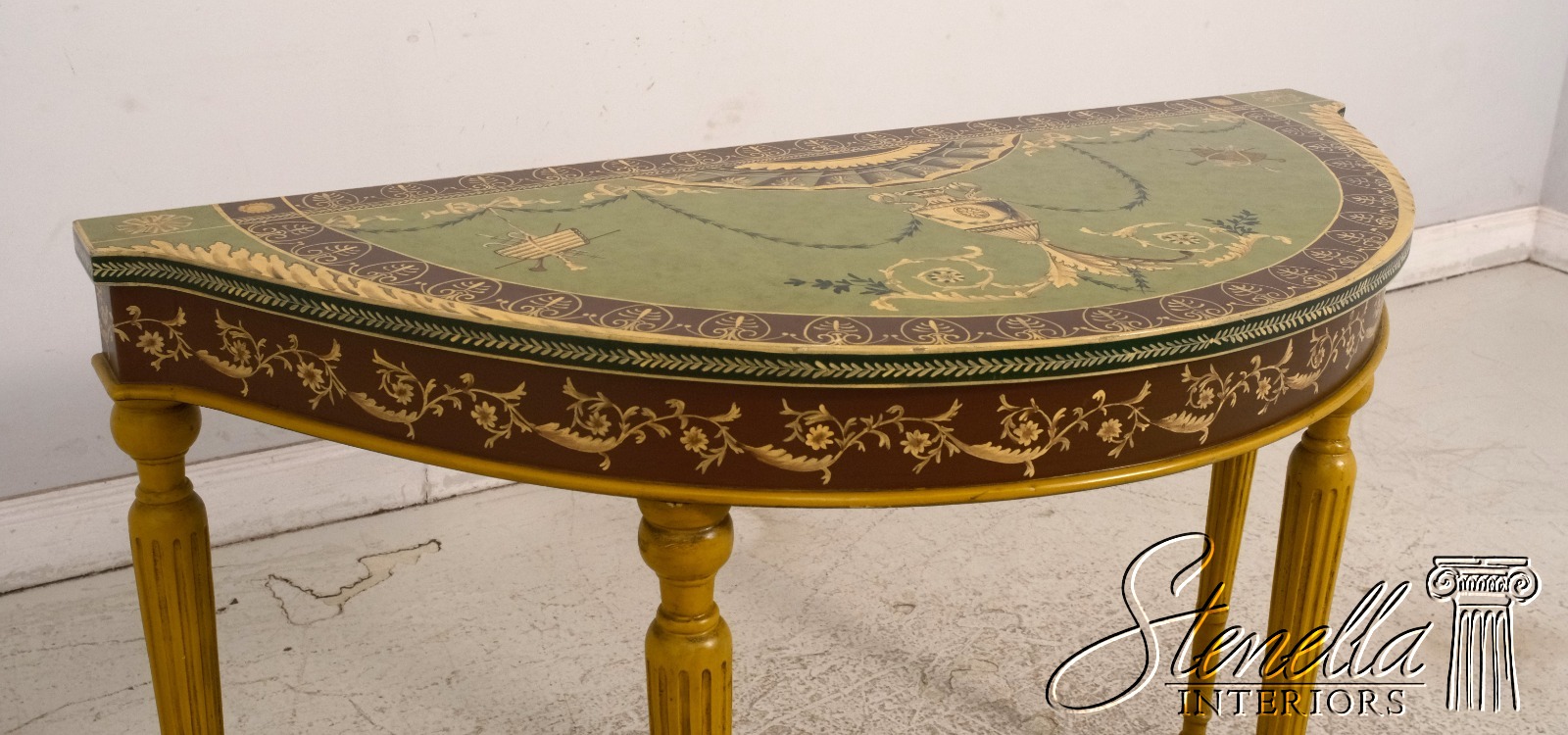 F51820EC: Adams Paint Decorated 1/2 Round Console Table