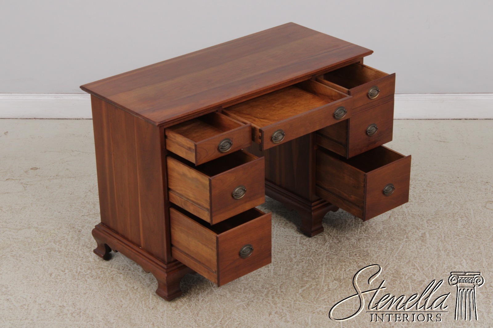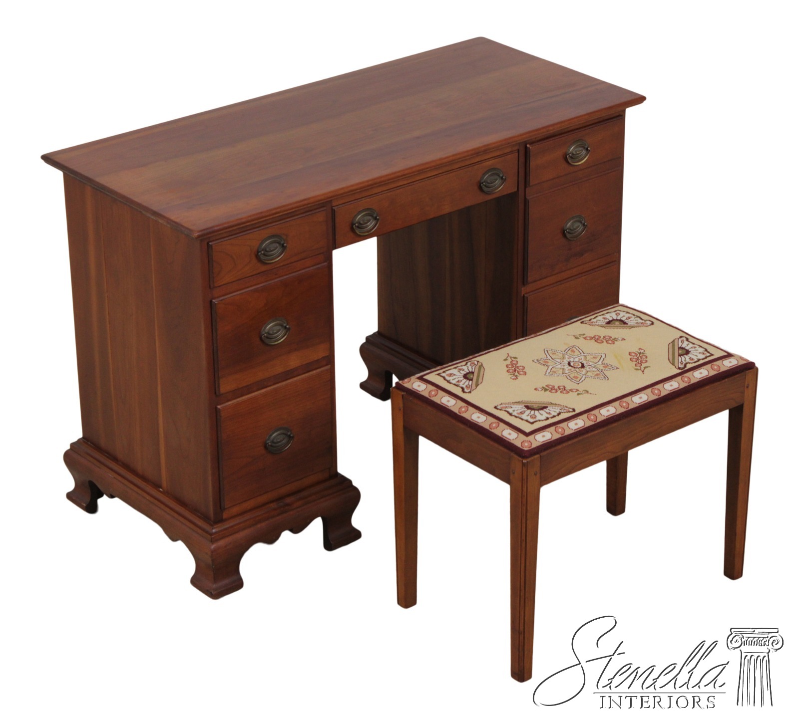 F72608: STICKLEY Cherry Kneehole Desk Vanity & Bench