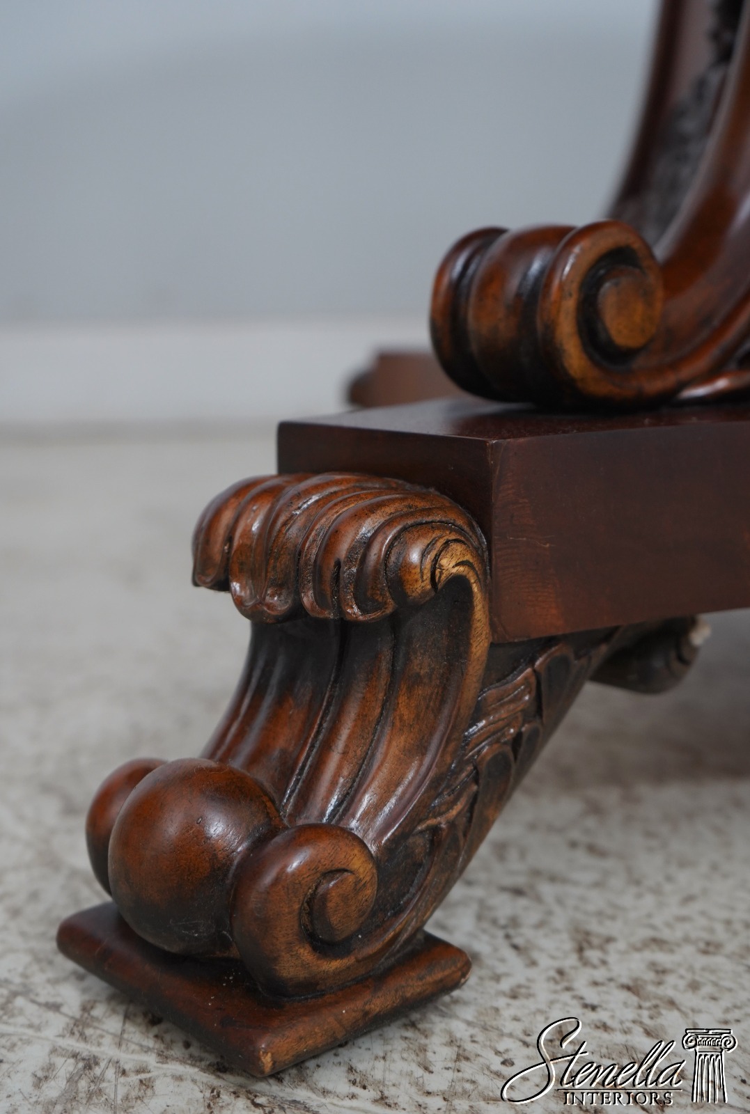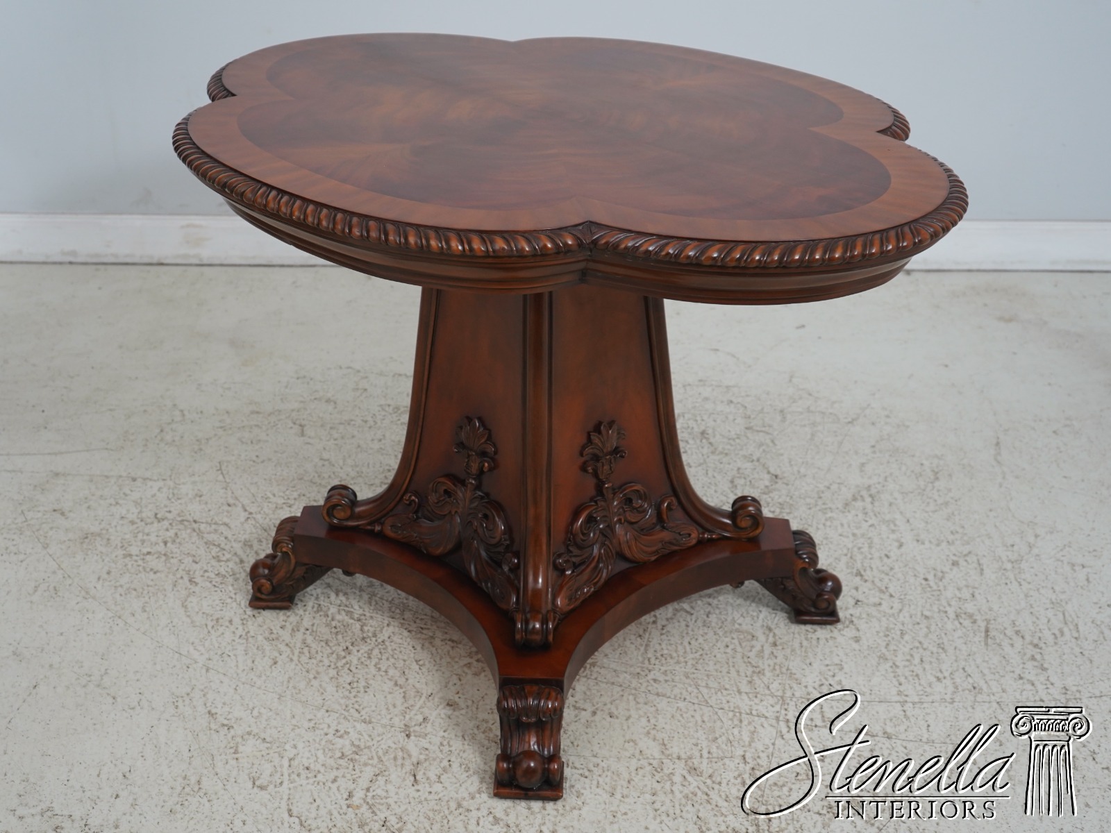 L63604EC: MAITLAND SMITH Carved Base Figural Mahogany Center Table