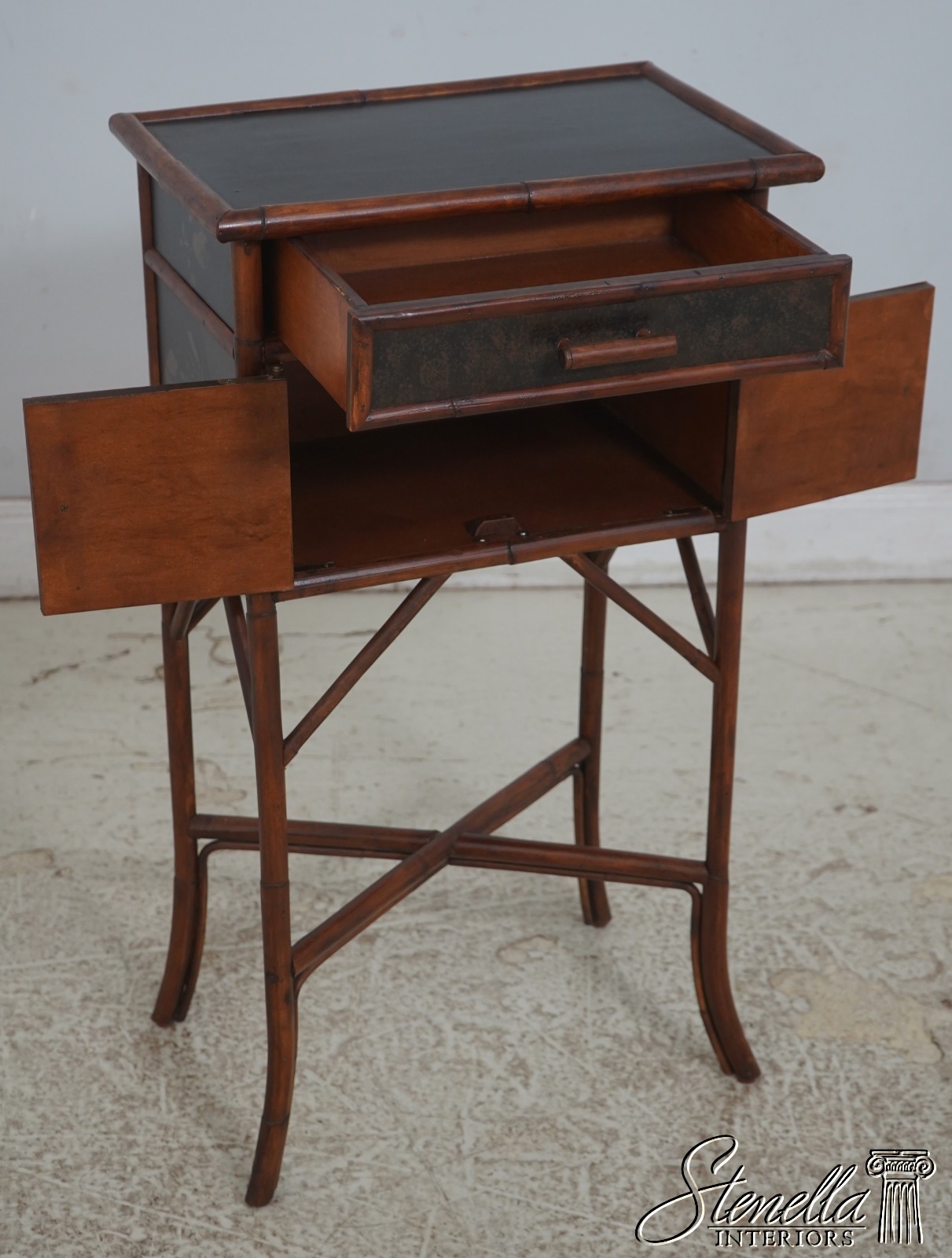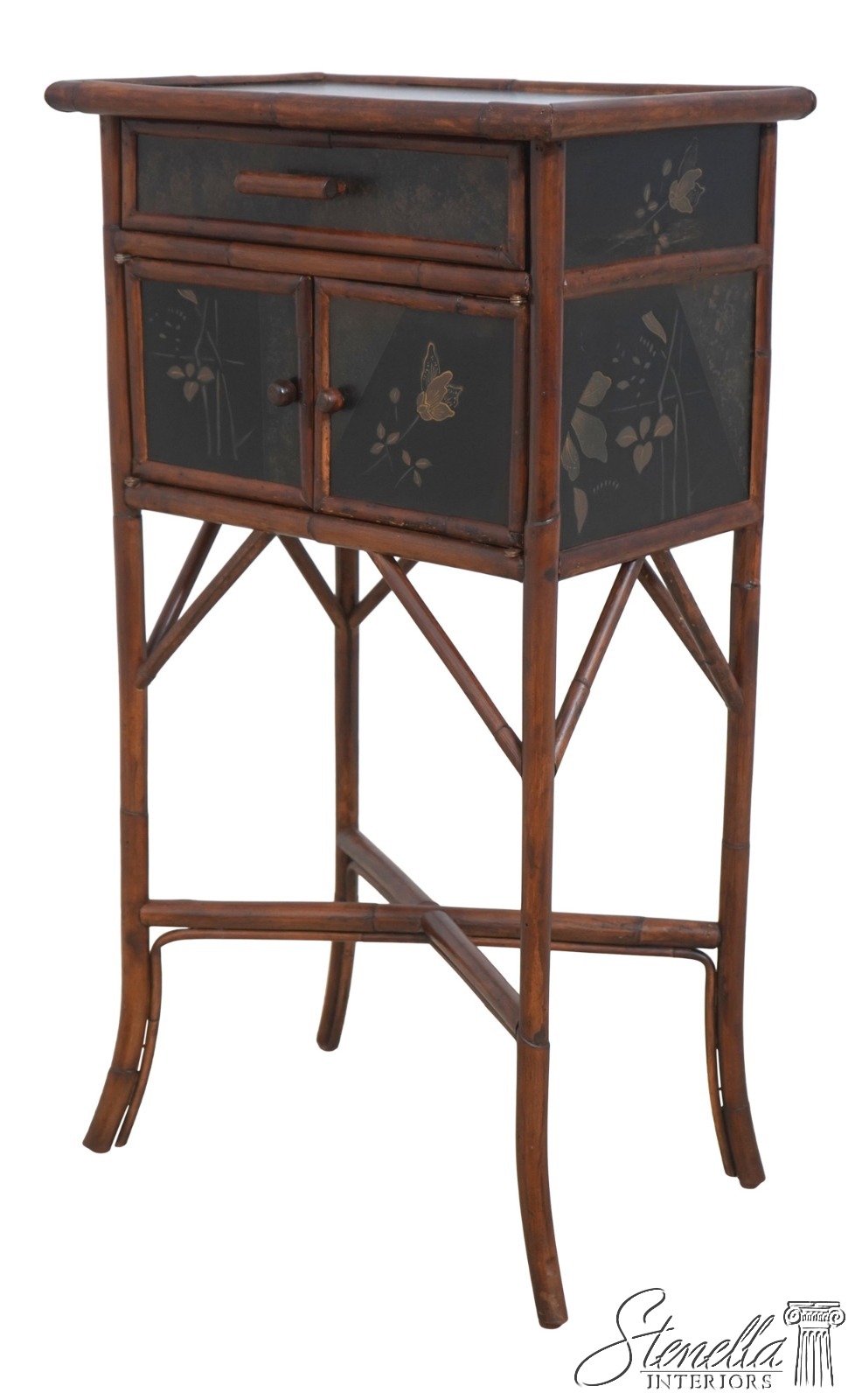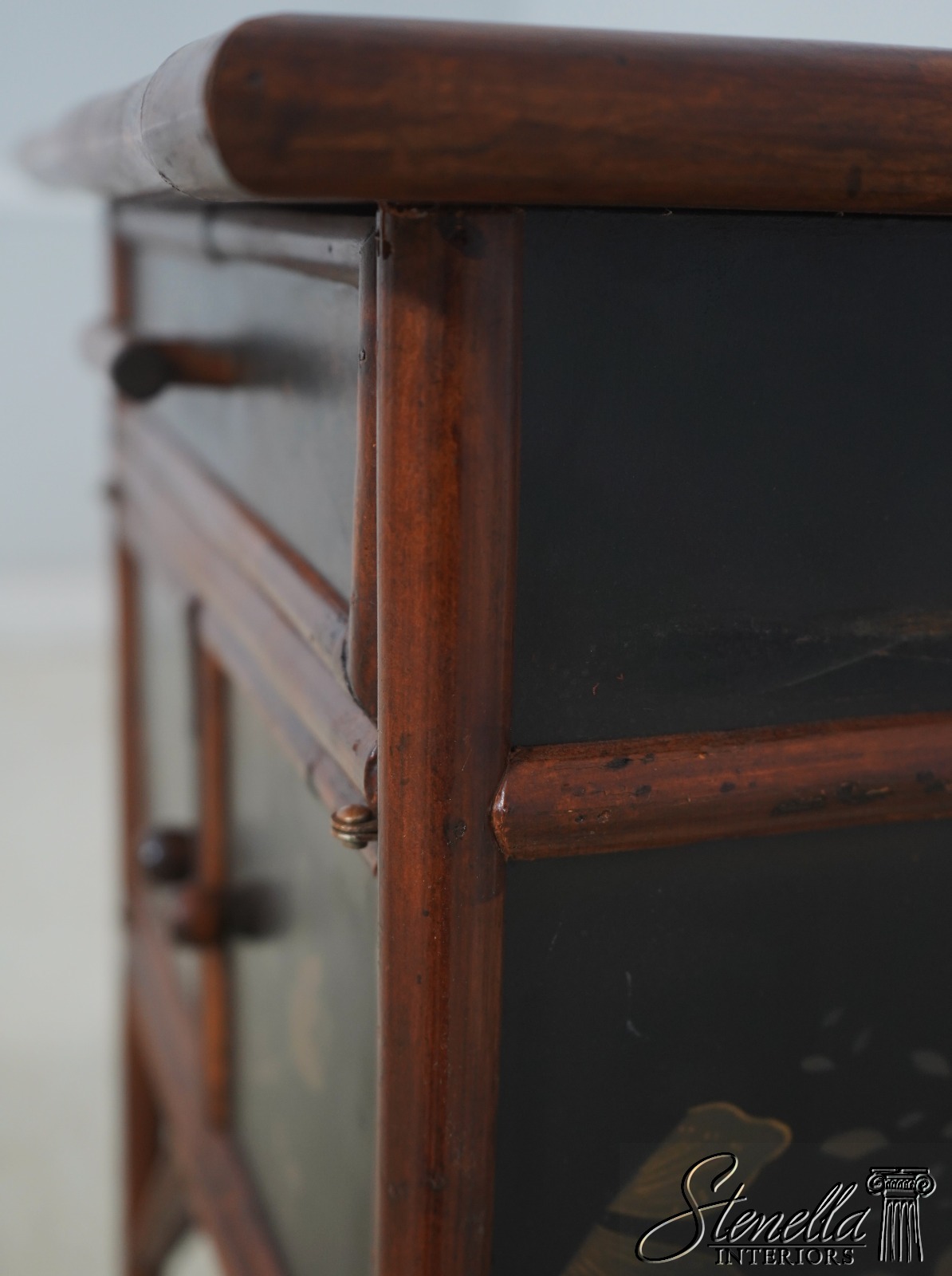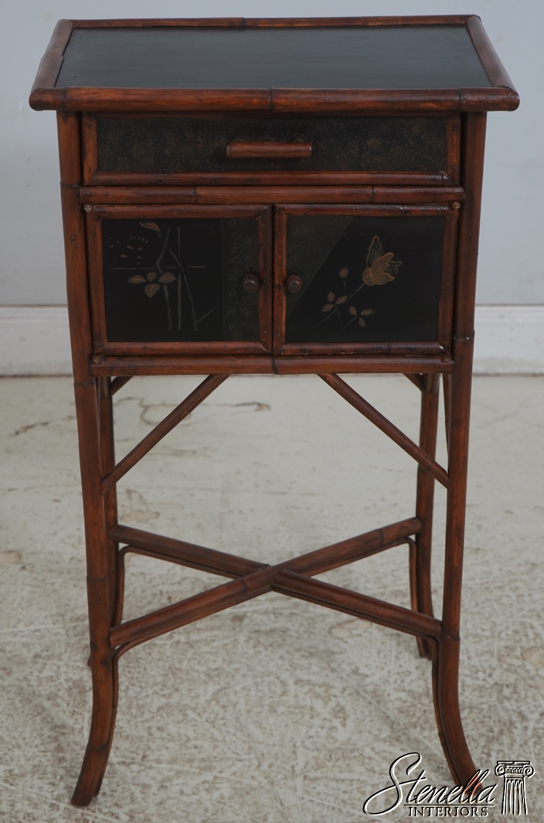 L70463: Bamboo Chinoiserie 2 Door Black Lacquer Stand