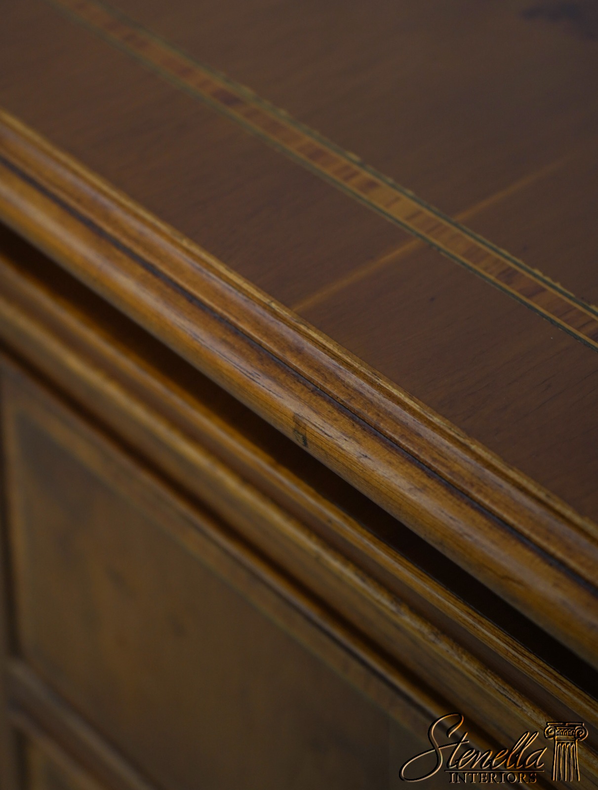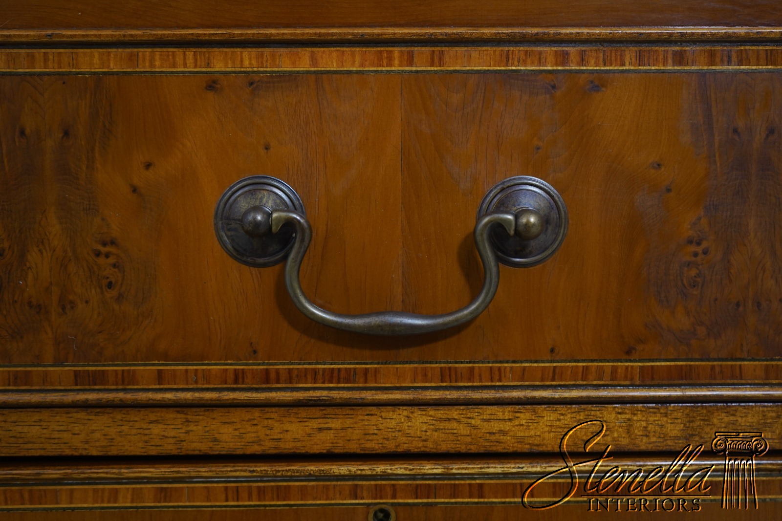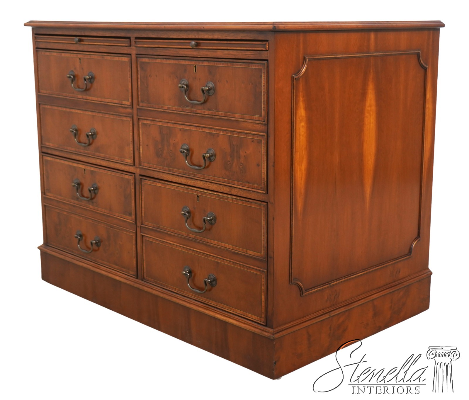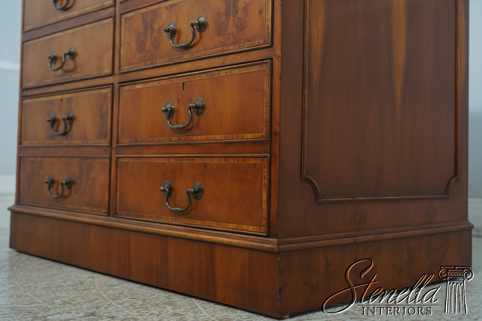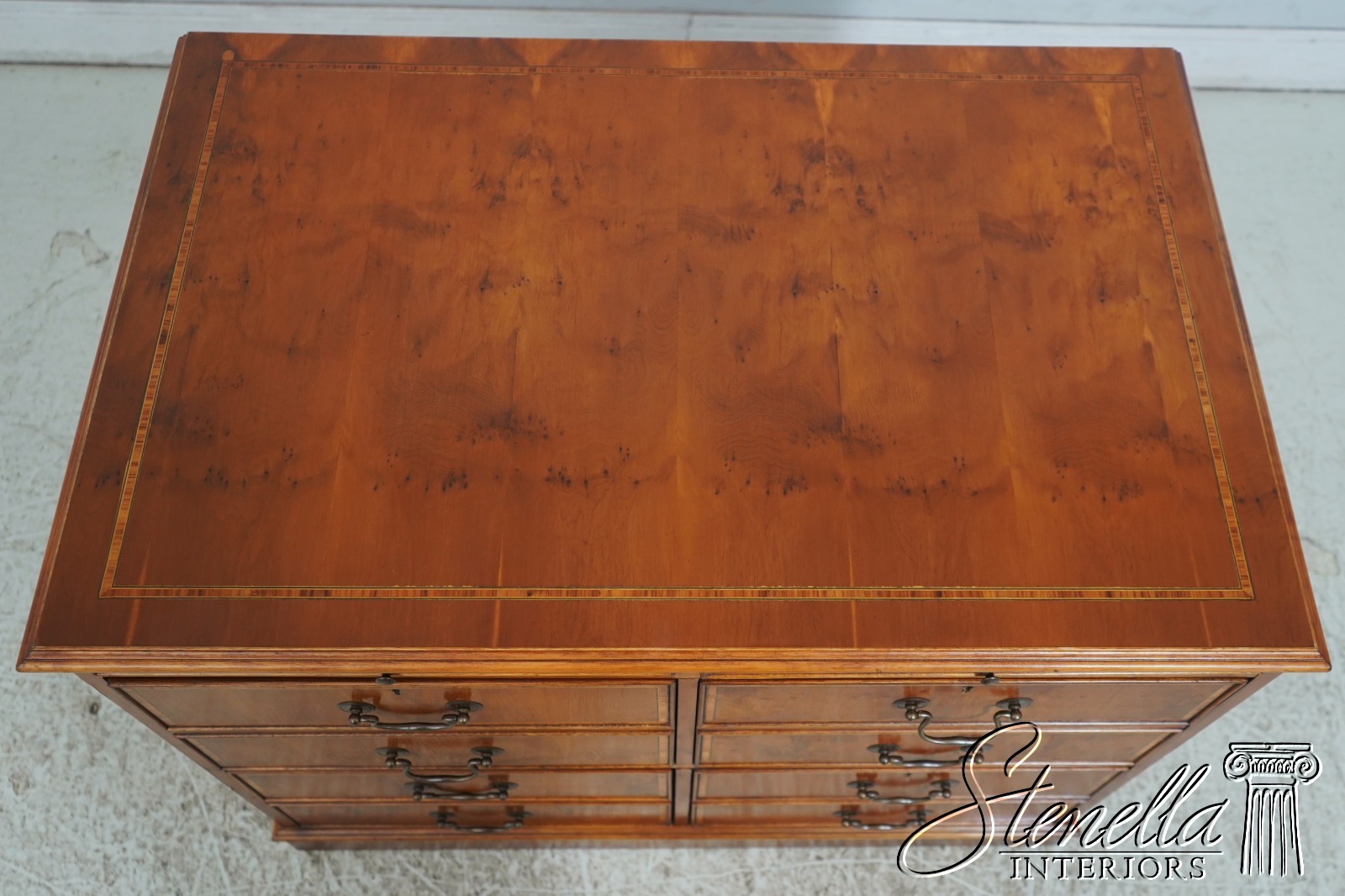 70828: Vintage Regency Style Yew Wood Inlaid 4 Drawer File Cabinet