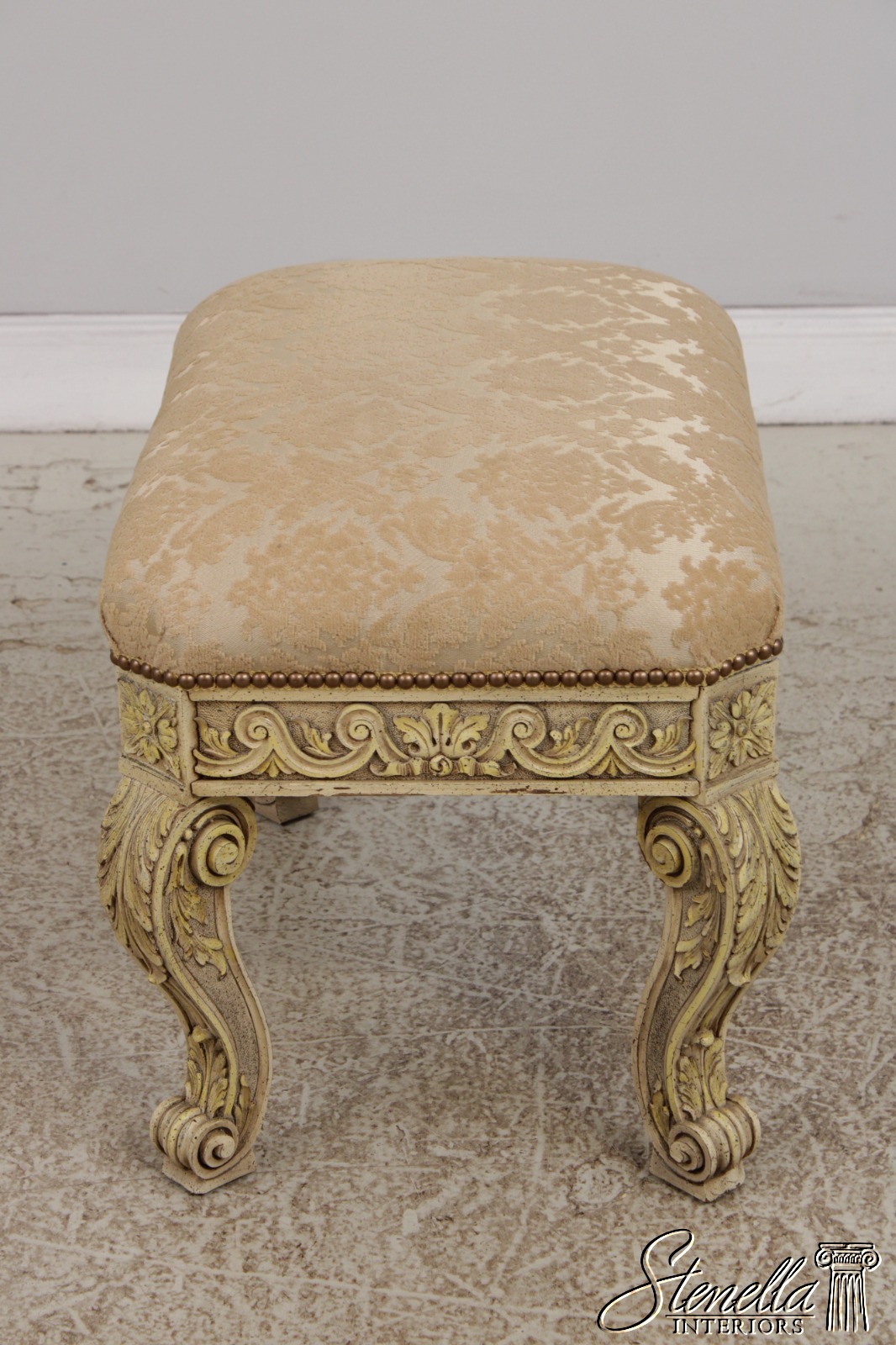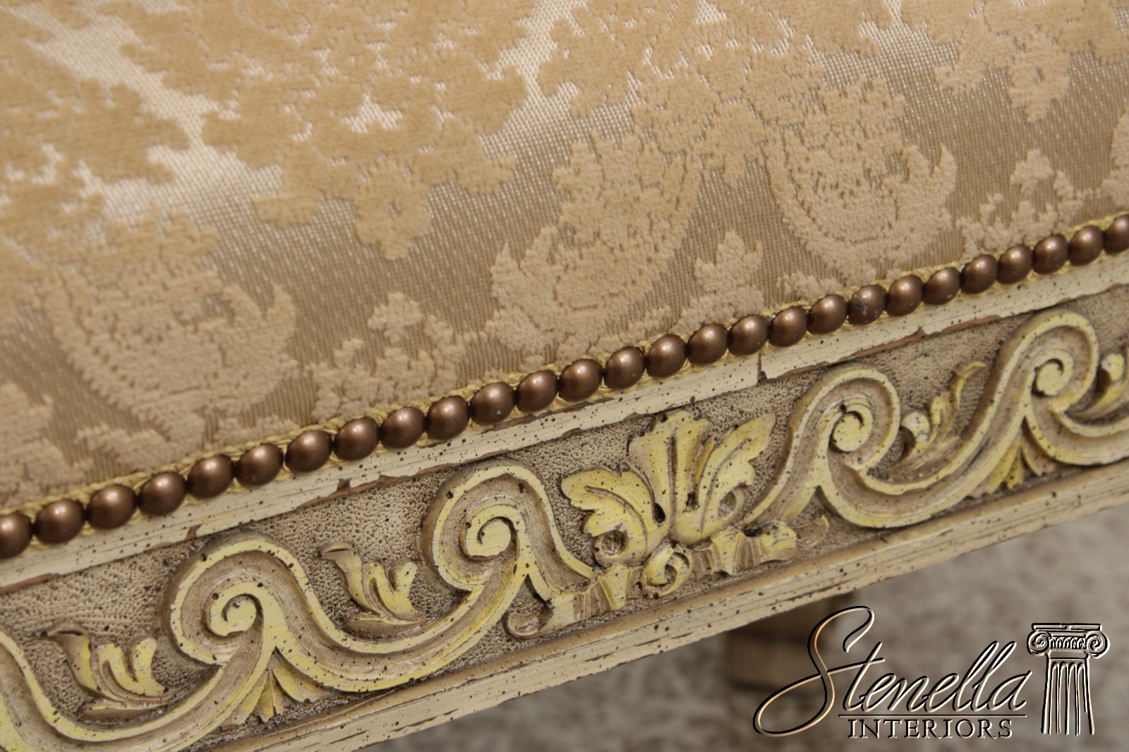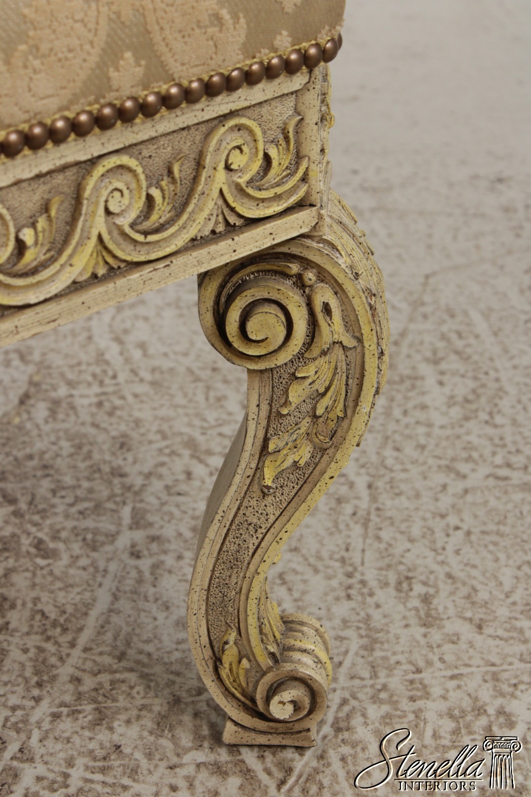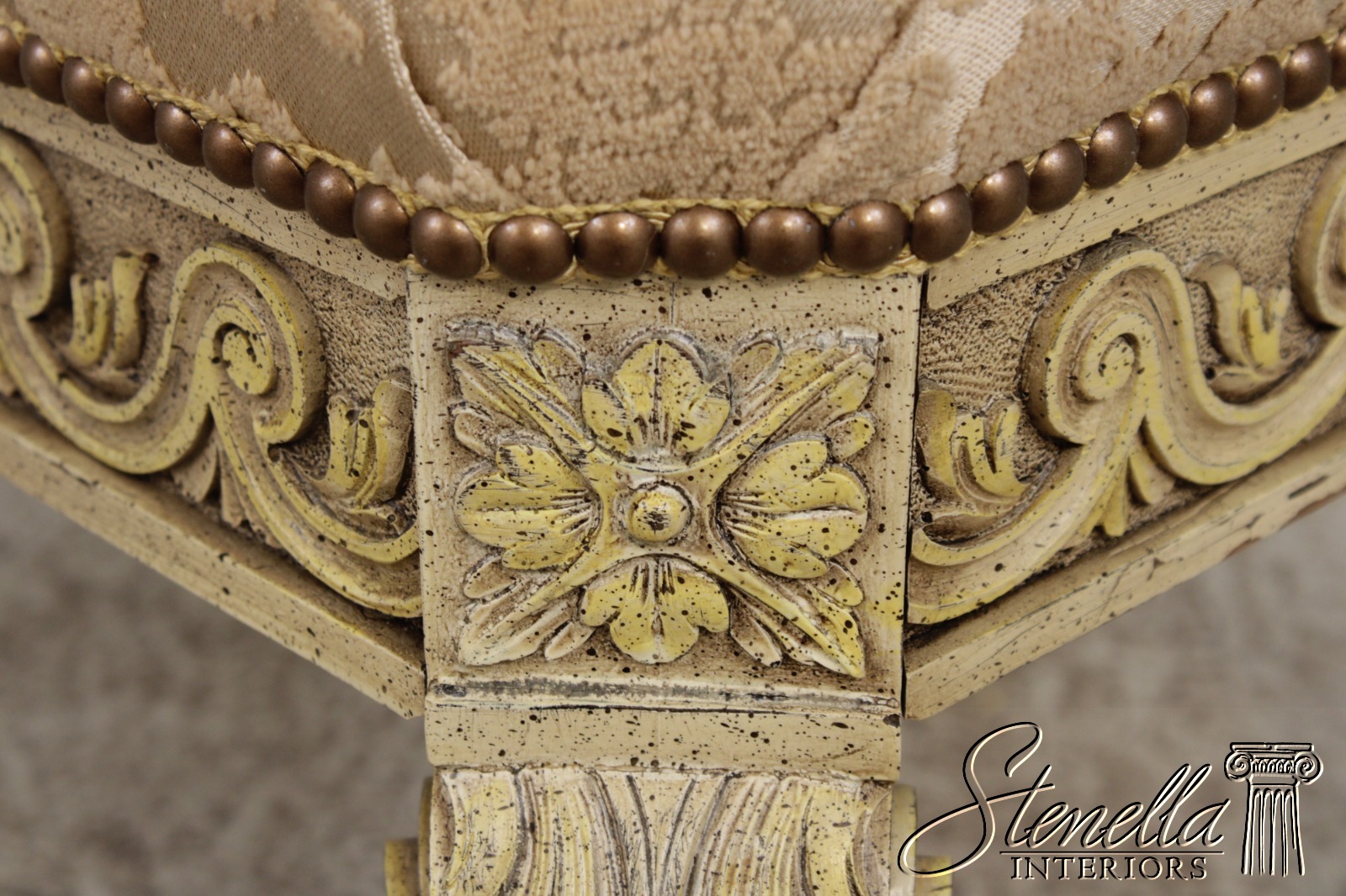 64190EC: WEIMAN Georgian Style Paint Decorated Carved Upholstered Seat Bench