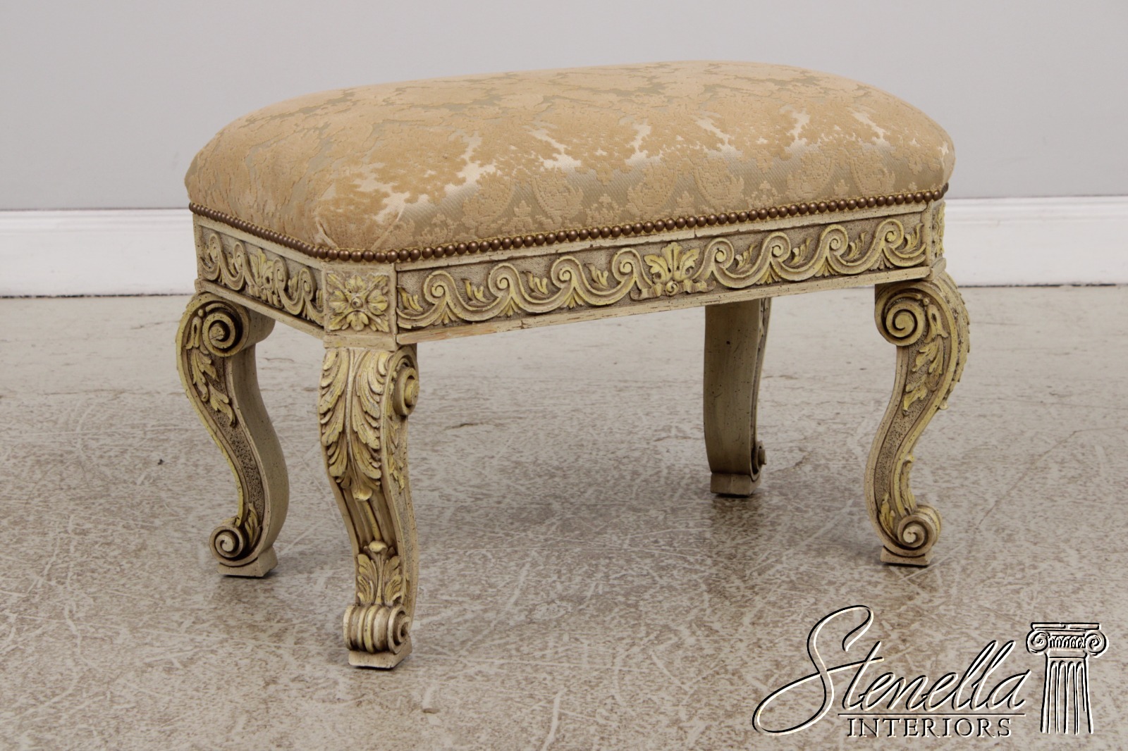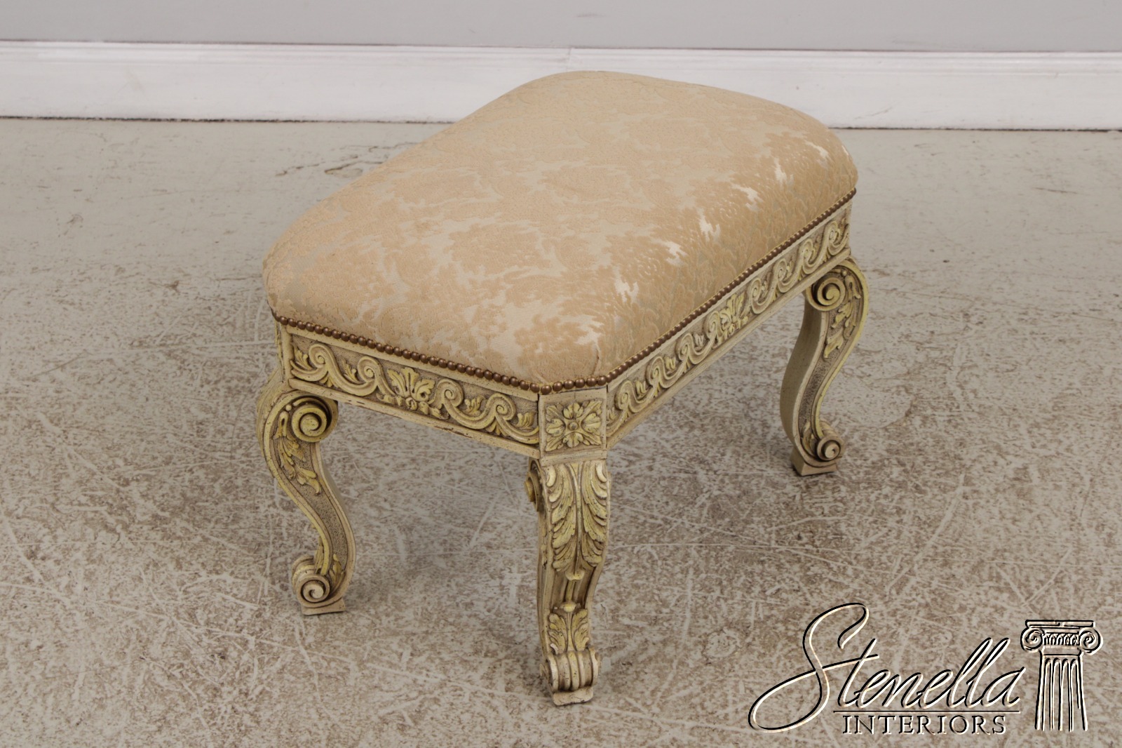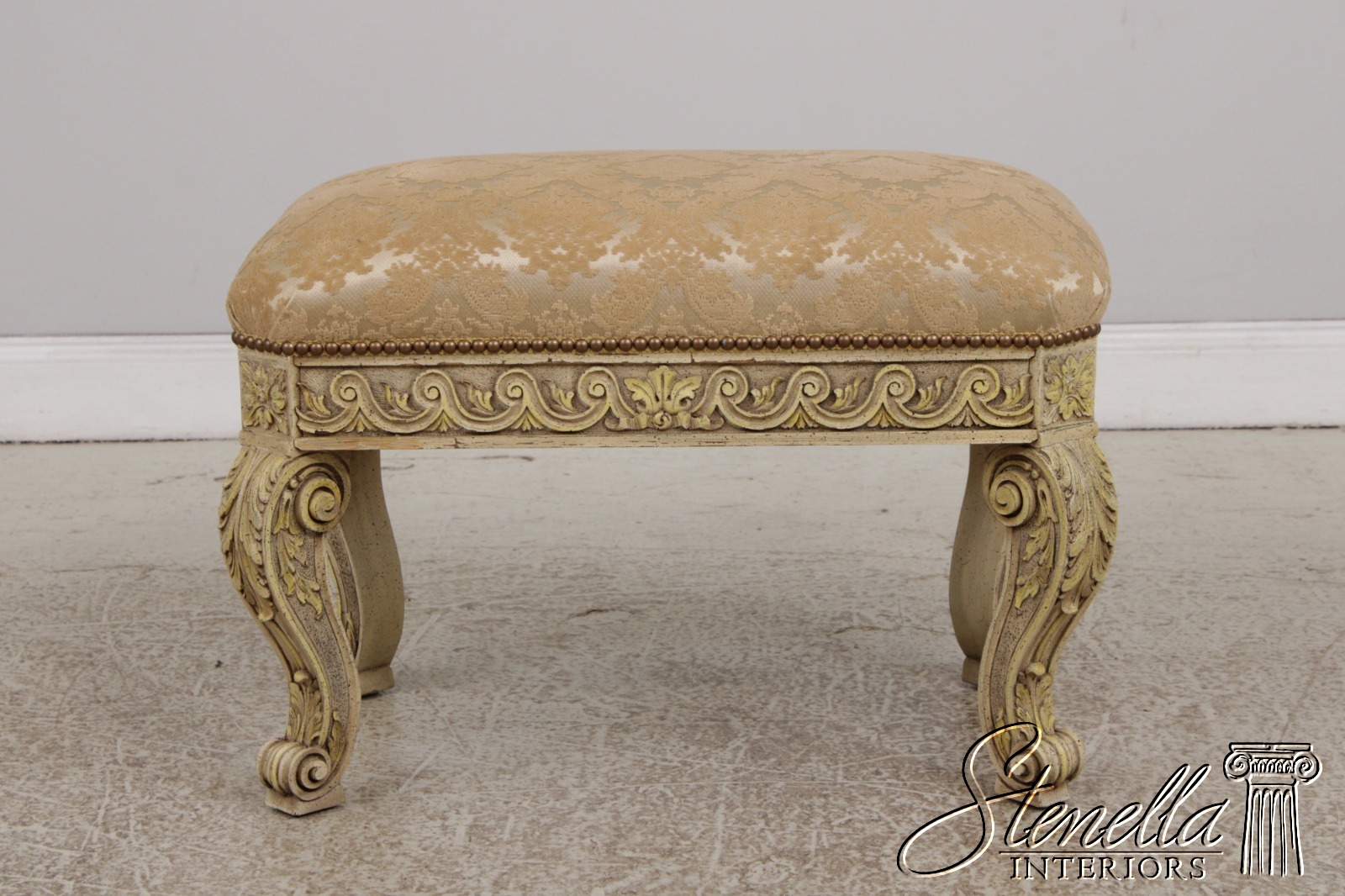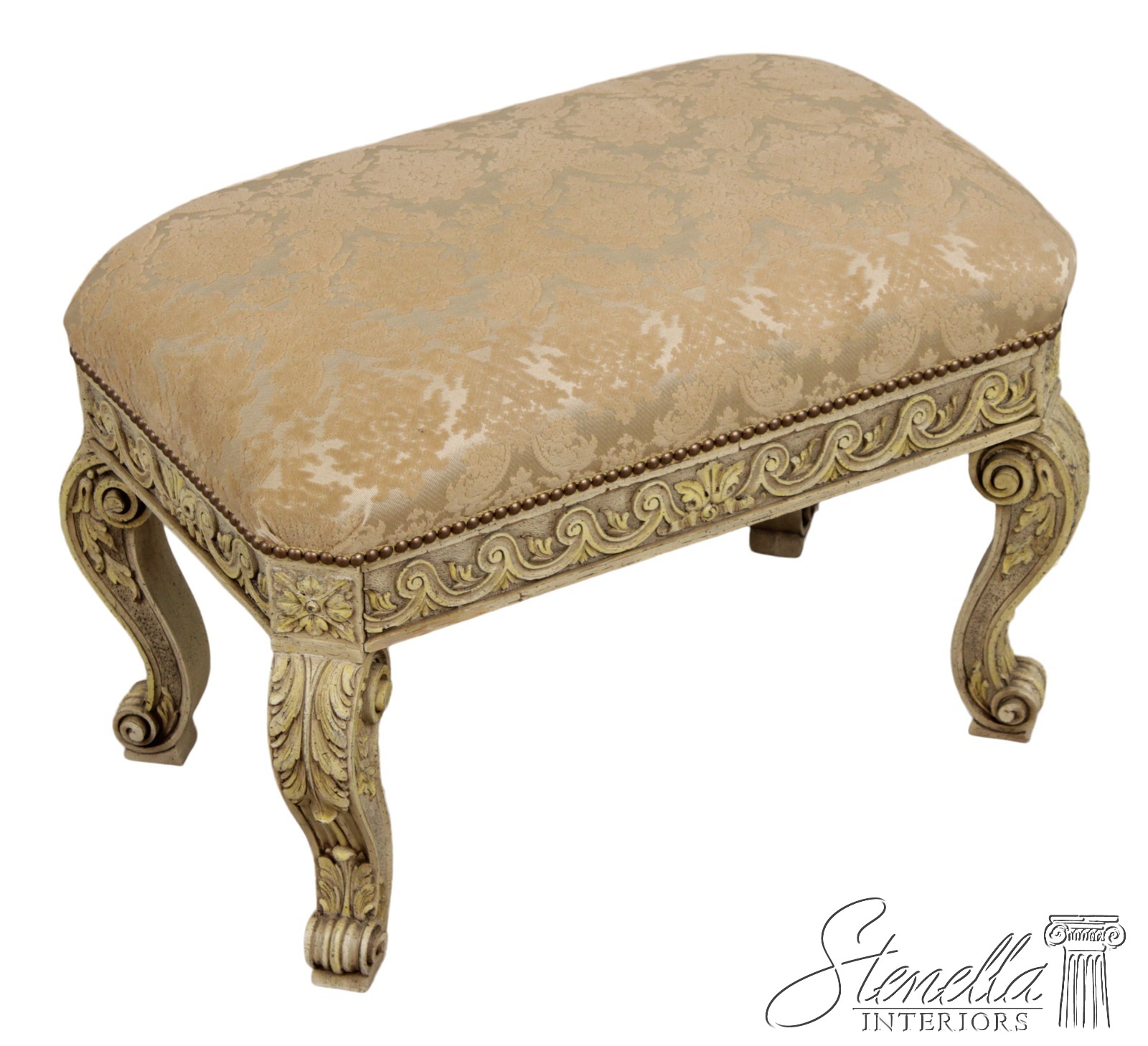 64190EC: WEIMAN Georgian Style Paint Decorated Carved Upholstered Seat Bench