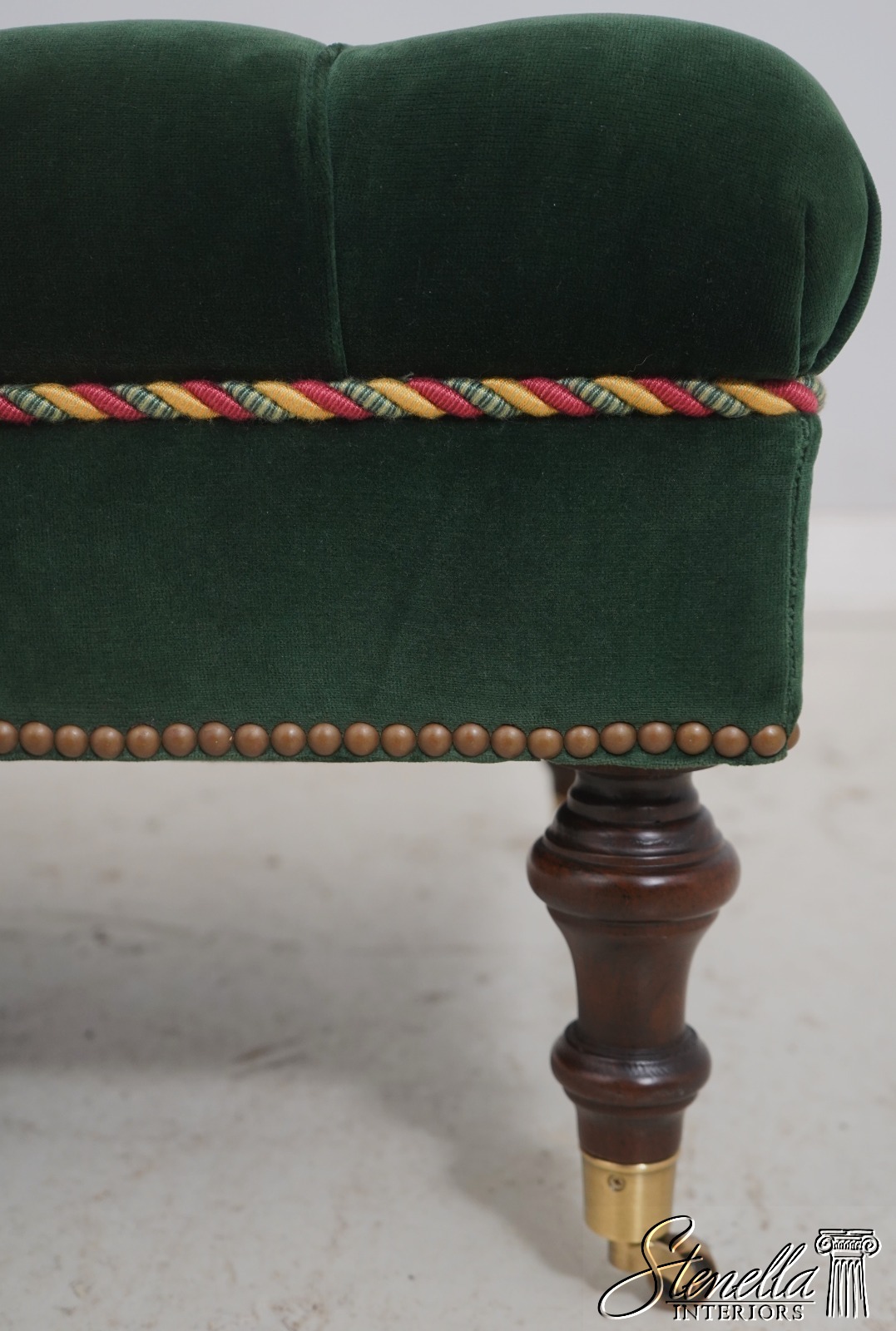 69053: EDWARD FERRELL Tufted Green Velvet Cherry Ottoman