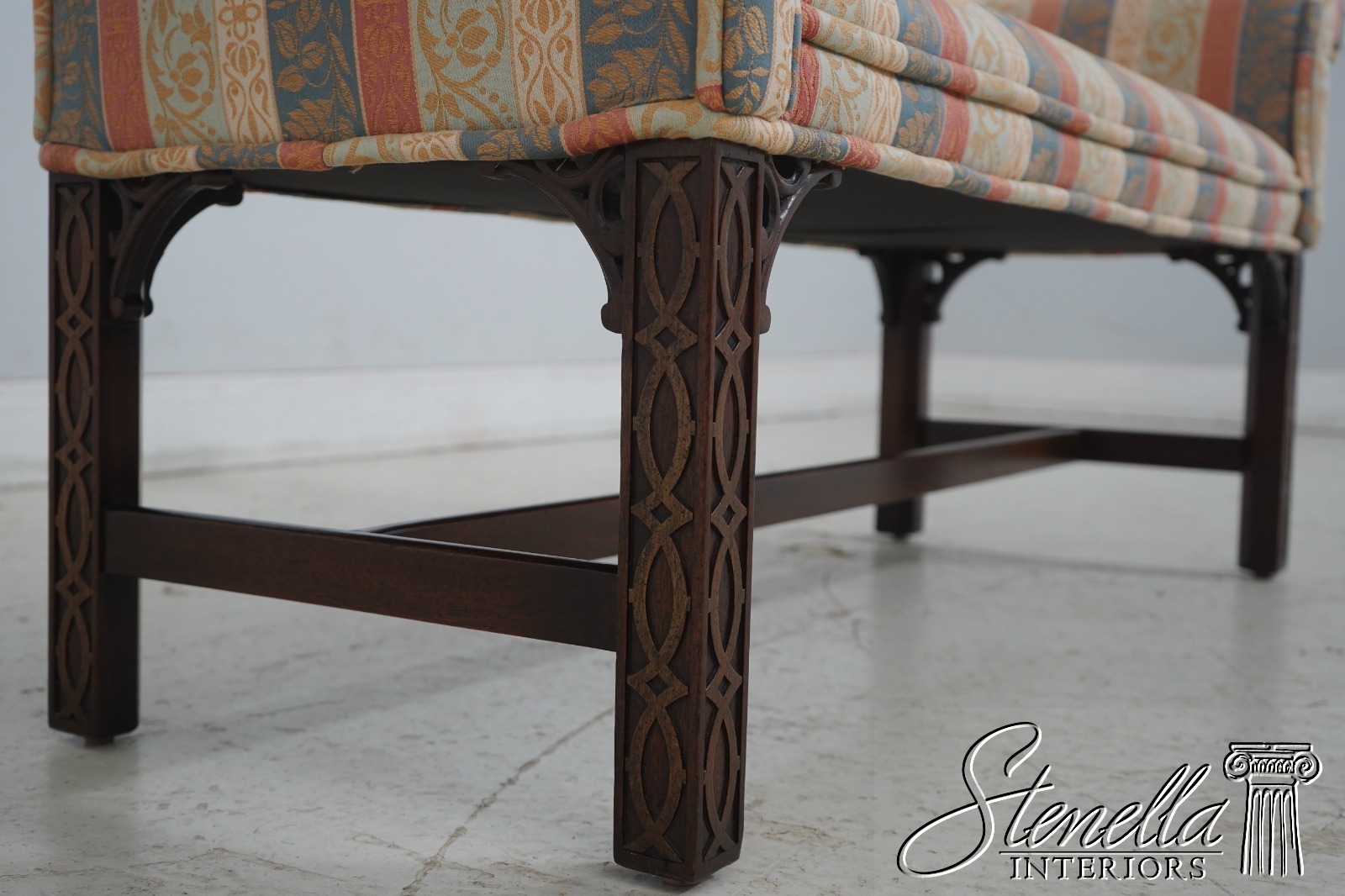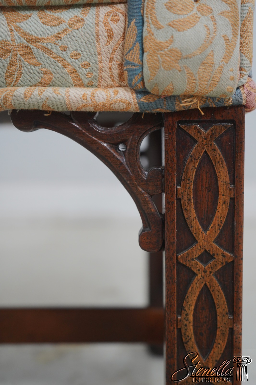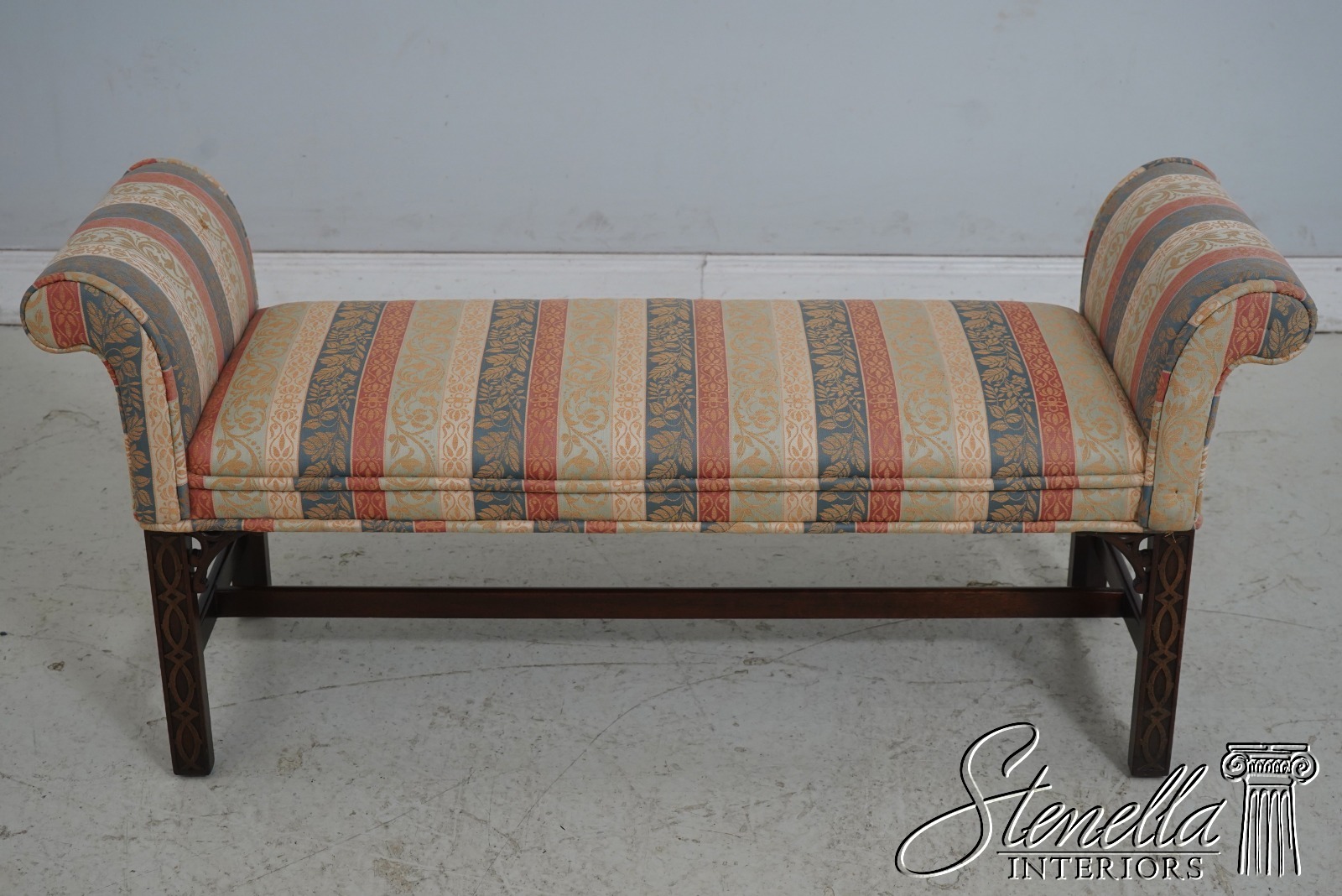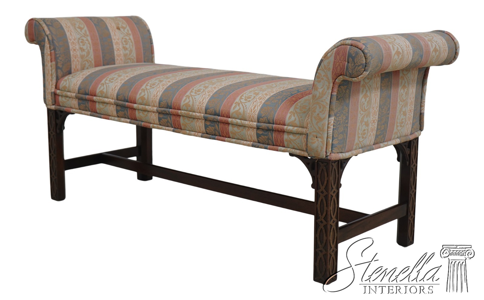 69287: Chippendale Mahogany Rolled Arm Window Bench