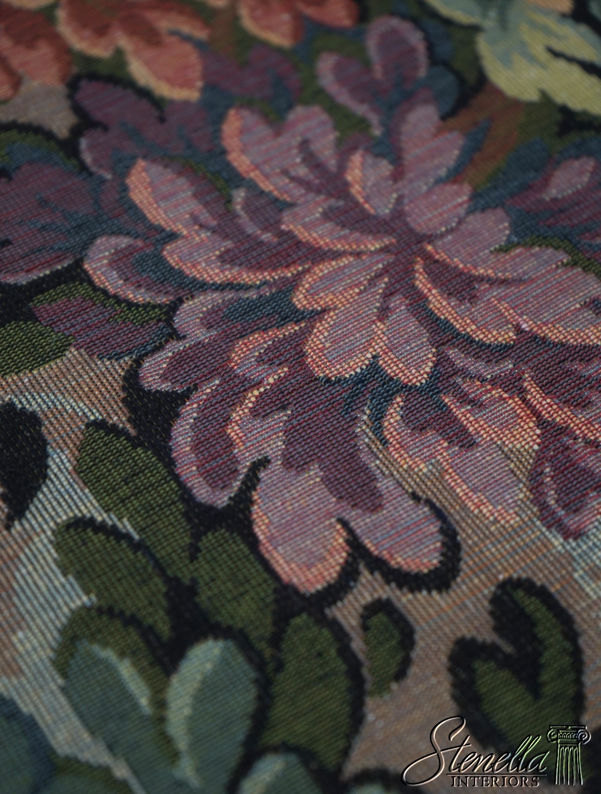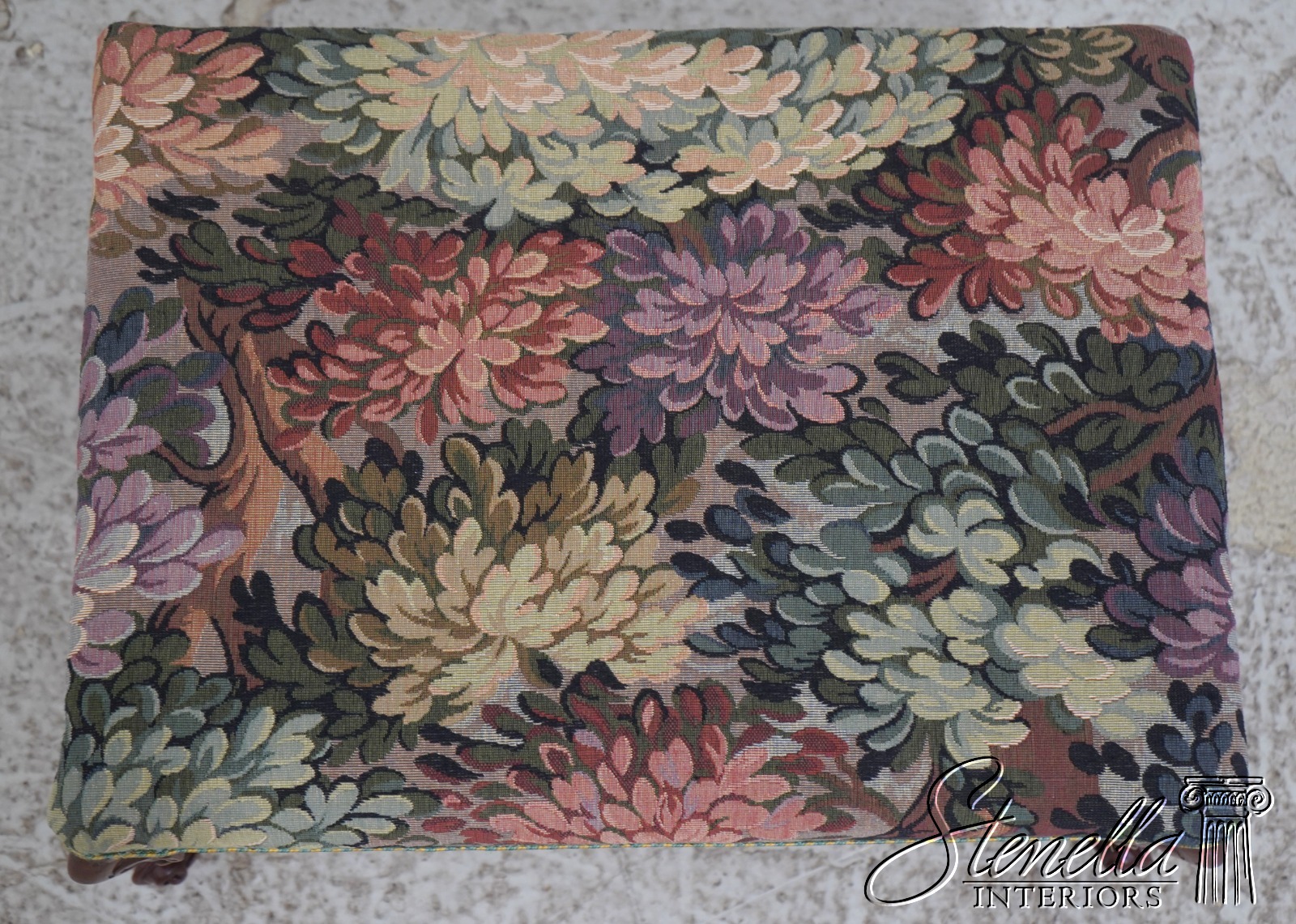 Details: Mahogany High Quality Construction Queen Anne Legs 18 C. Design Tapestry Type Upholstery Floral Print Fabric Un-Marked As To Manufacture Offered @ Fraction Original Retail Cost