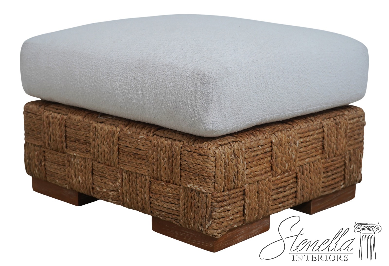 70770: RALPH LAUREN Wicker Woven Upholstered Stool