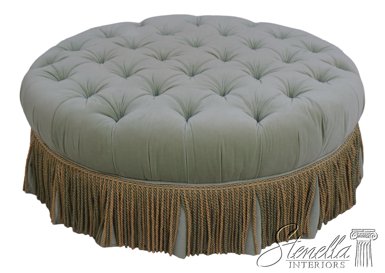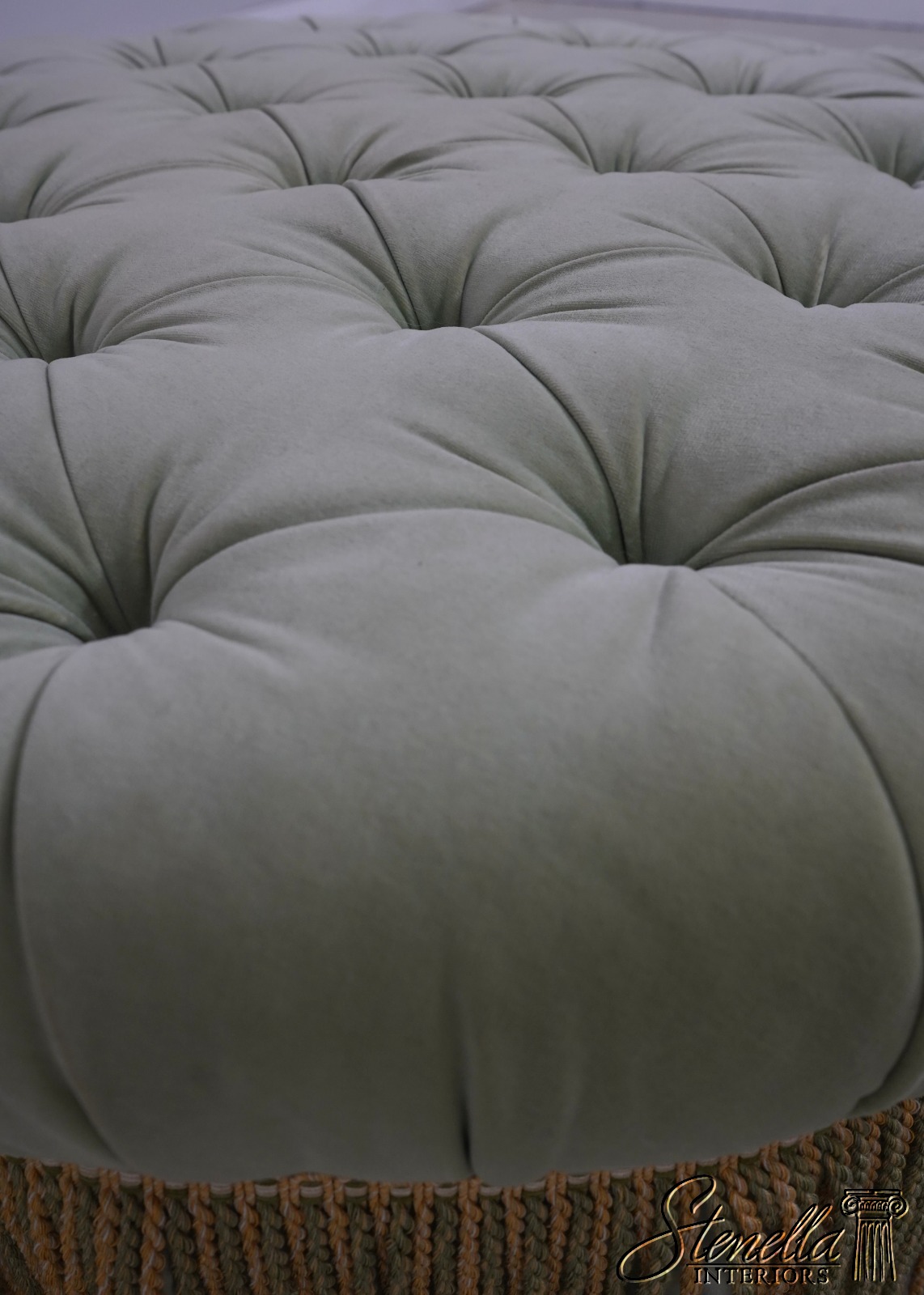 71656: BAKER Round Green Velvet Style Upholstered Ottoman