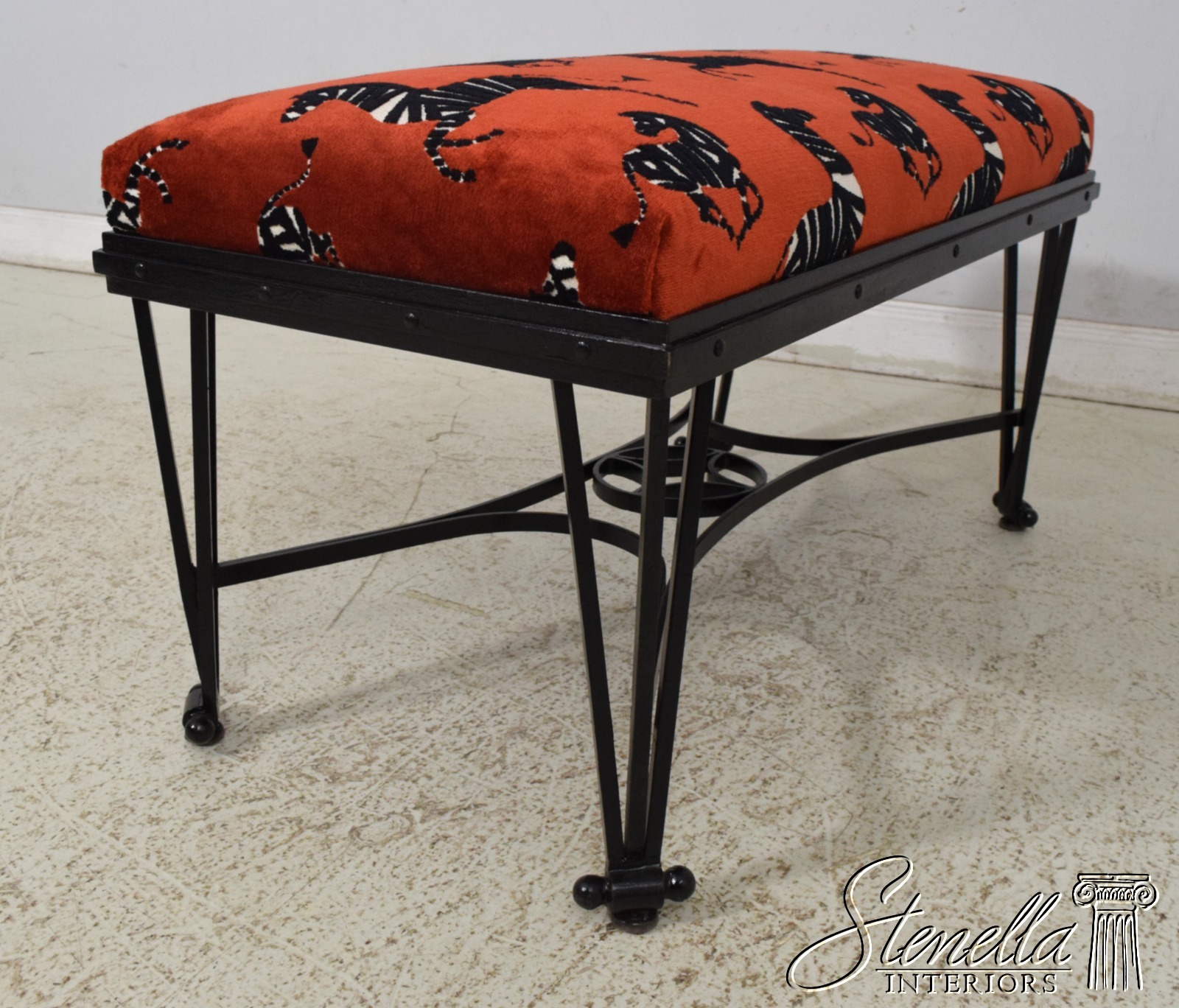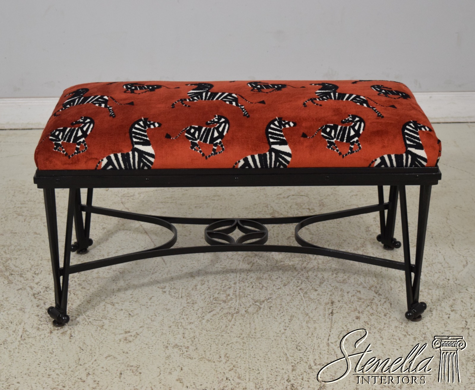 F67006: Vintage French Art Deco Design Iron Base Zebra Upholstered Bench