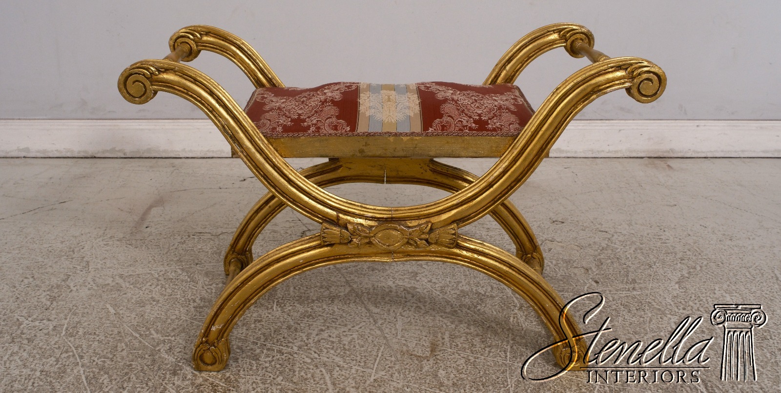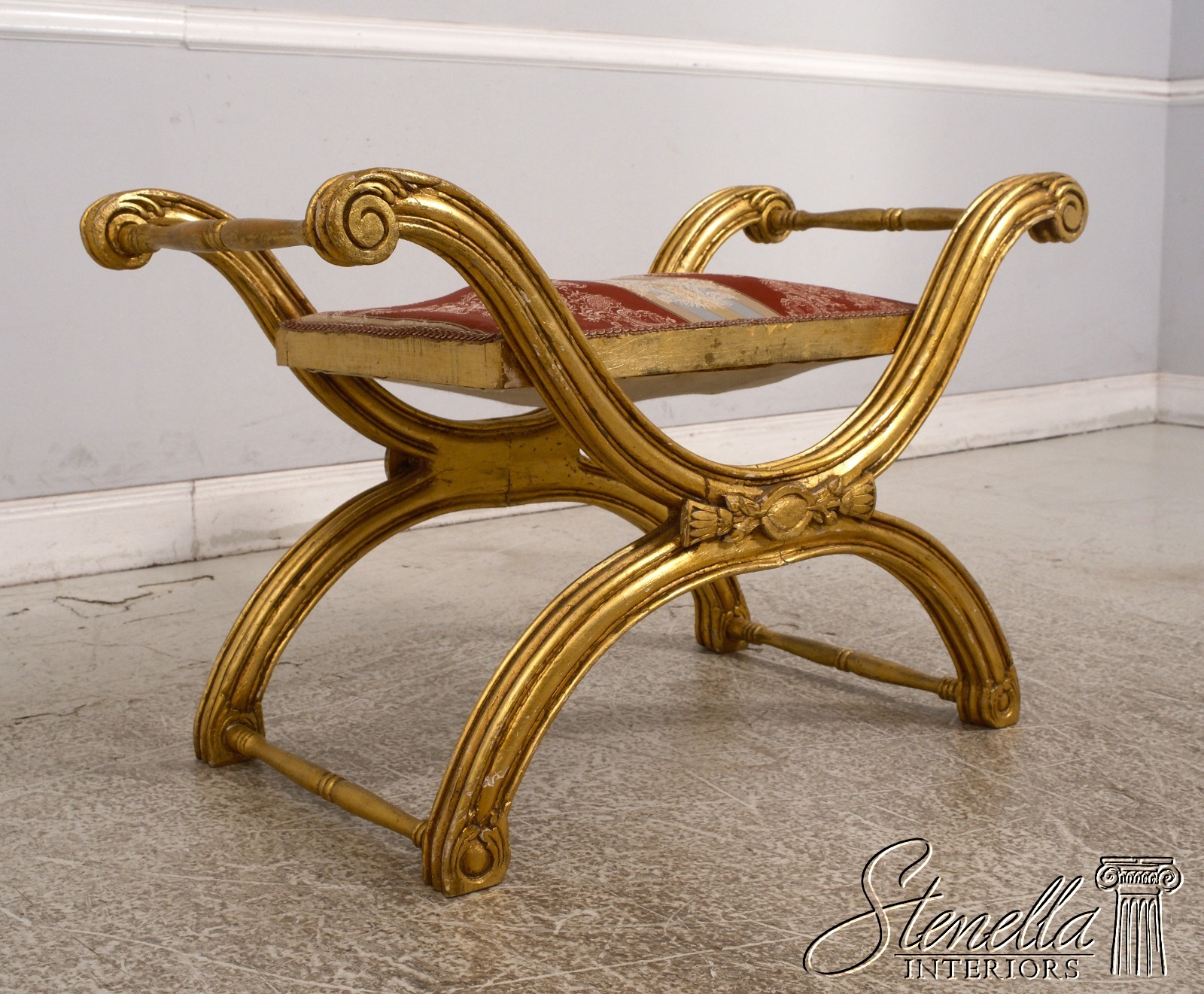 F68285: Vintage Gold X Design Upholstered Seat Bench