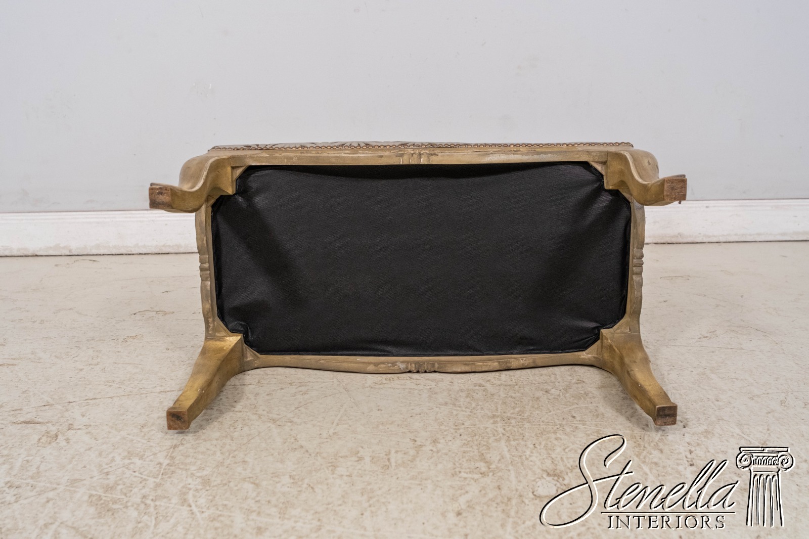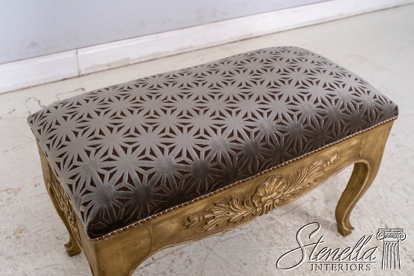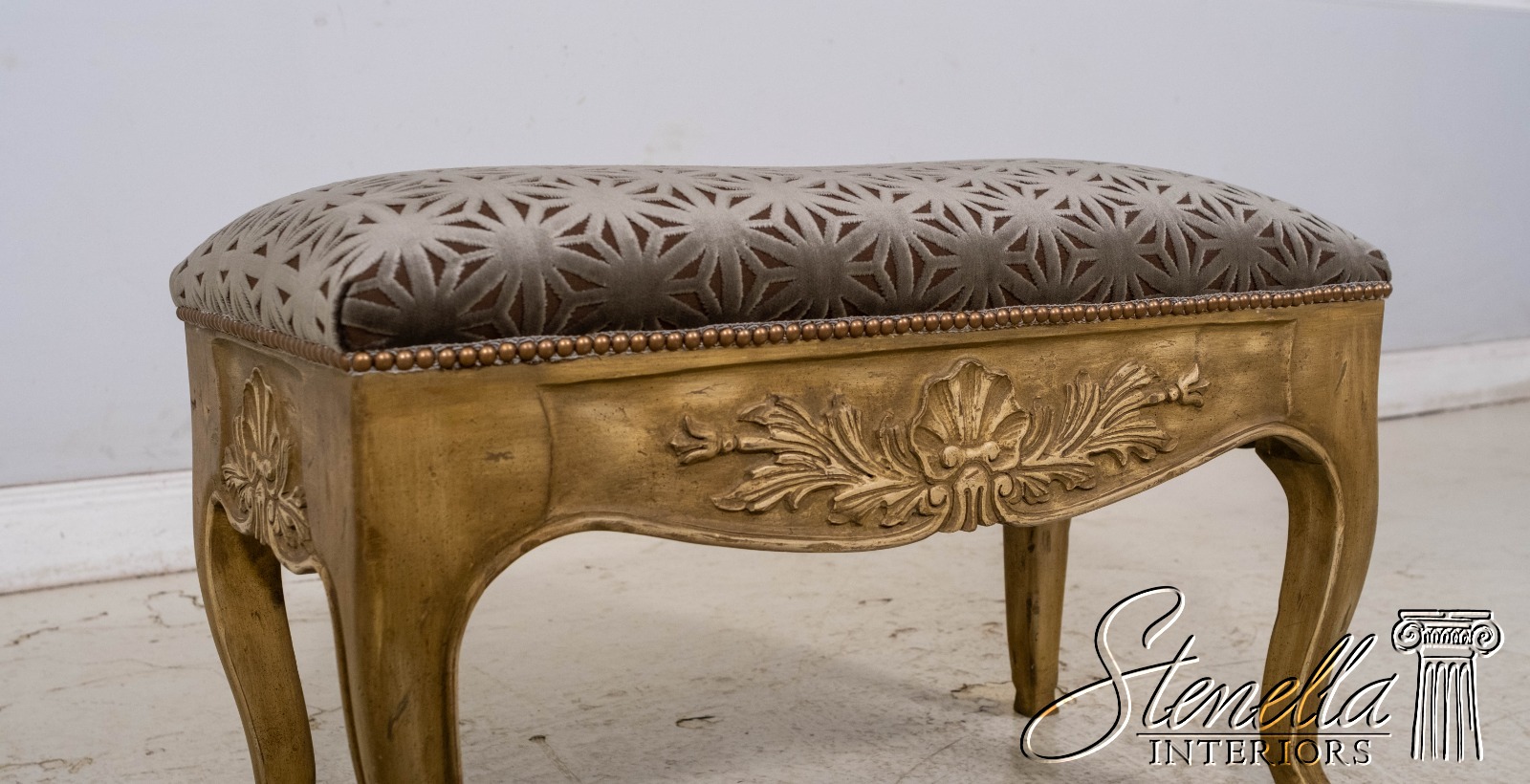 L69668: Vintage French Shell Carved Upholstered Bench w. New Upholstery