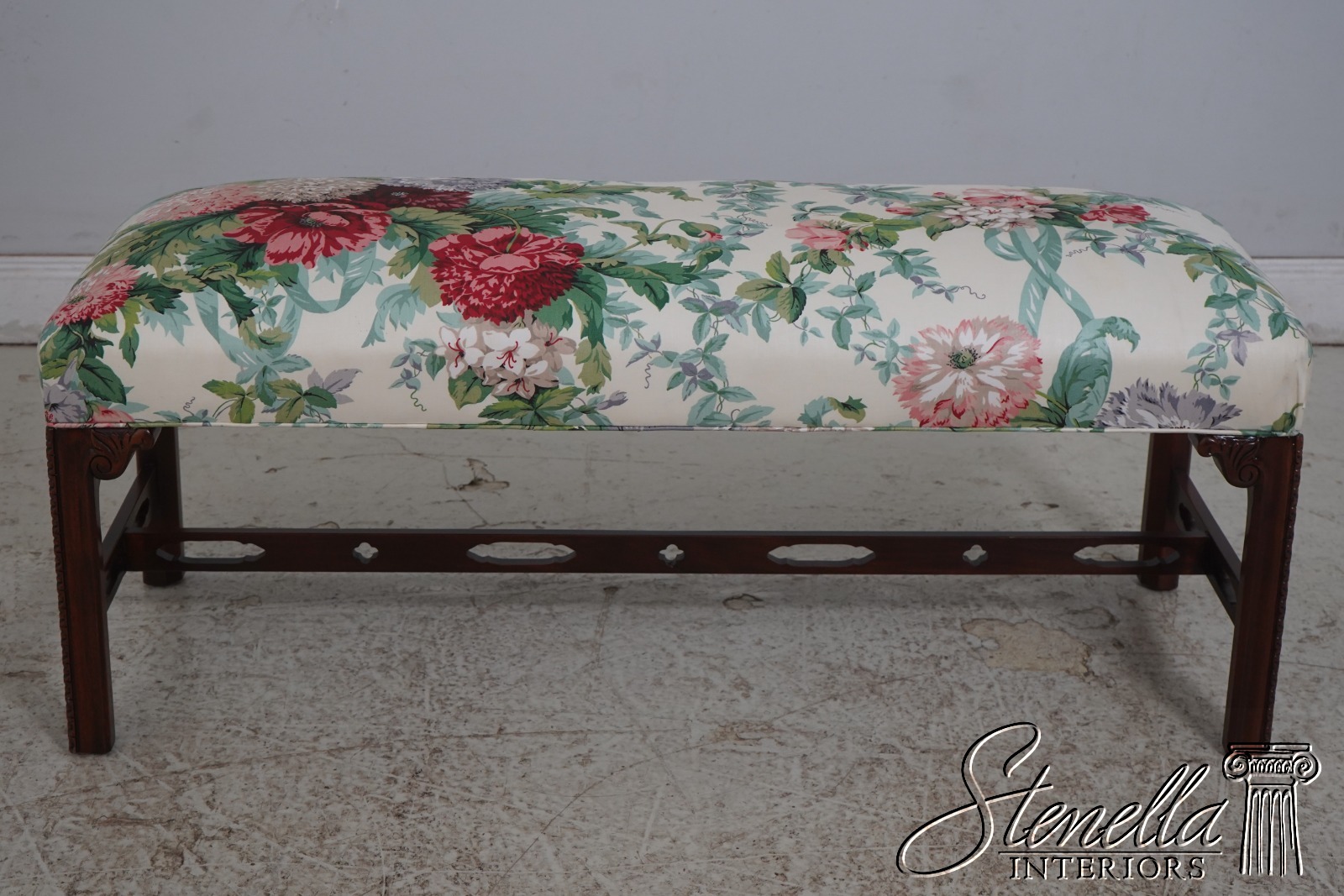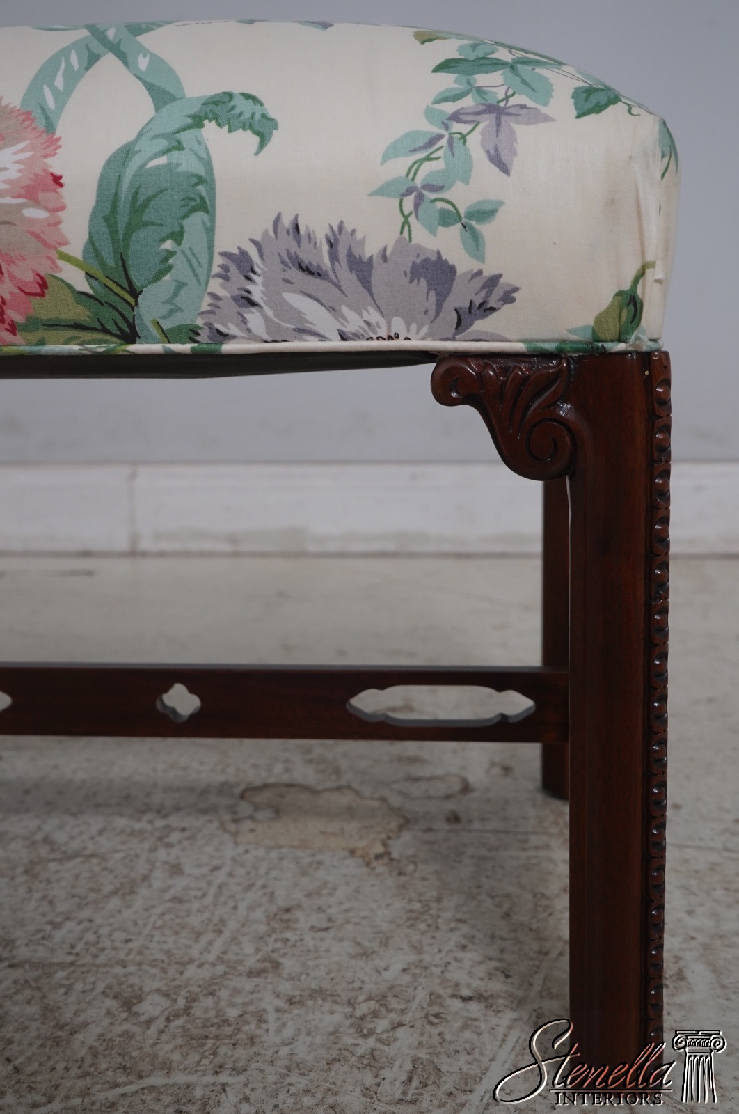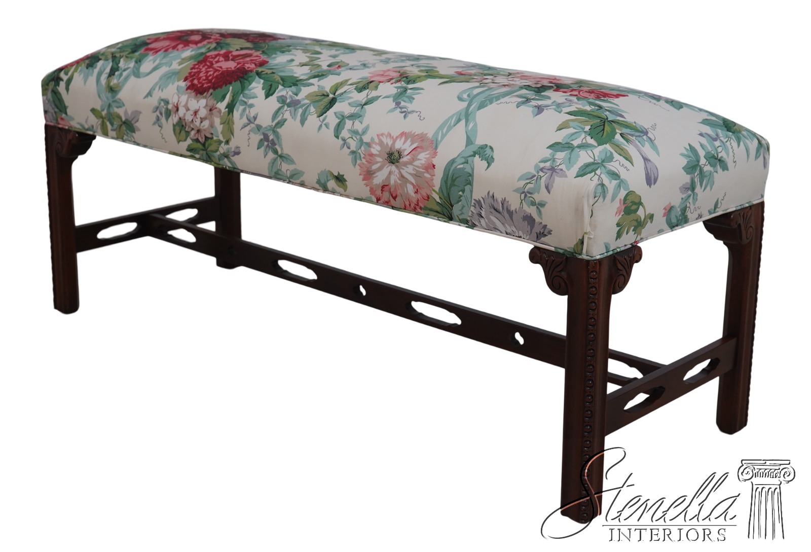 L69969: SOUTHWOOD Chippendale Mahogany Upholstered Window Bench