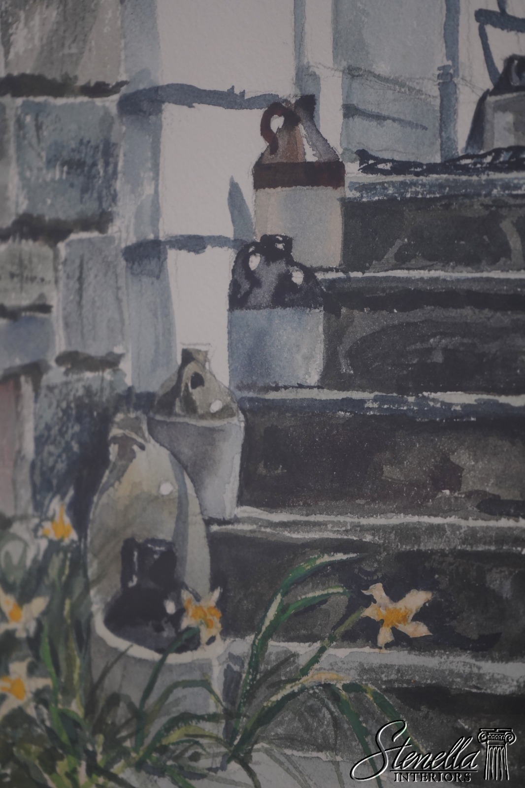 F44509EC: Artist Signed Professionally Framed Steps Watercolor