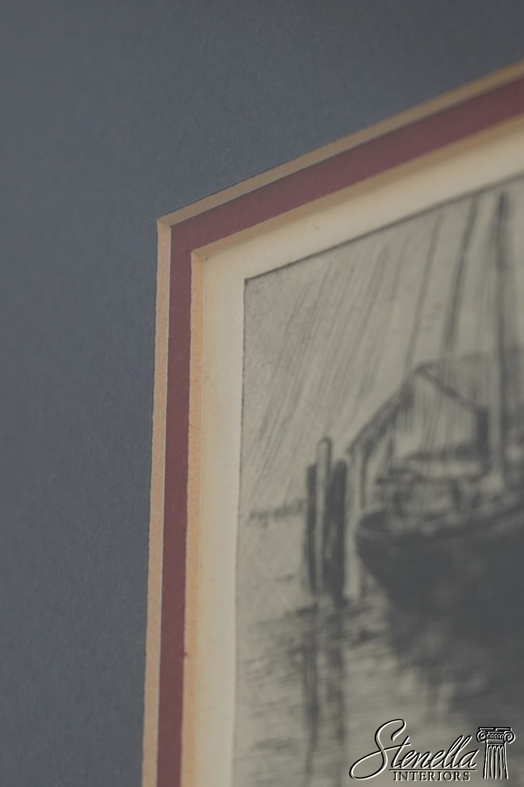 F71647: Vintage Ship Boat Dock Black & White Pencil Etching (Signed)