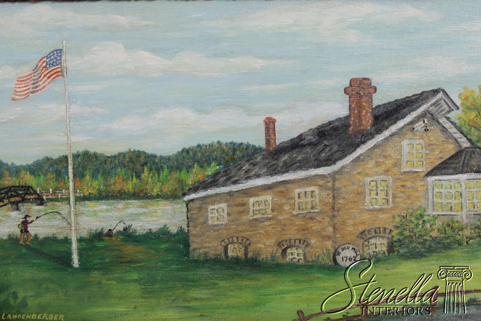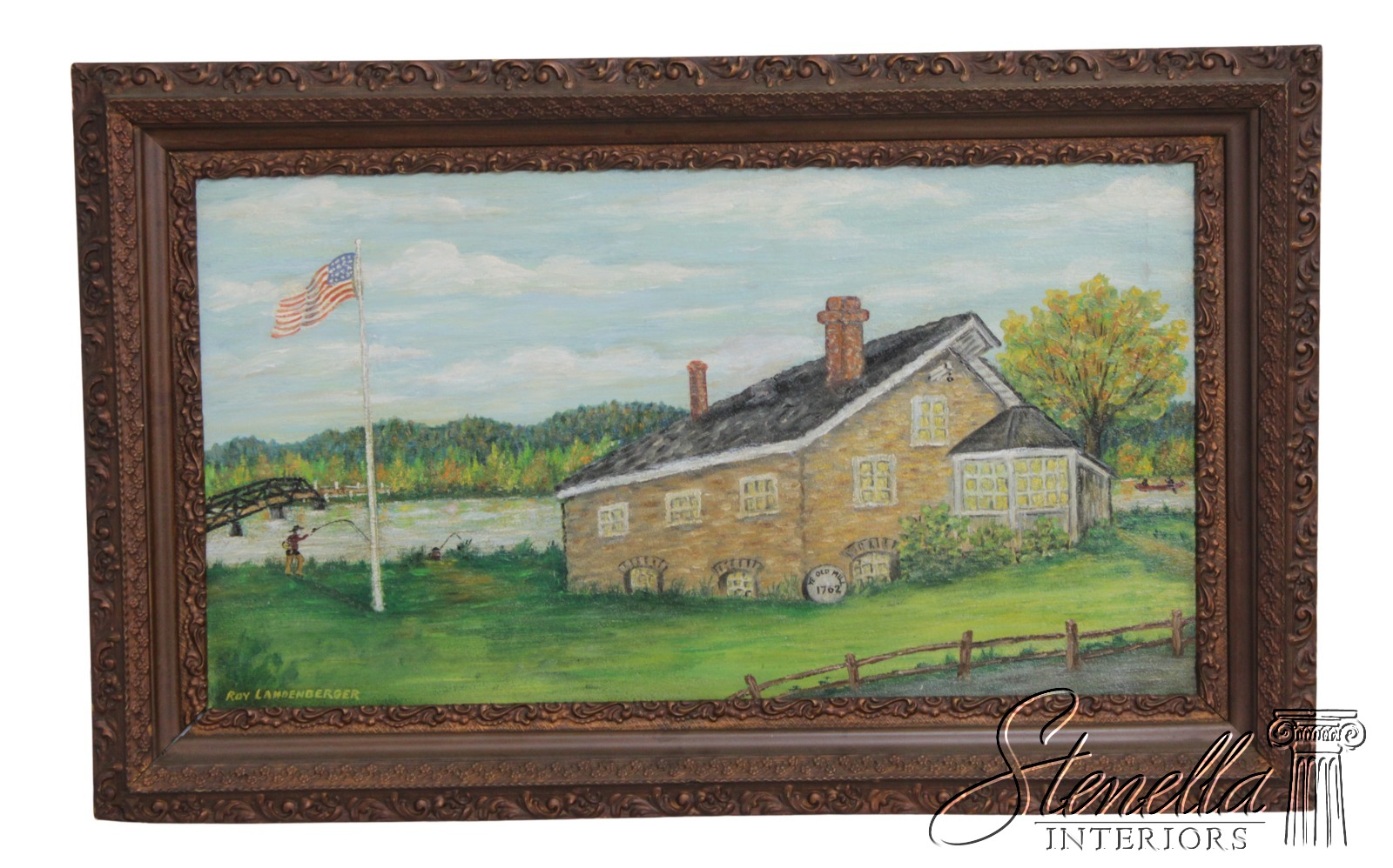 F72461: ROY LANDENBERGER Framed Oil On Canvas Painting Of Old Stone Mill - Signed