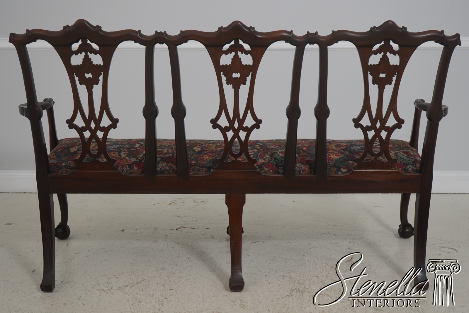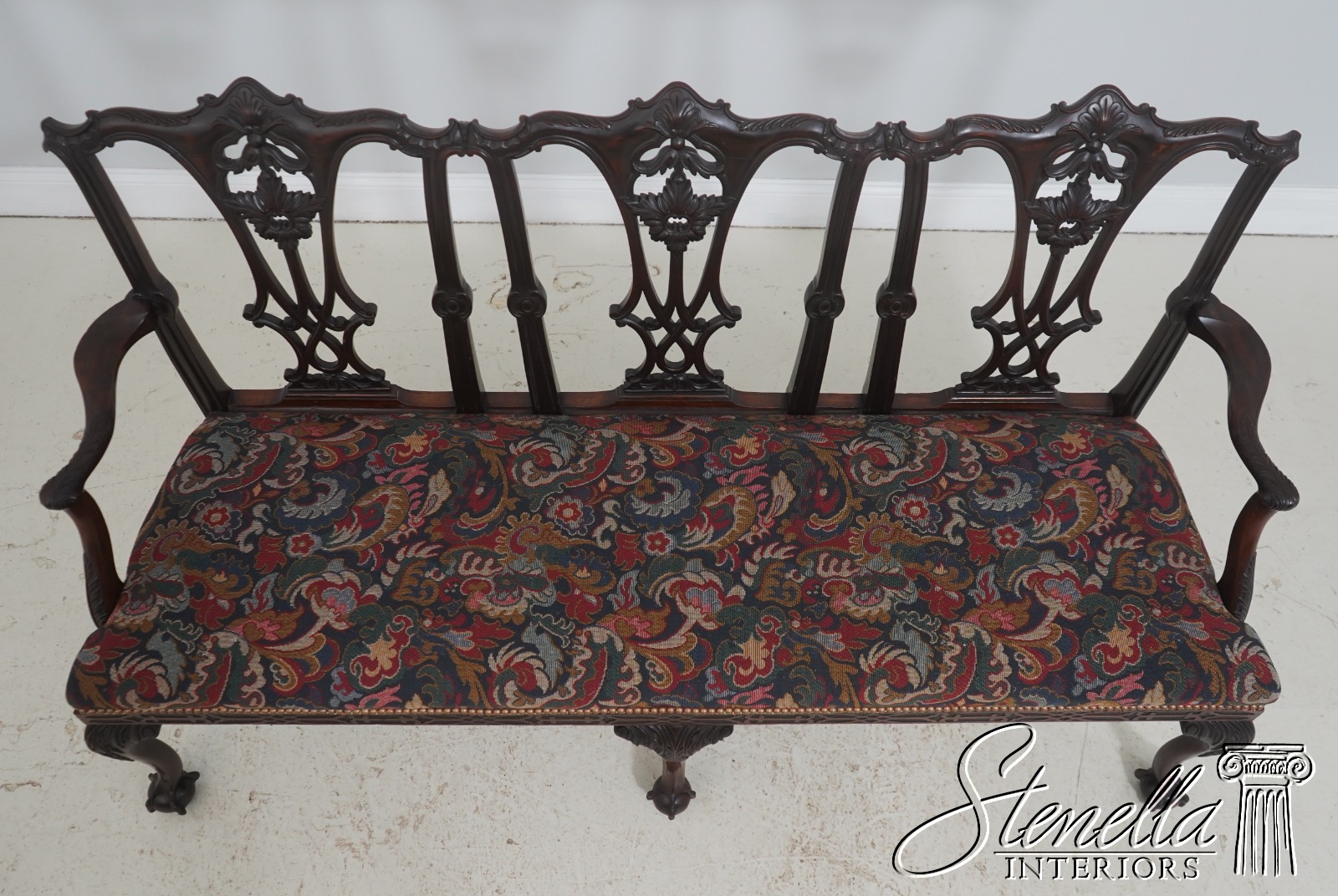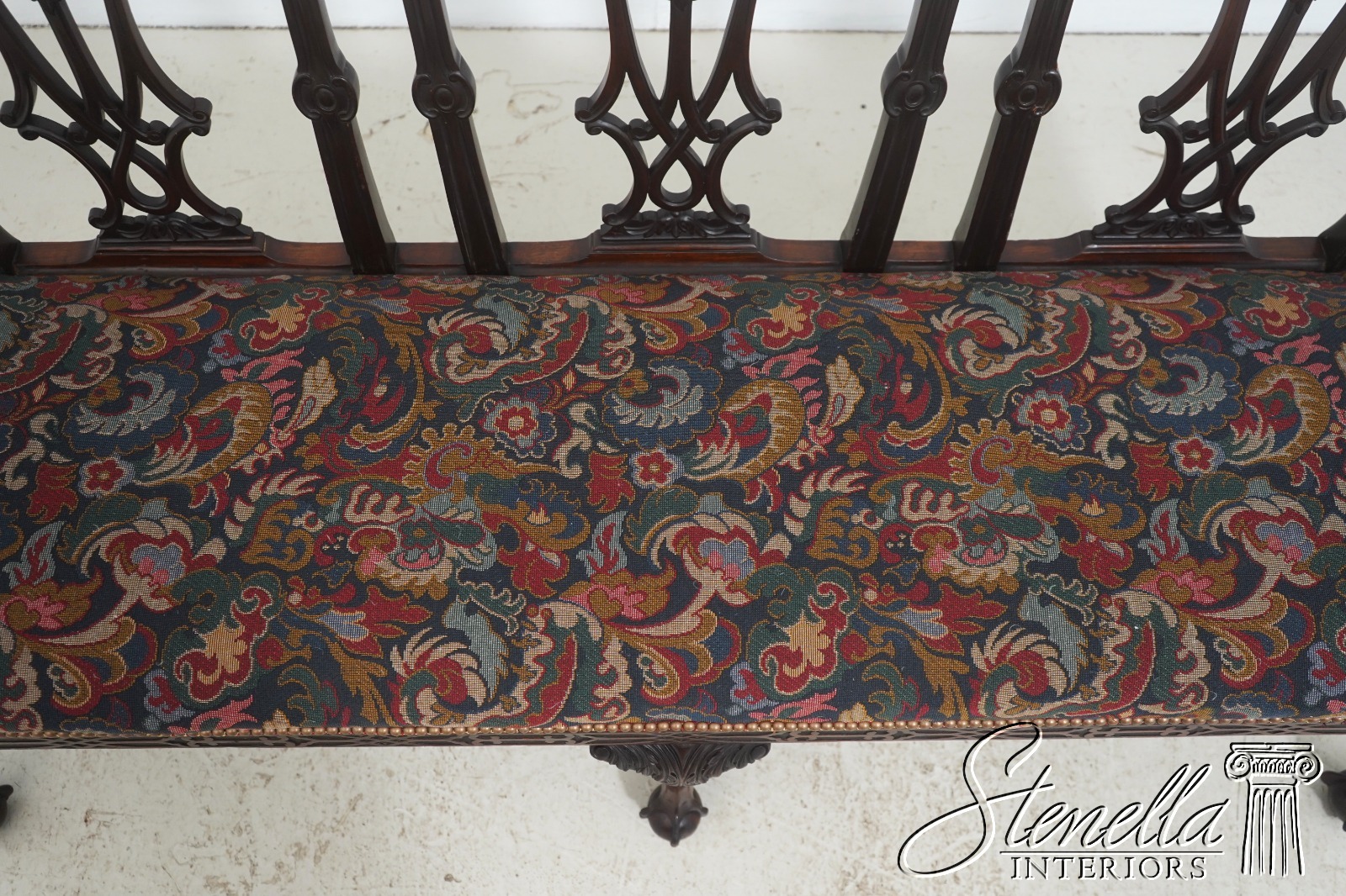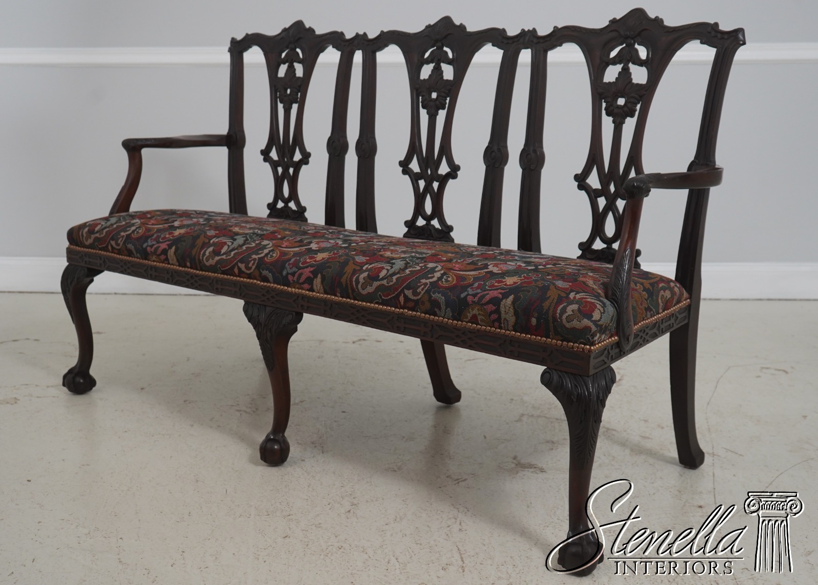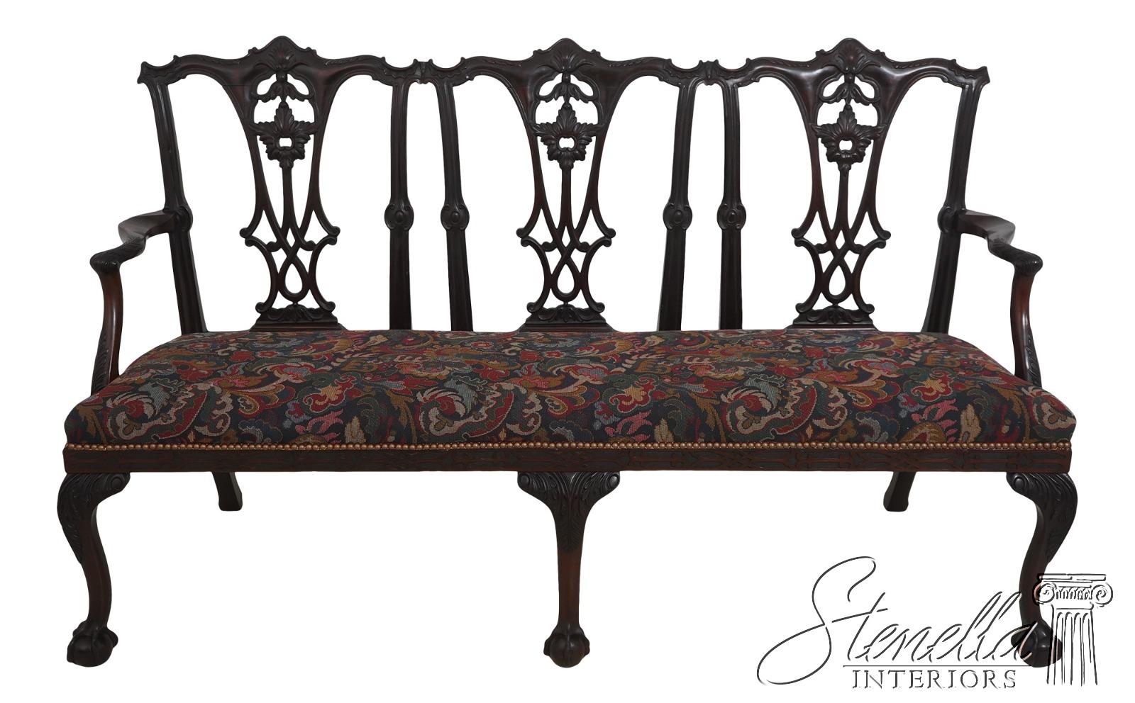 71158: Antique 19th Century Chippendale Carved Mahogany Triple-Back Settee