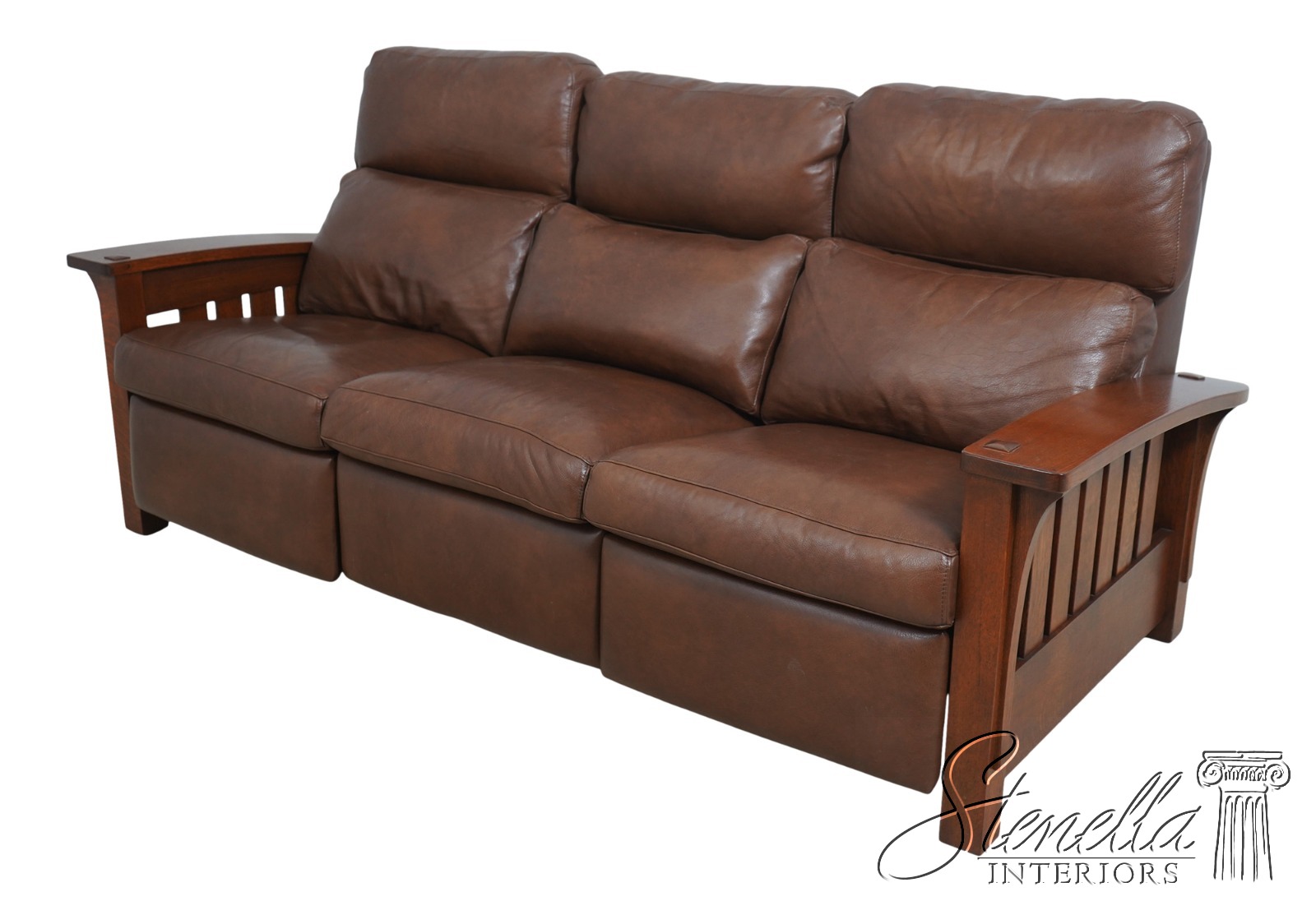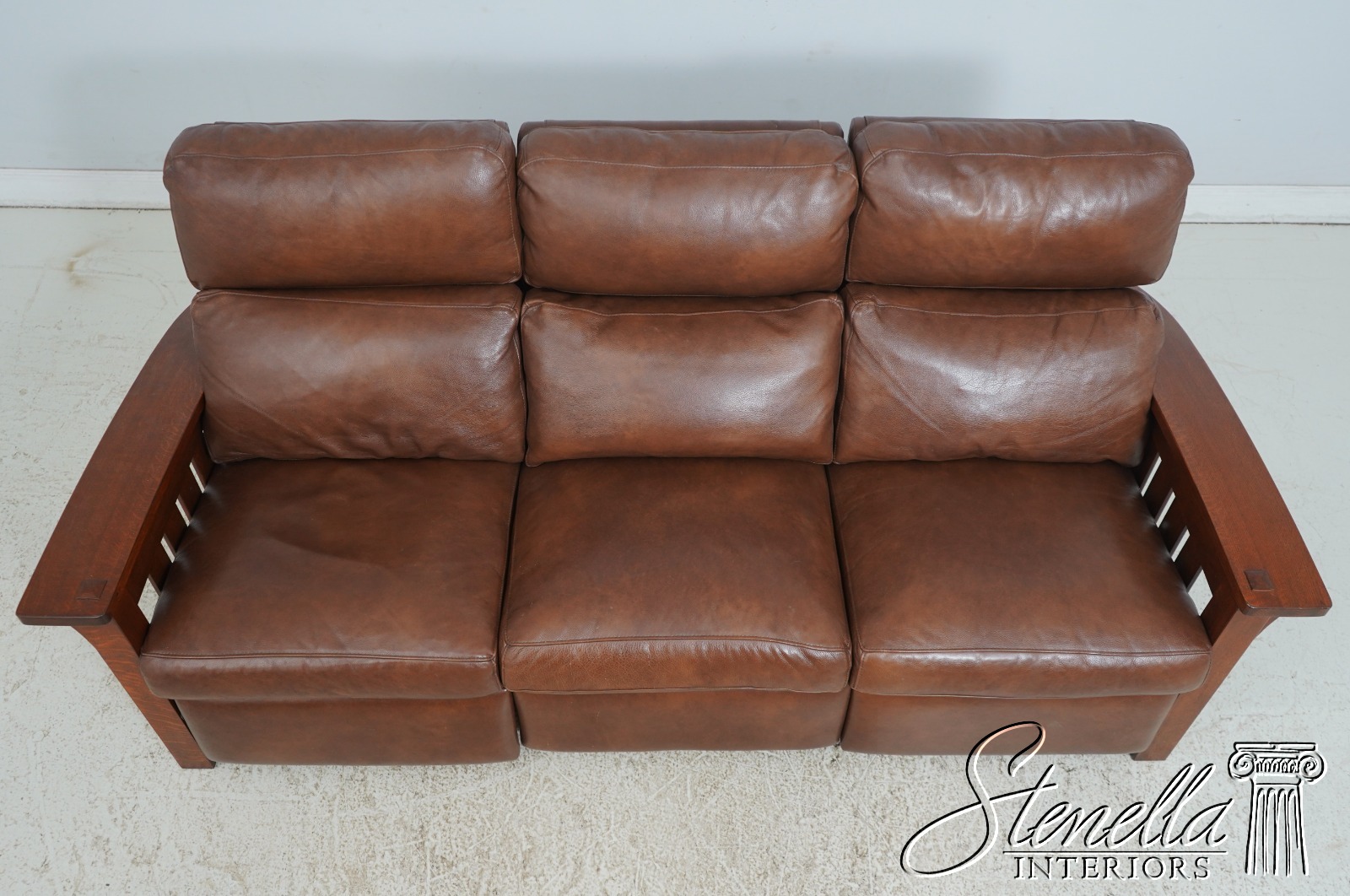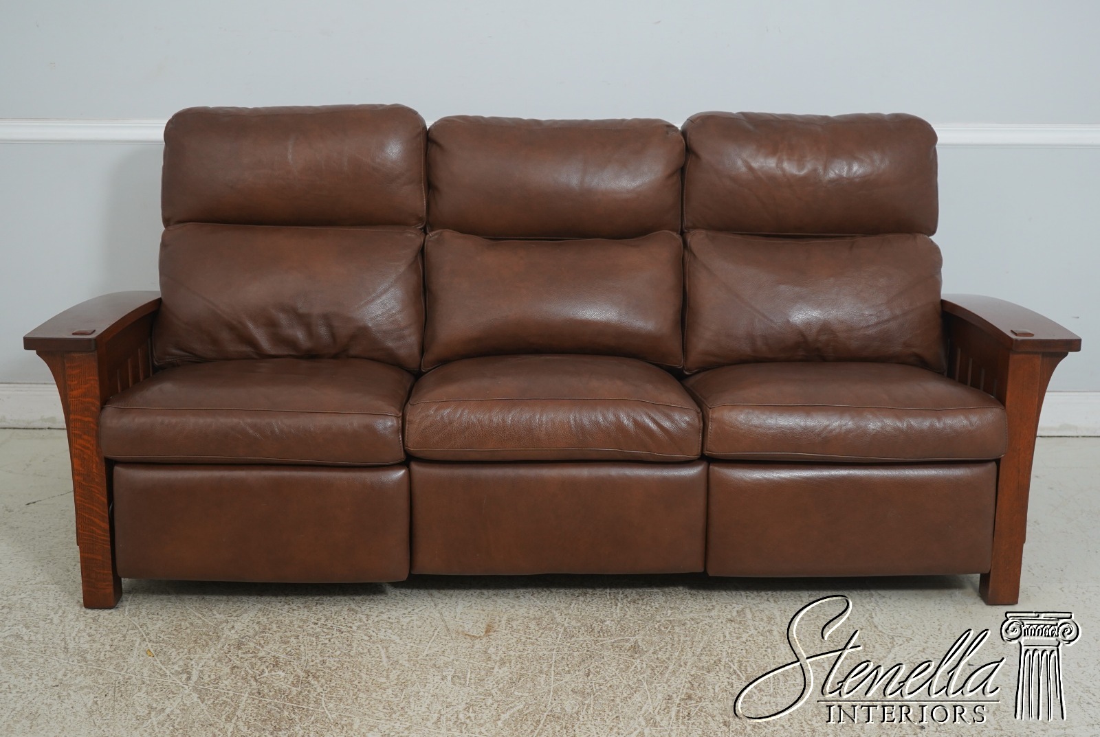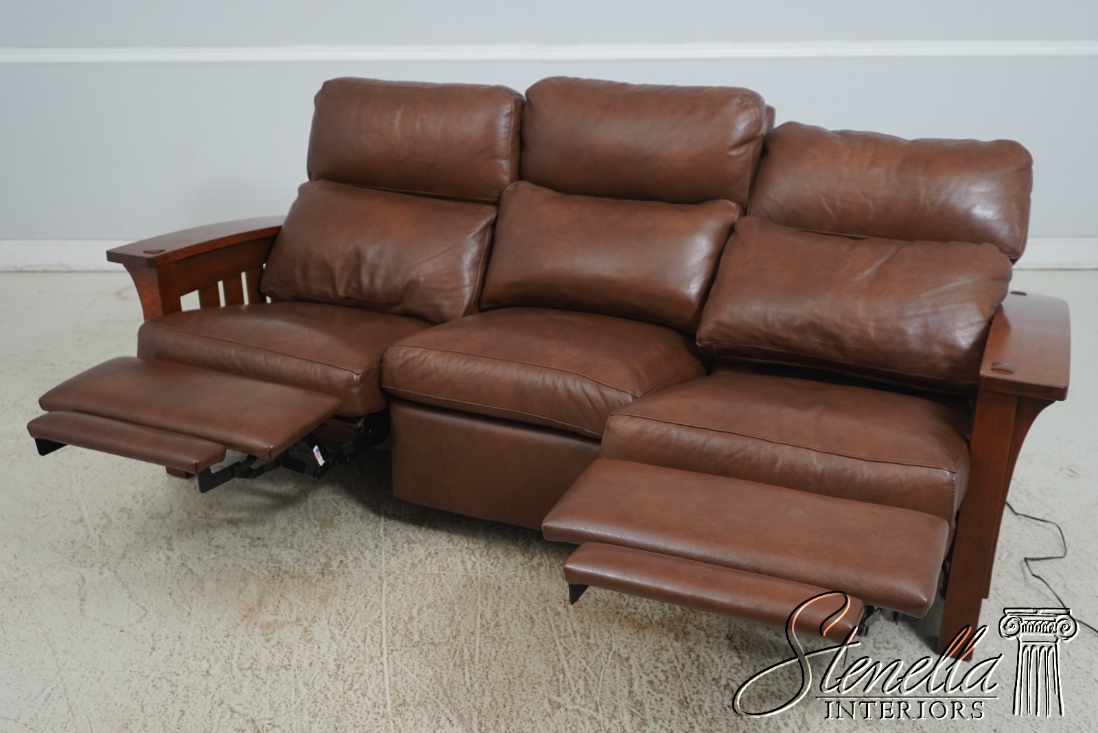 67937: STICKLEY Mission Oak Power Reclining Leather Sofa