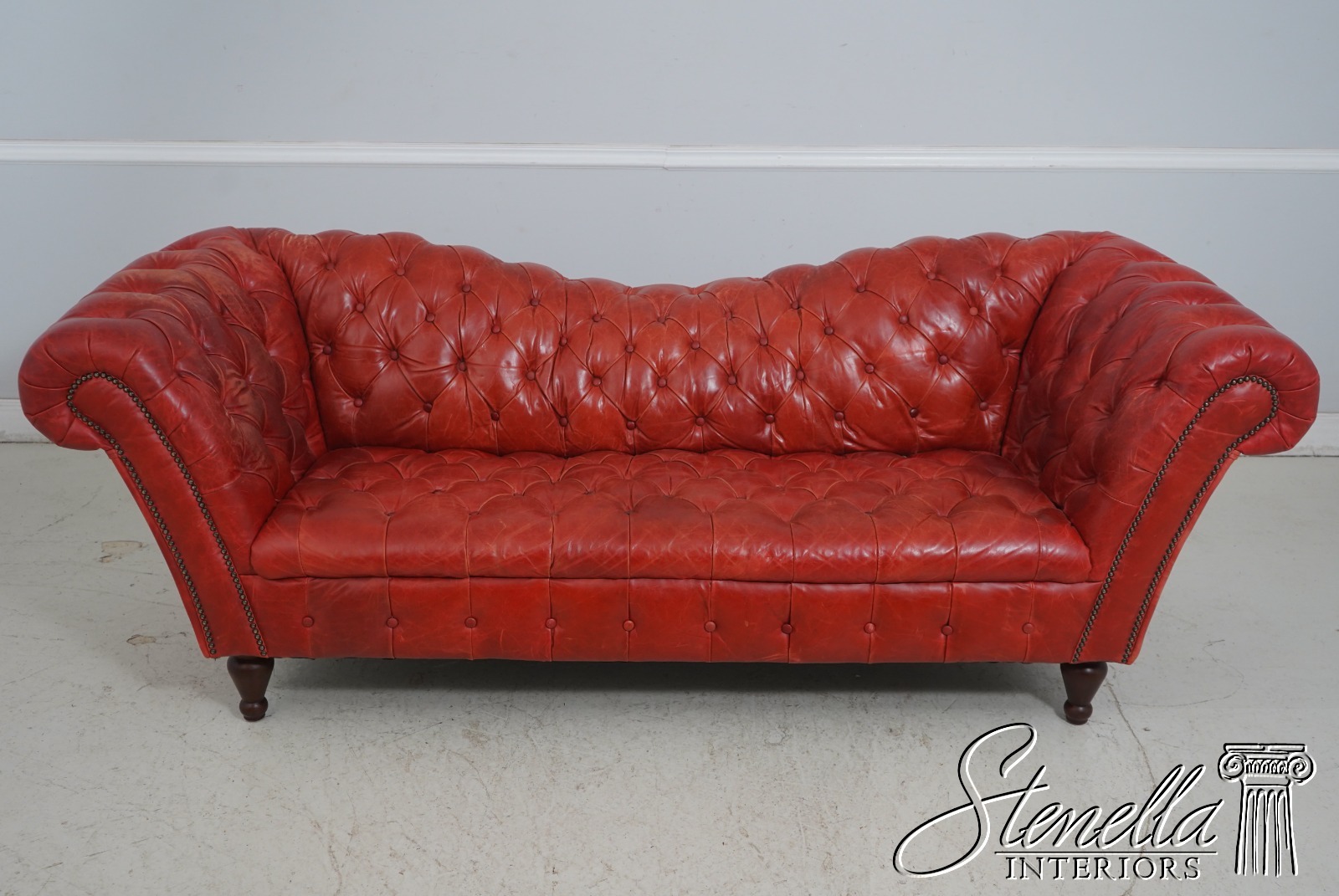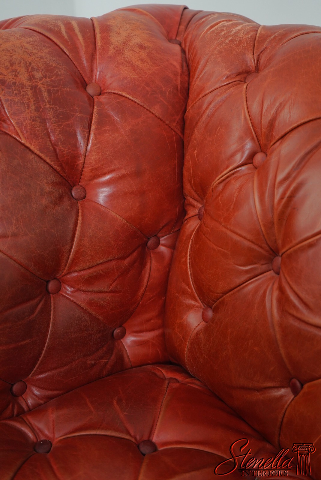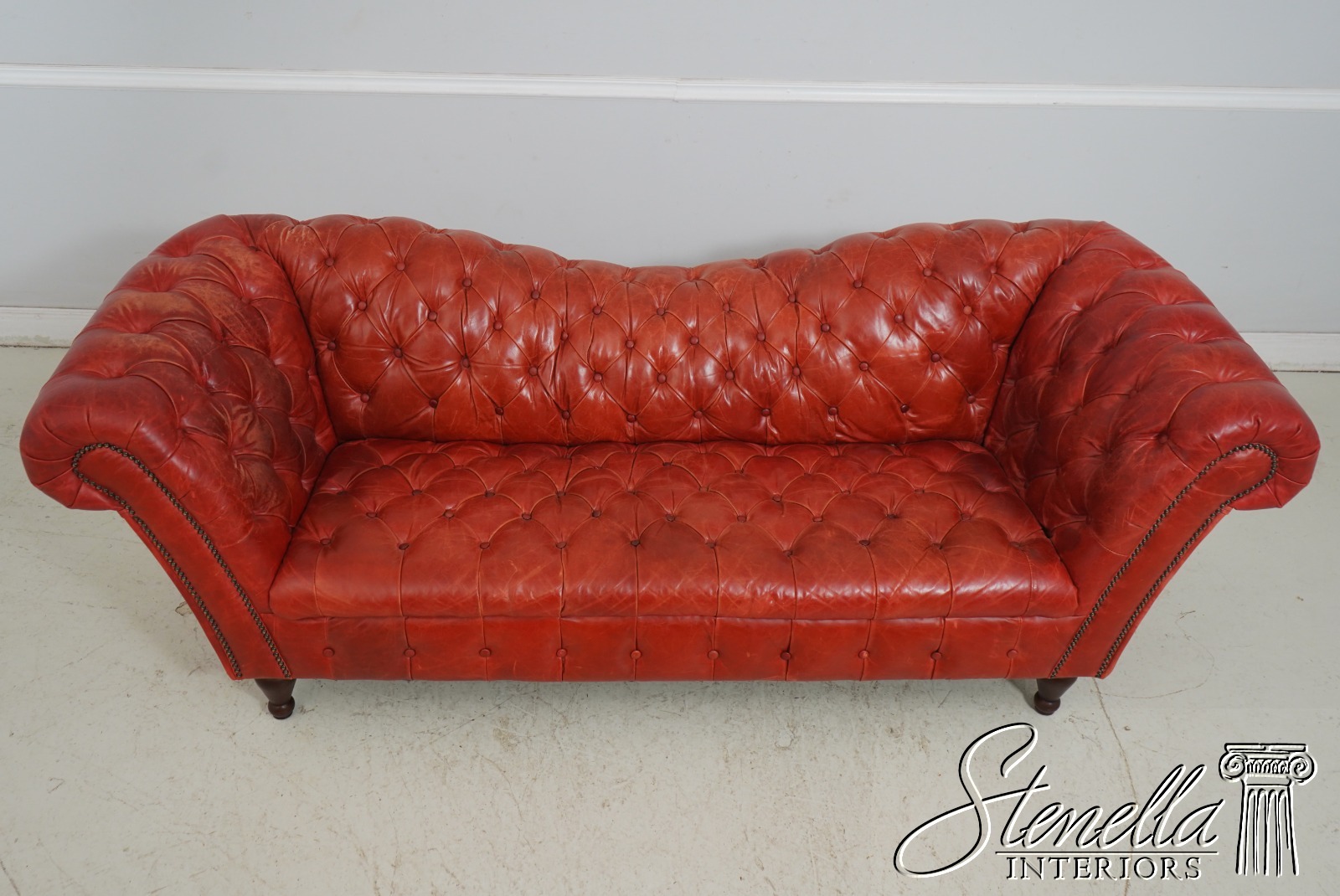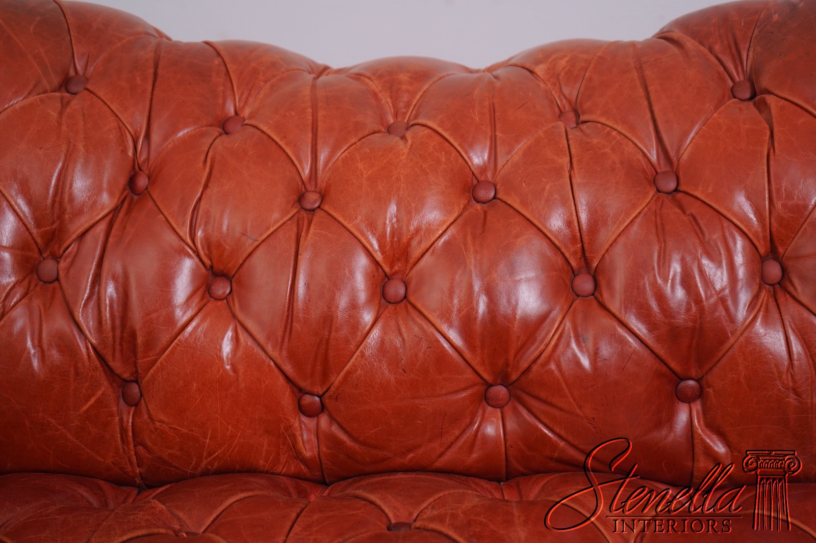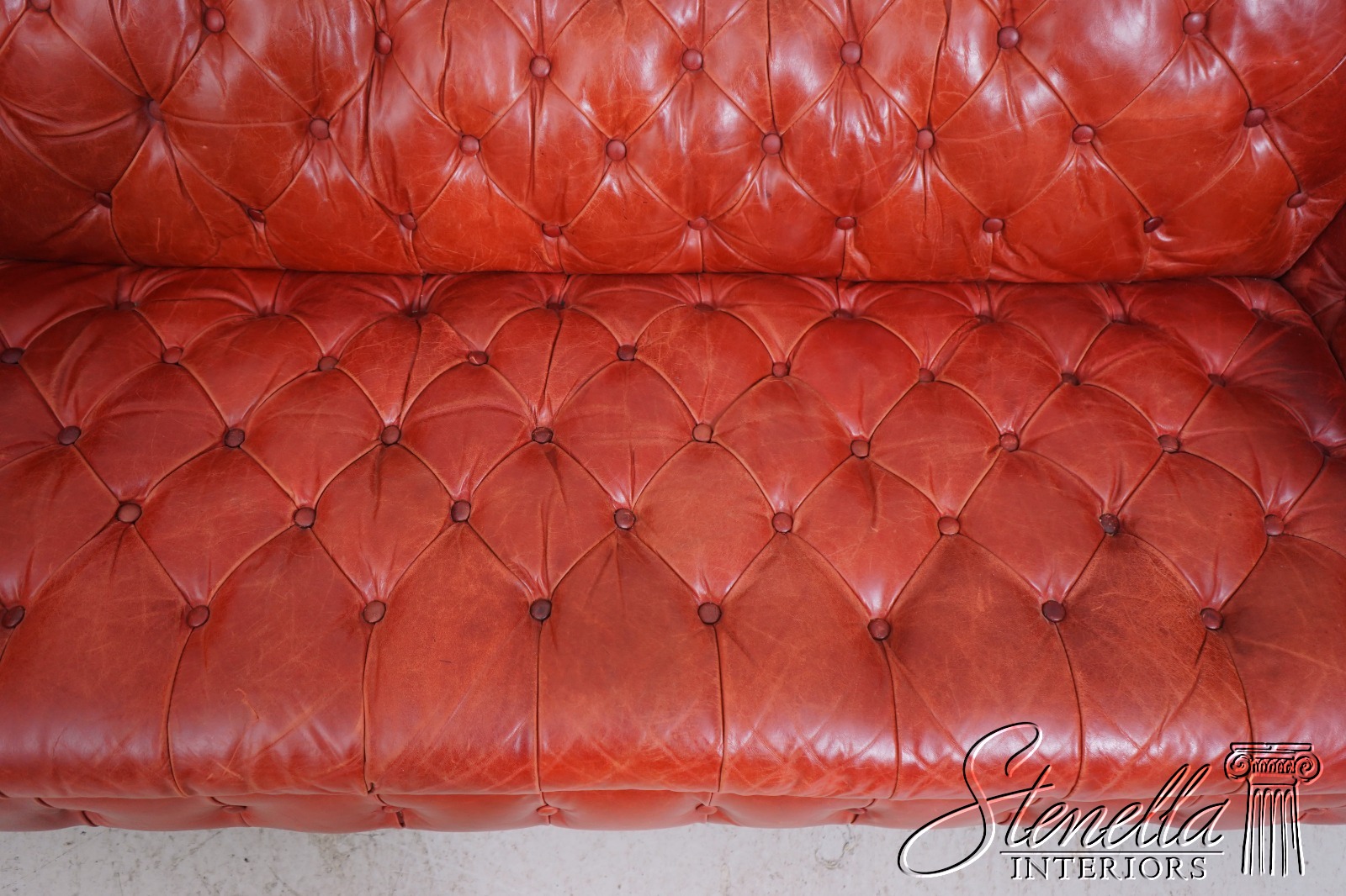 69283: Vintage Chesterfield 3 Seat Leather Tufted Sofa
