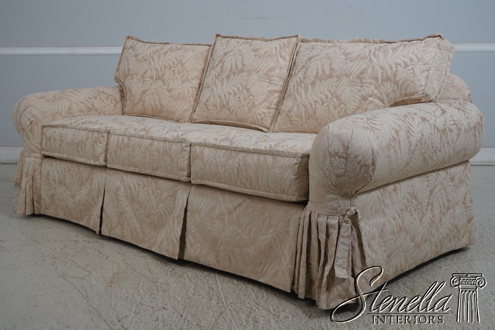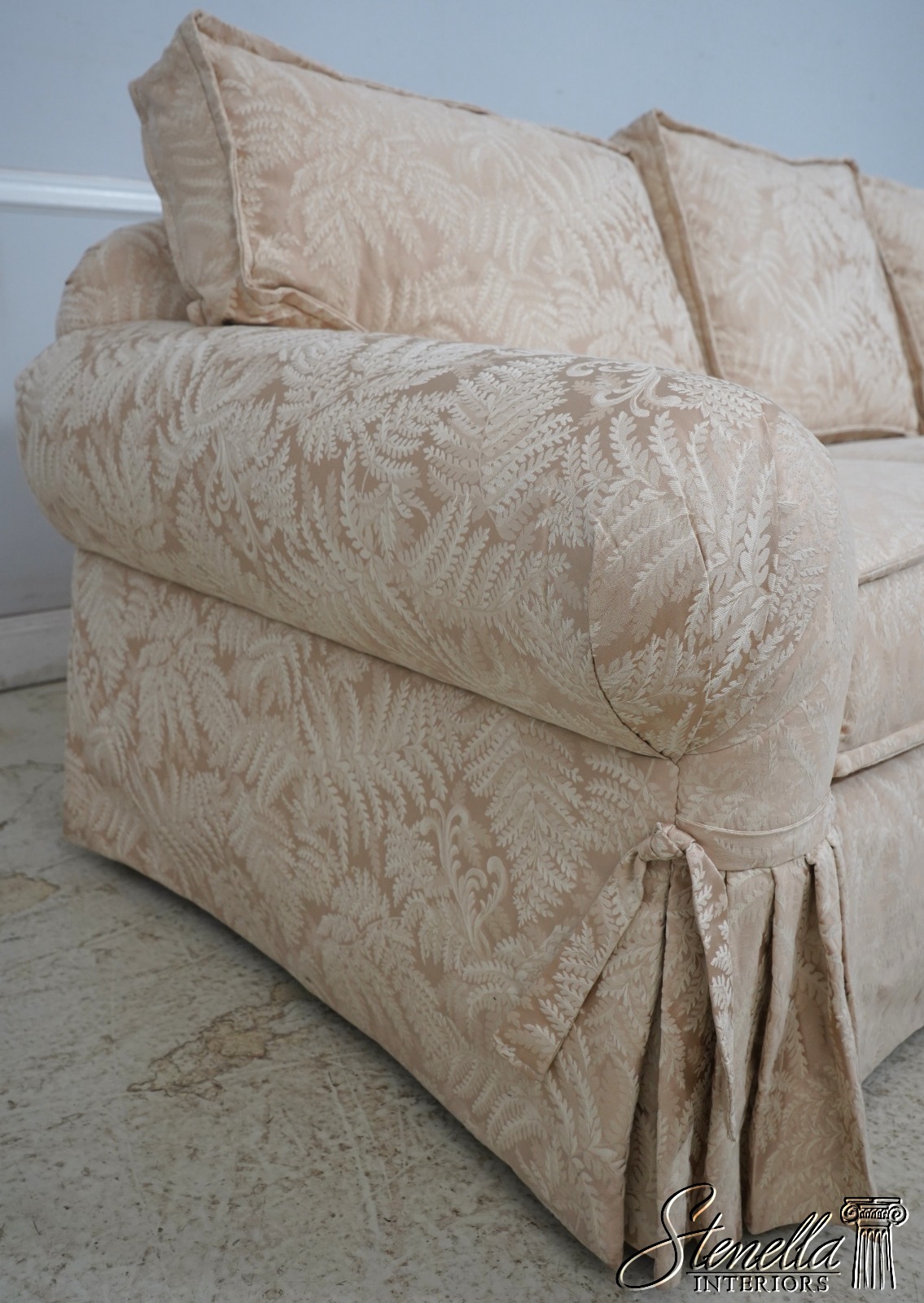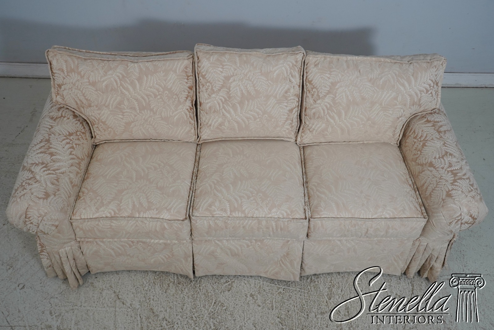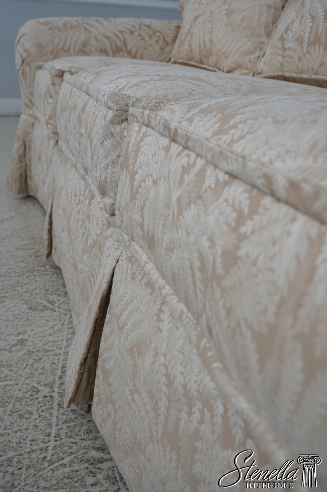 70452: ETHAN ALLEN Off White Damask Upholstered Rolled Arm Sofa 1 Of 2