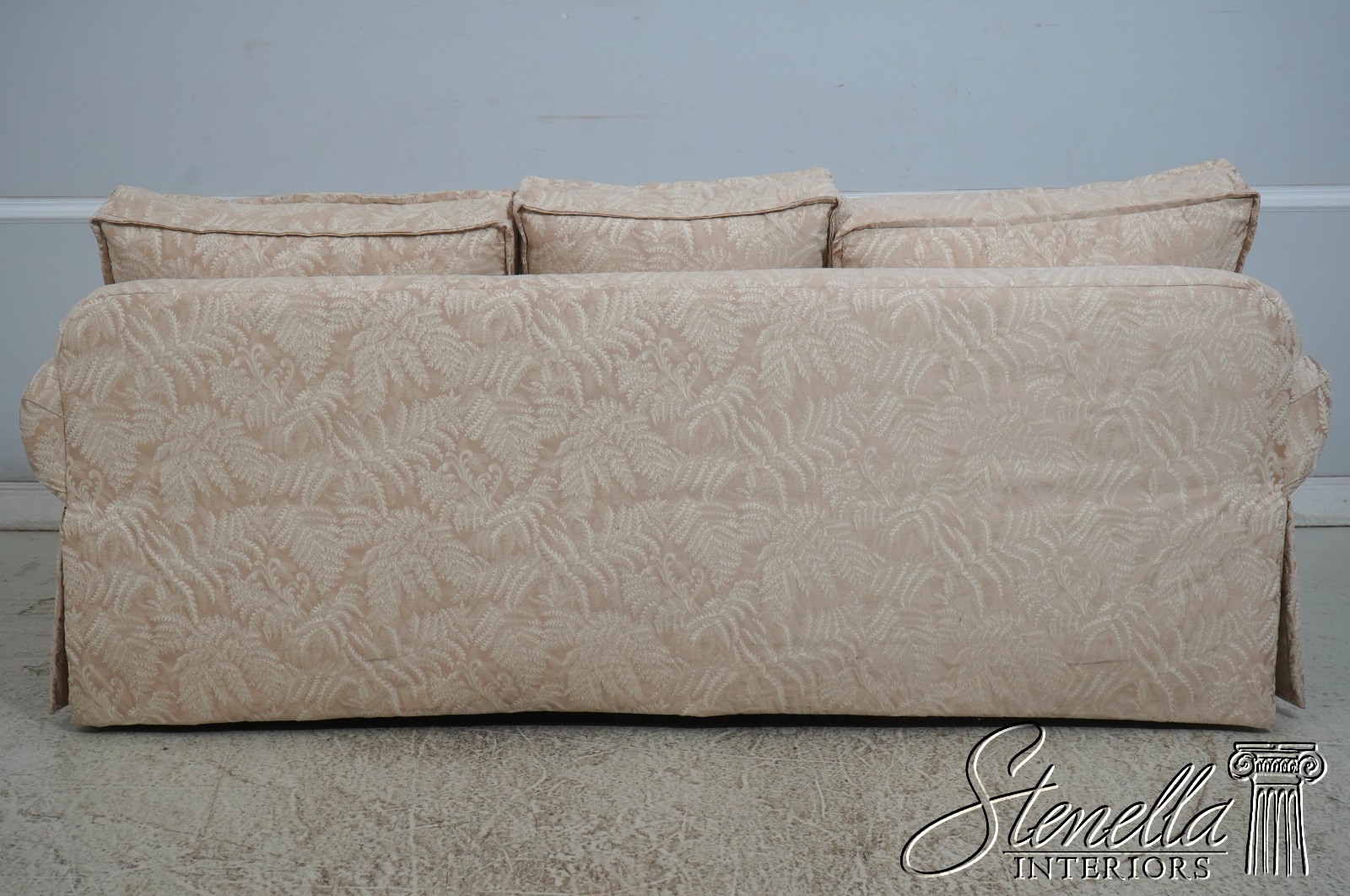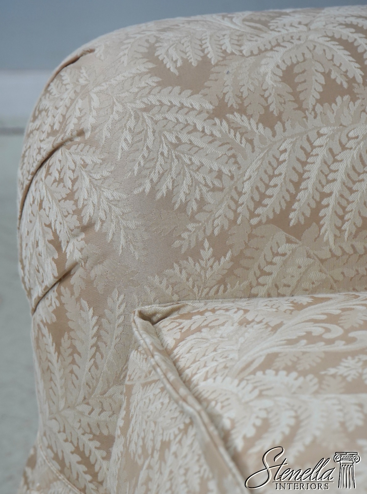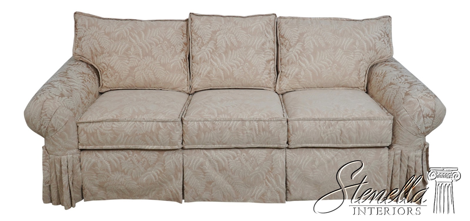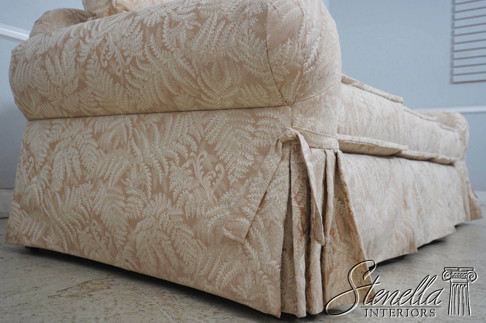 70452: ETHAN ALLEN Off White Damask Upholstered Rolled Arm Sofa 1 Of 2