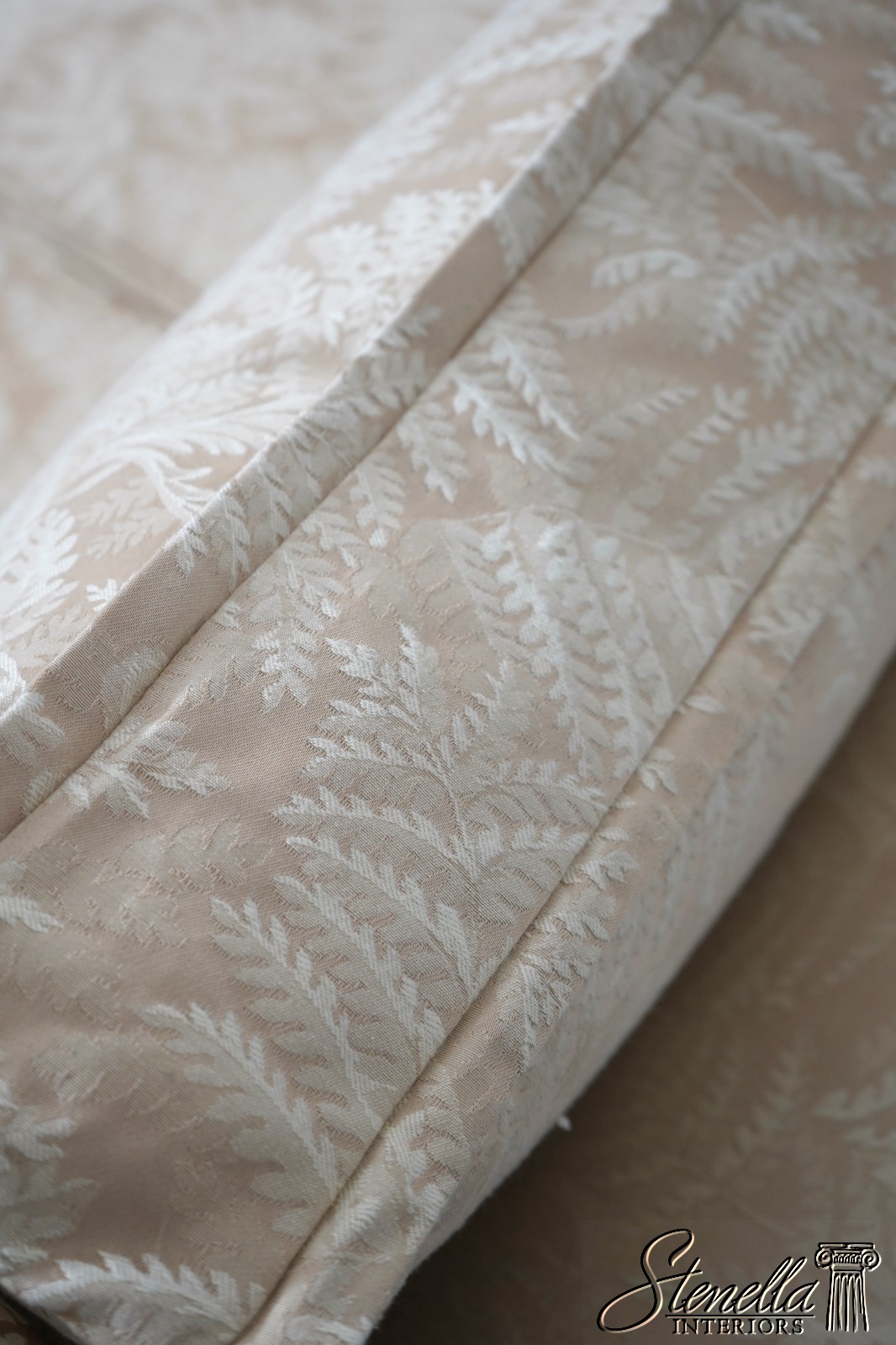Details: High Quality Construction Gorgeous Damask Upholstery Large Impressive Sofa Super Clean Well Cared For Upholstery Straight Back From Model Home & Really Never Used Floor Length Skirt Overstuffed Cushions See Other Offerings For Matching Sofa Offered @ Fraction Original Retail Cost