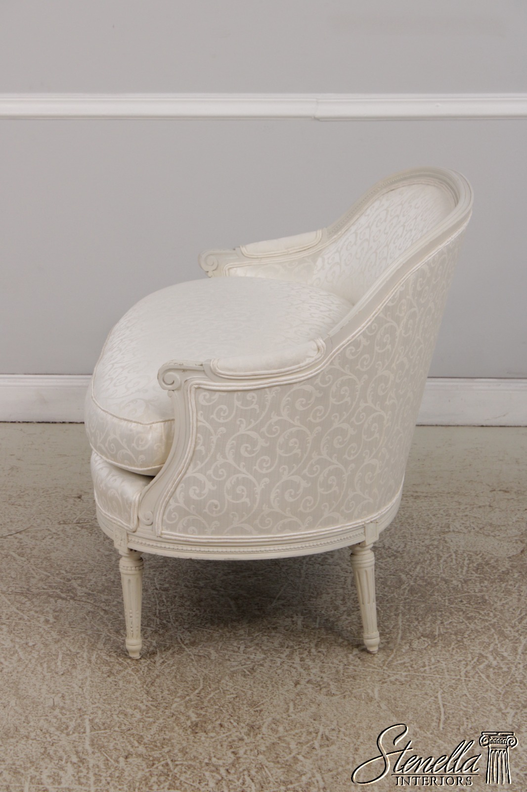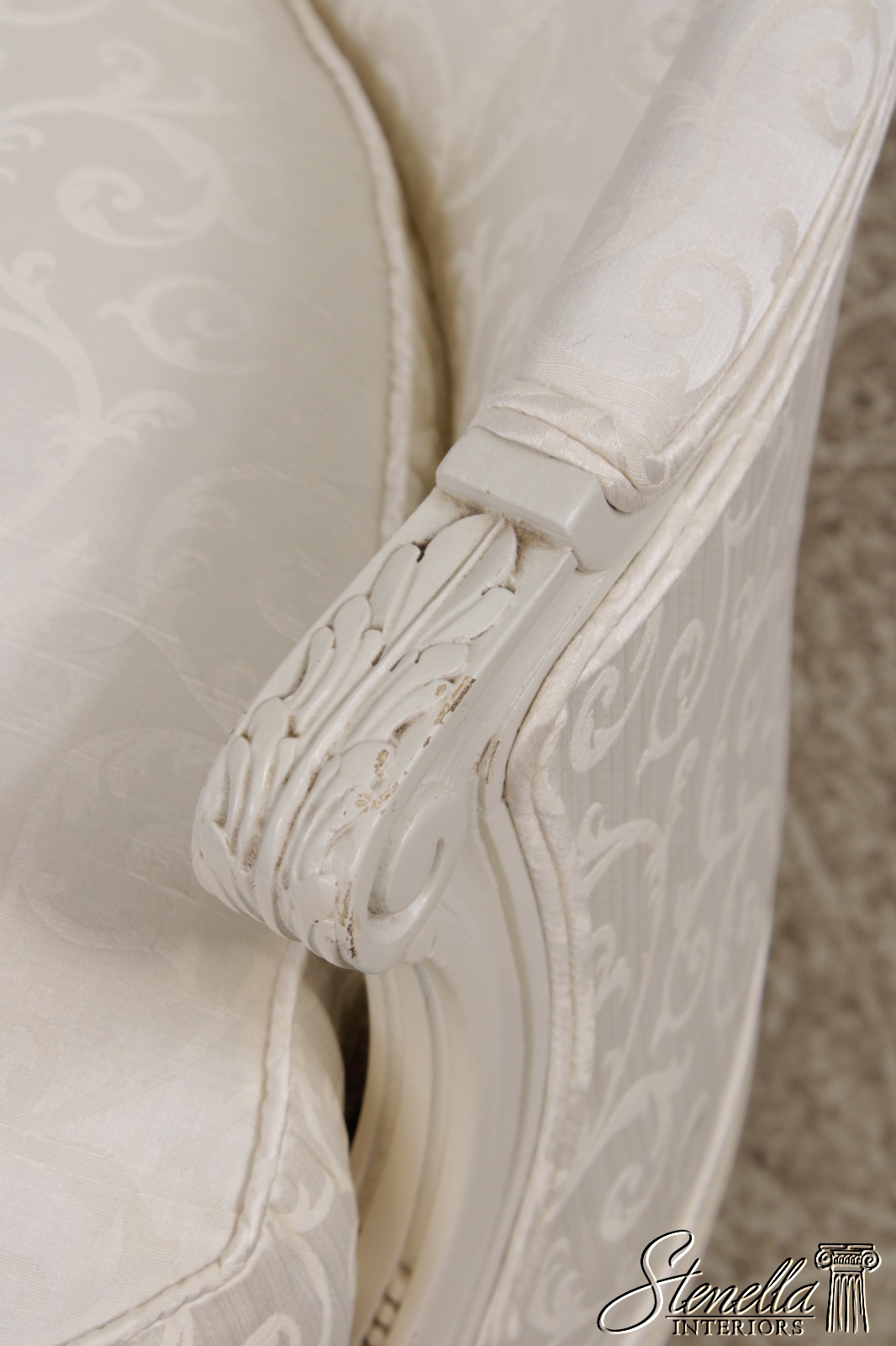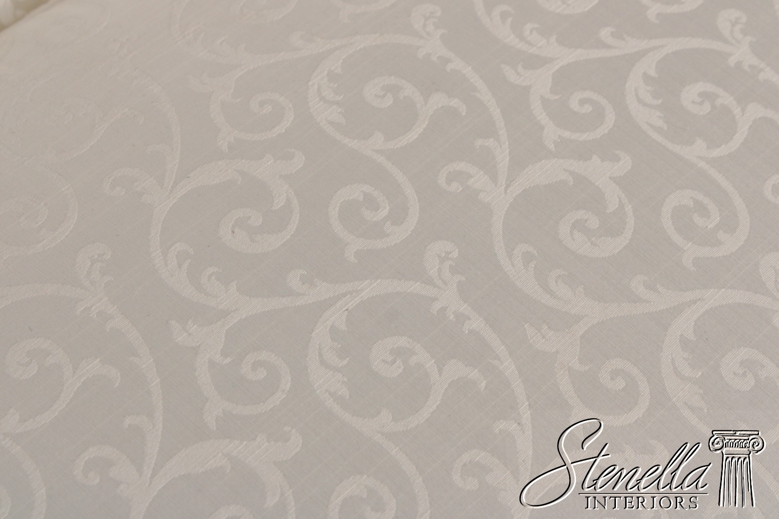 Details: Down Seat Cushion Fine Carved Details High Quality Construction French Style Clean Bright White Damask Upholstered Seat Cushion See Other Offerings For Matching Chairs Un-Marked As To Manufacture Offered @ Fraction Original Retail Cost