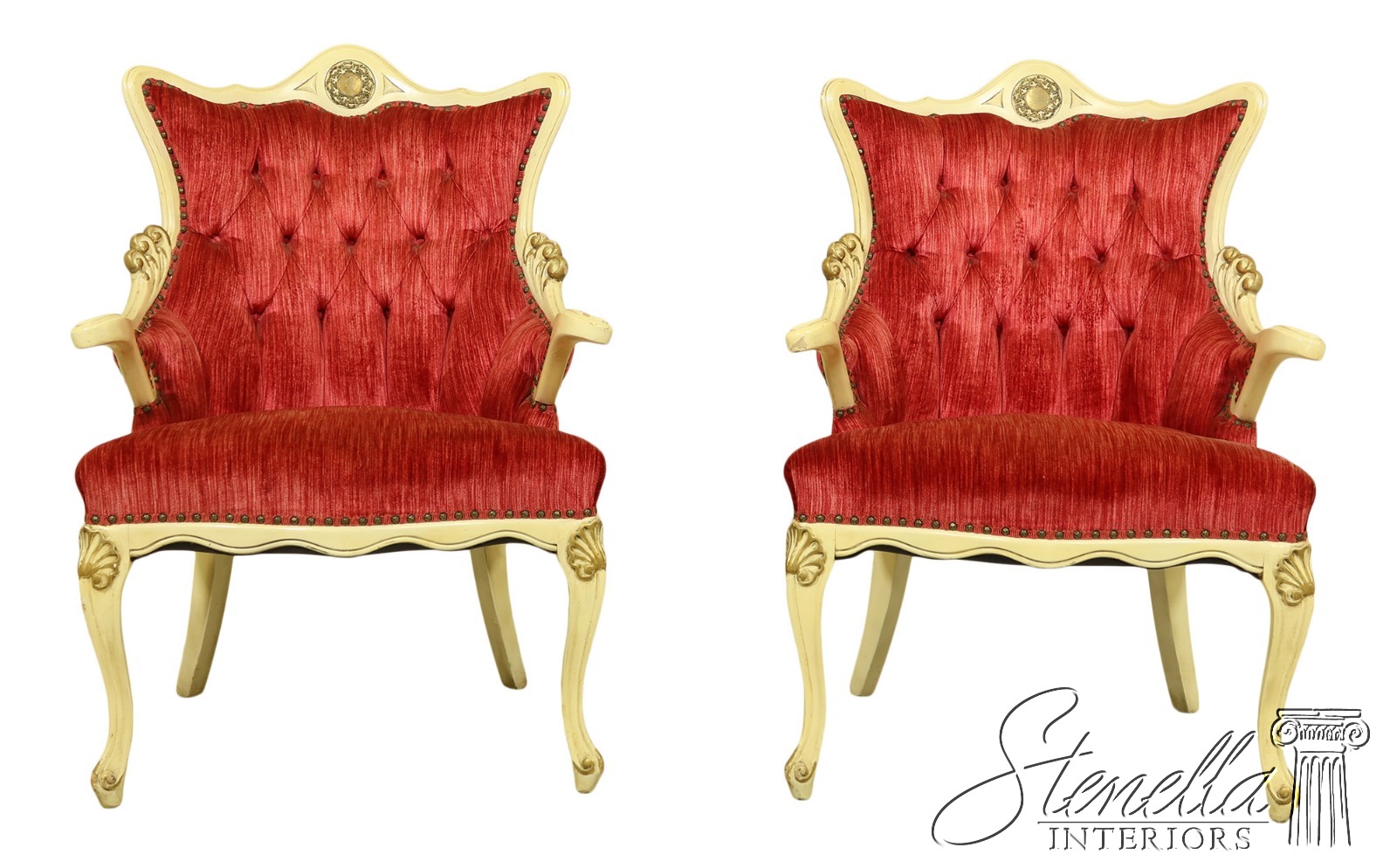 F51506EC: Pair Vintage Paint Decorated French Style Fireside Chairs