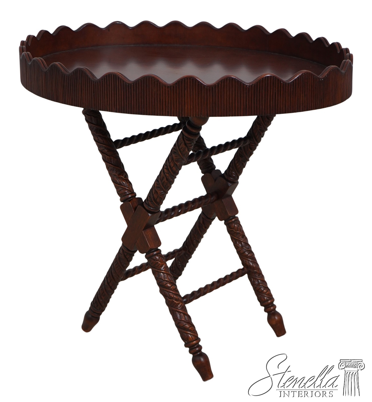 67028: Caribbean Style Carved Mahogany Tray Top Serving Table