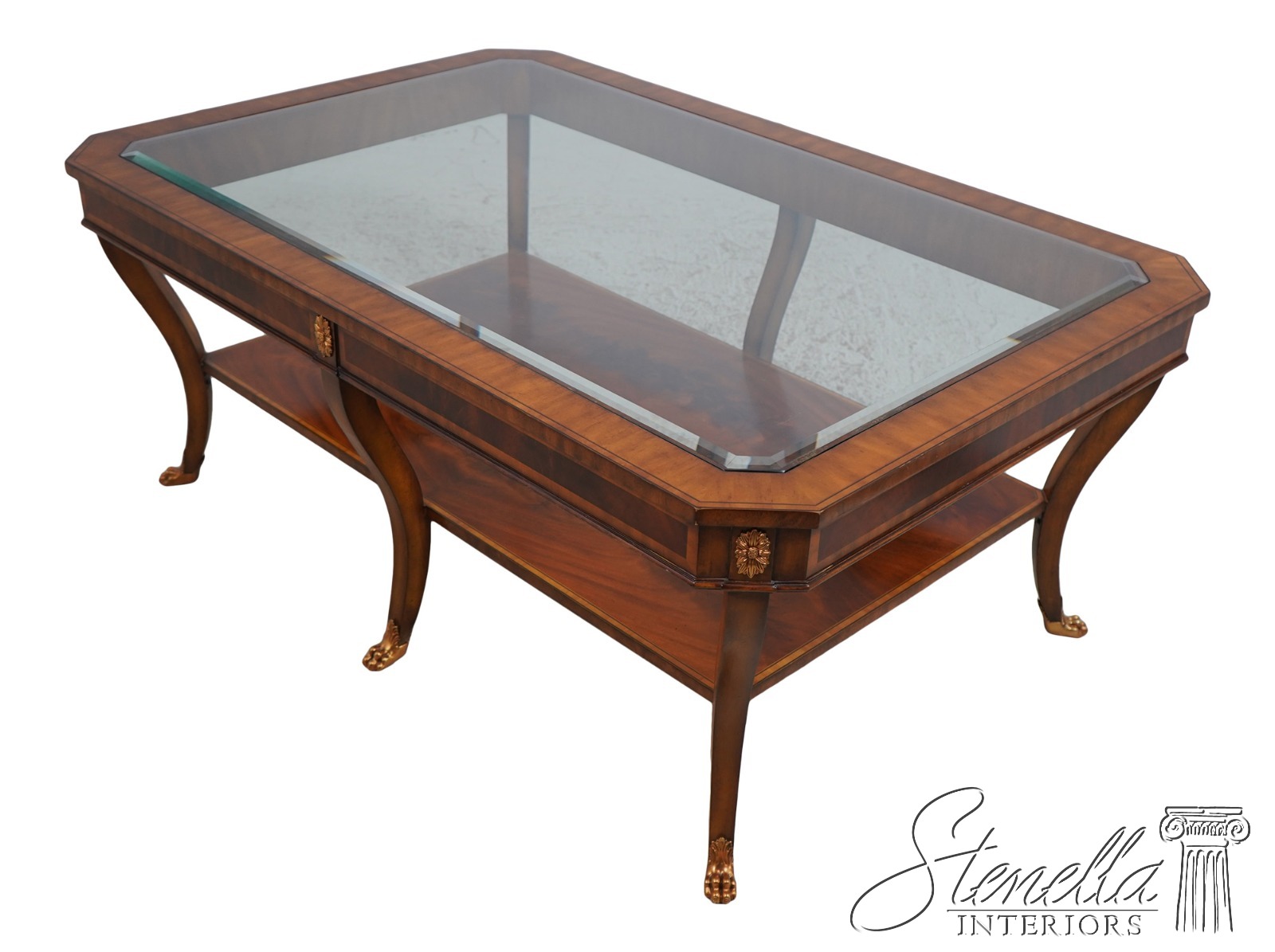 67216: MAITLAND SMITH Empire Style Glass Top Coffee Table