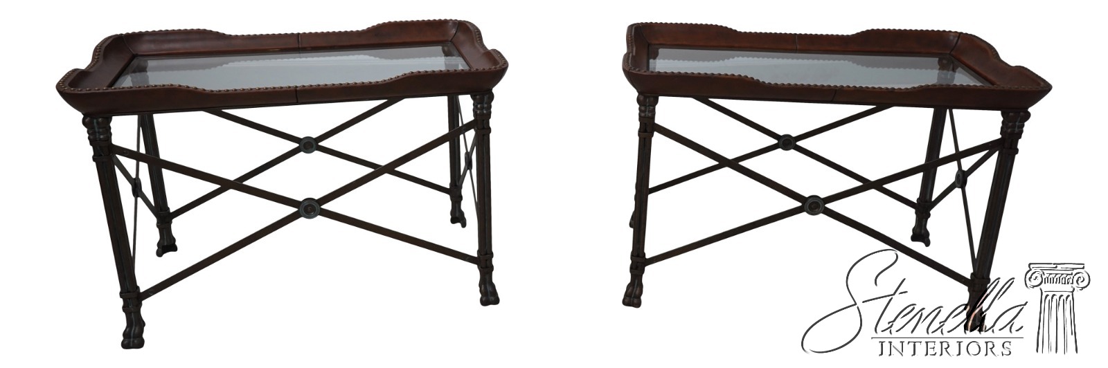 67607: Pair MAITLAND SMITH Glass Top Iron Base Lamp Tables