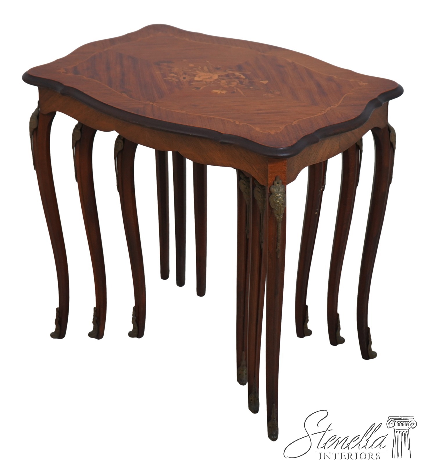 67619: Vintage French Louis XV Inlaid Top Stacking Nest Tables