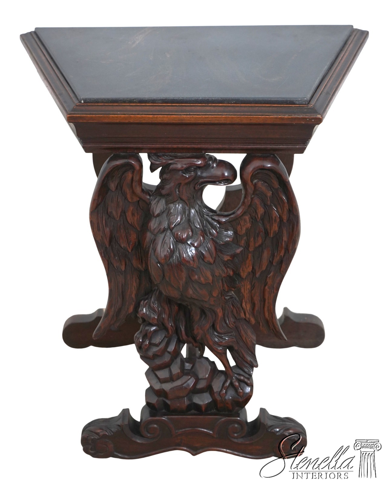 F67962: American Eagle Carved Walnut Marble Top Occasional Table