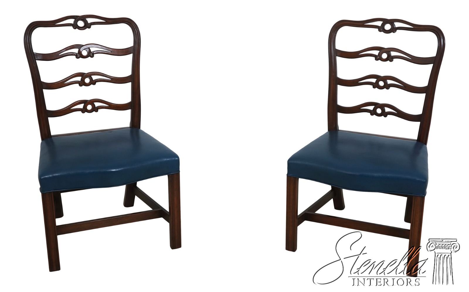 Made of mahogany, this chair features interlacing ribbons to support the back, molded front legs with chamfered inside corners, swept back rear legs and a serpentine curved front rail. Can be used as a dining chair or by itself as an accent piece.